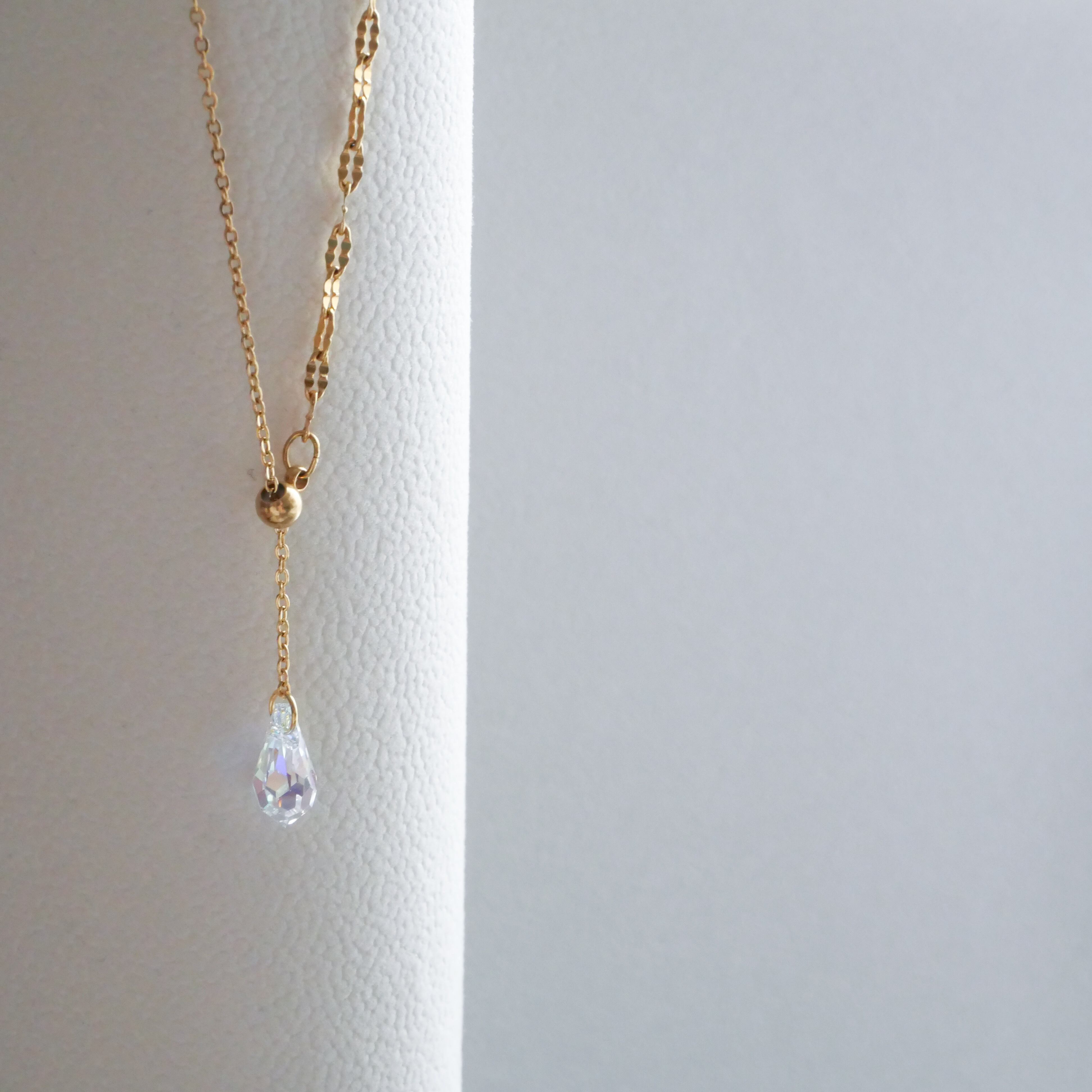 ※長さ調節の際は、しずくモチーフを持たずチェーンとスライドボール部分を持って調節してください。