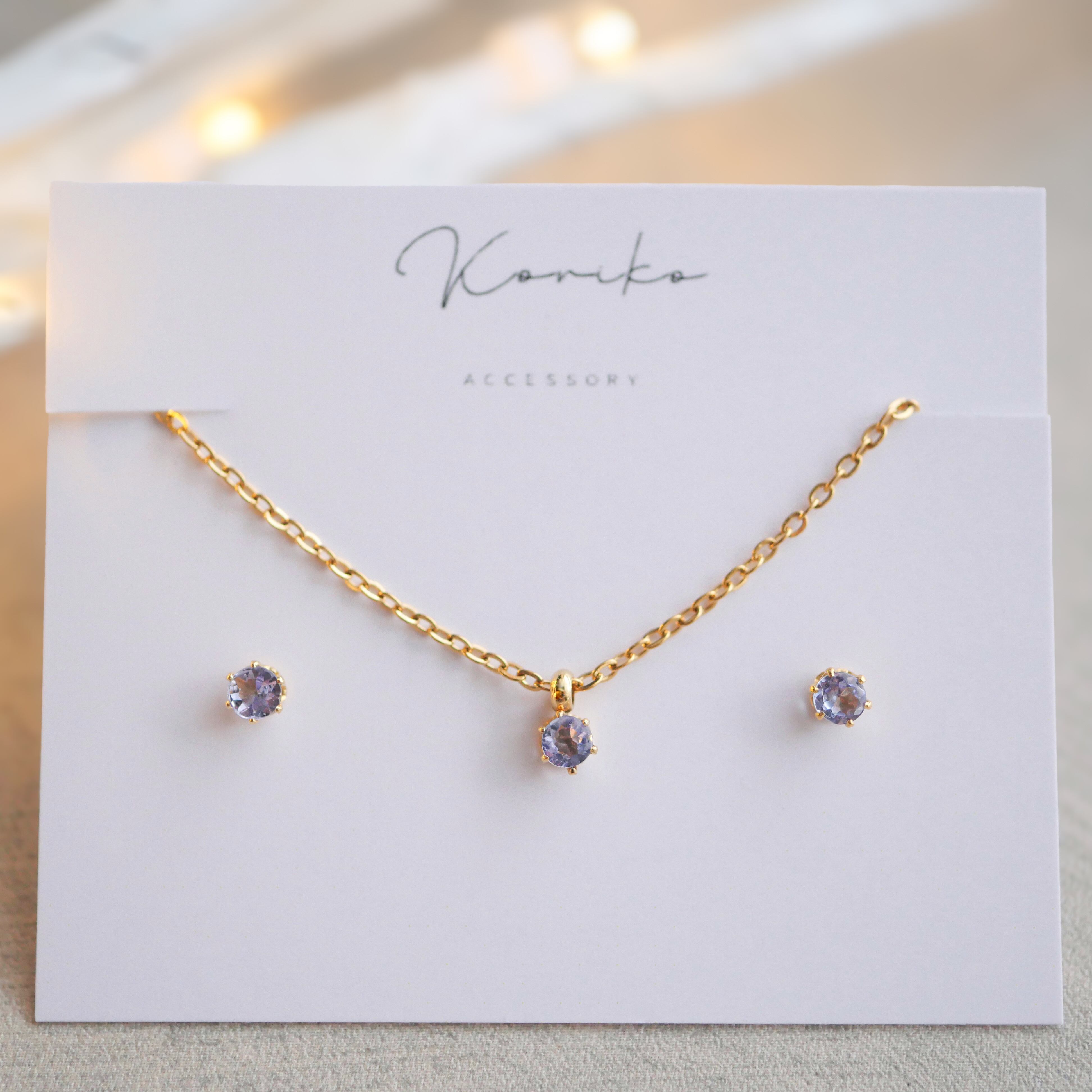 タンザナイトの一粒ピアスとネックレスの2点セット 12月誕生石 3mm サージカルステンレス 金属アレルギー対応 小さい 小粒 ゴールド シルバー