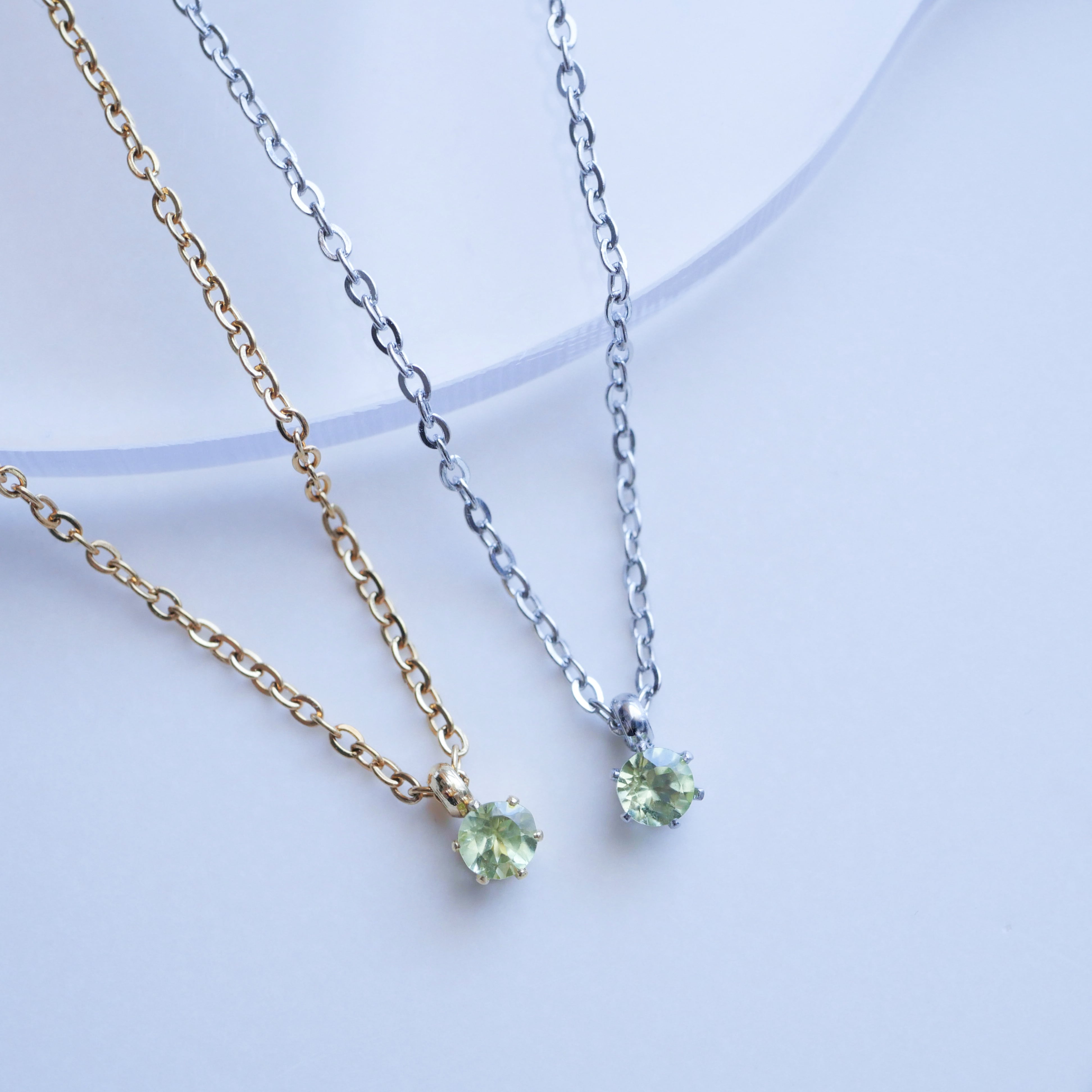 ペリドット一粒ネックレス 3mm 8月誕生石 小ぶり サージカルステンレス 金属アレルギー対応 ゴールド シルバー ピンクゴールド 天然石 ギフト 誕生日プレゼント