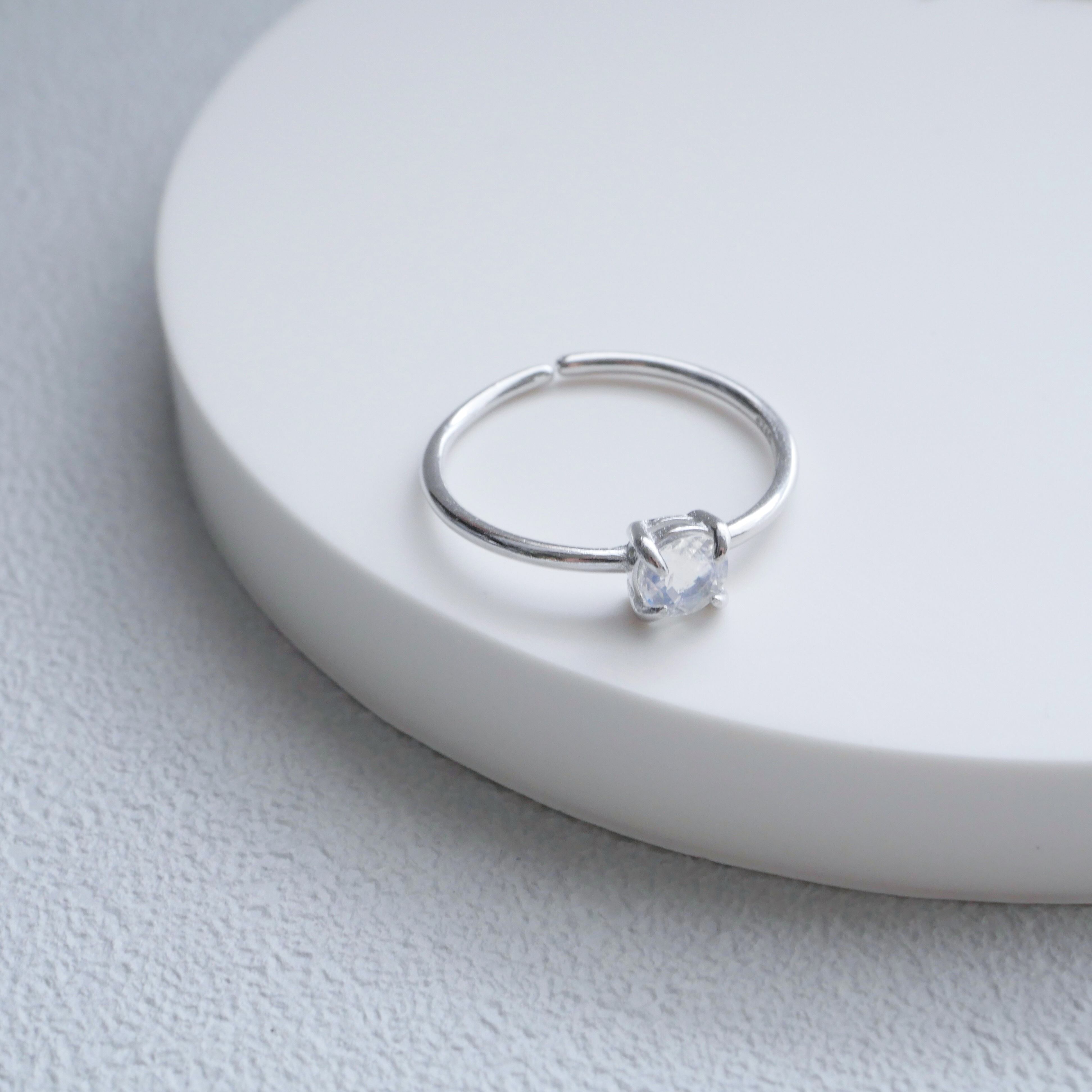 レインボームーンストーンの一粒リング 6月誕生石 指輪 シルバー925 18KGP フリーサイズ 金属アレルギー対応 シンプル 小ぶり 天然石 金アレ対応
