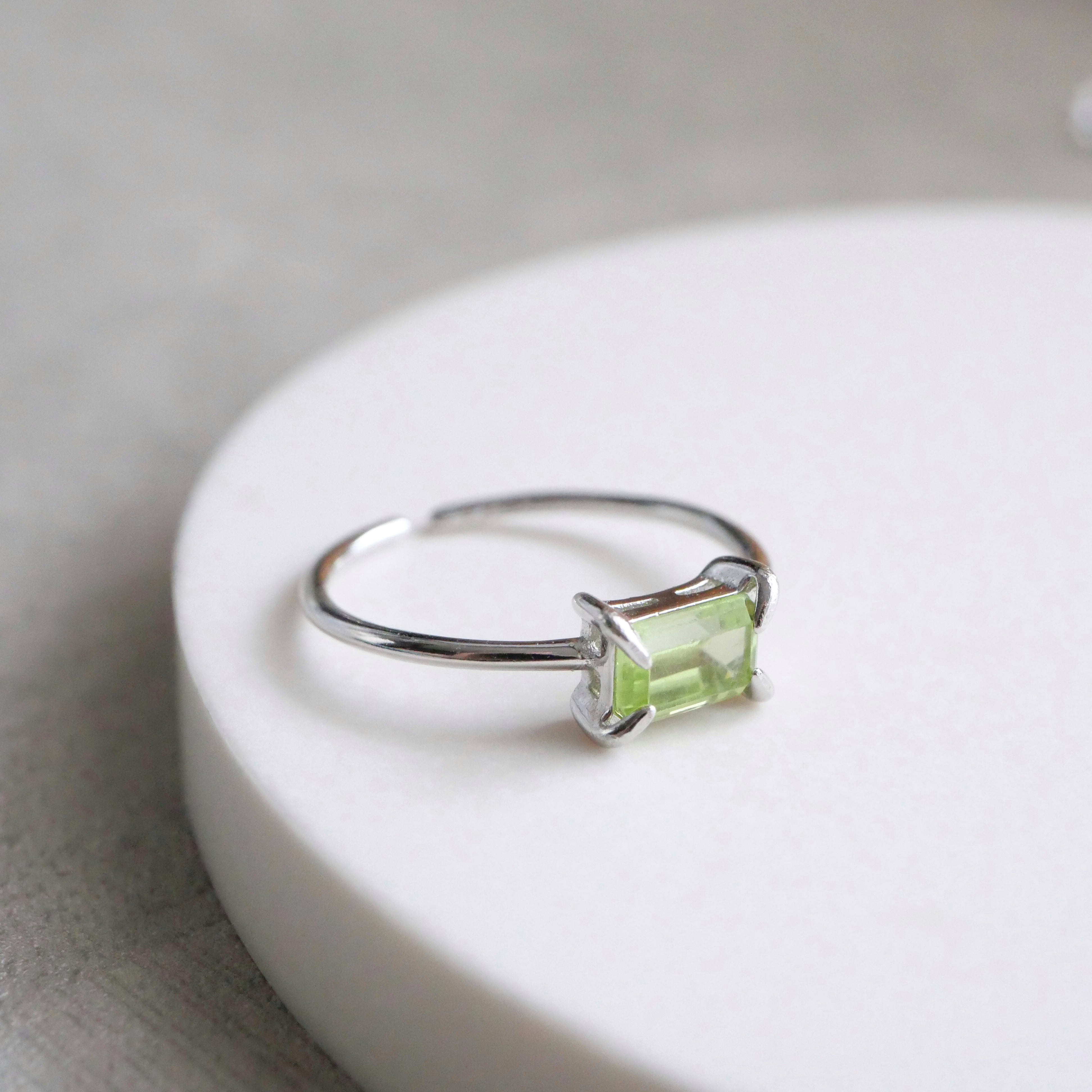 ペリドットの一粒リング レクタングル 長方形 8月誕生石 指輪 シルバー925 フリーサイズ 金属アレルギー対応 シンプル 小ぶり 天然石