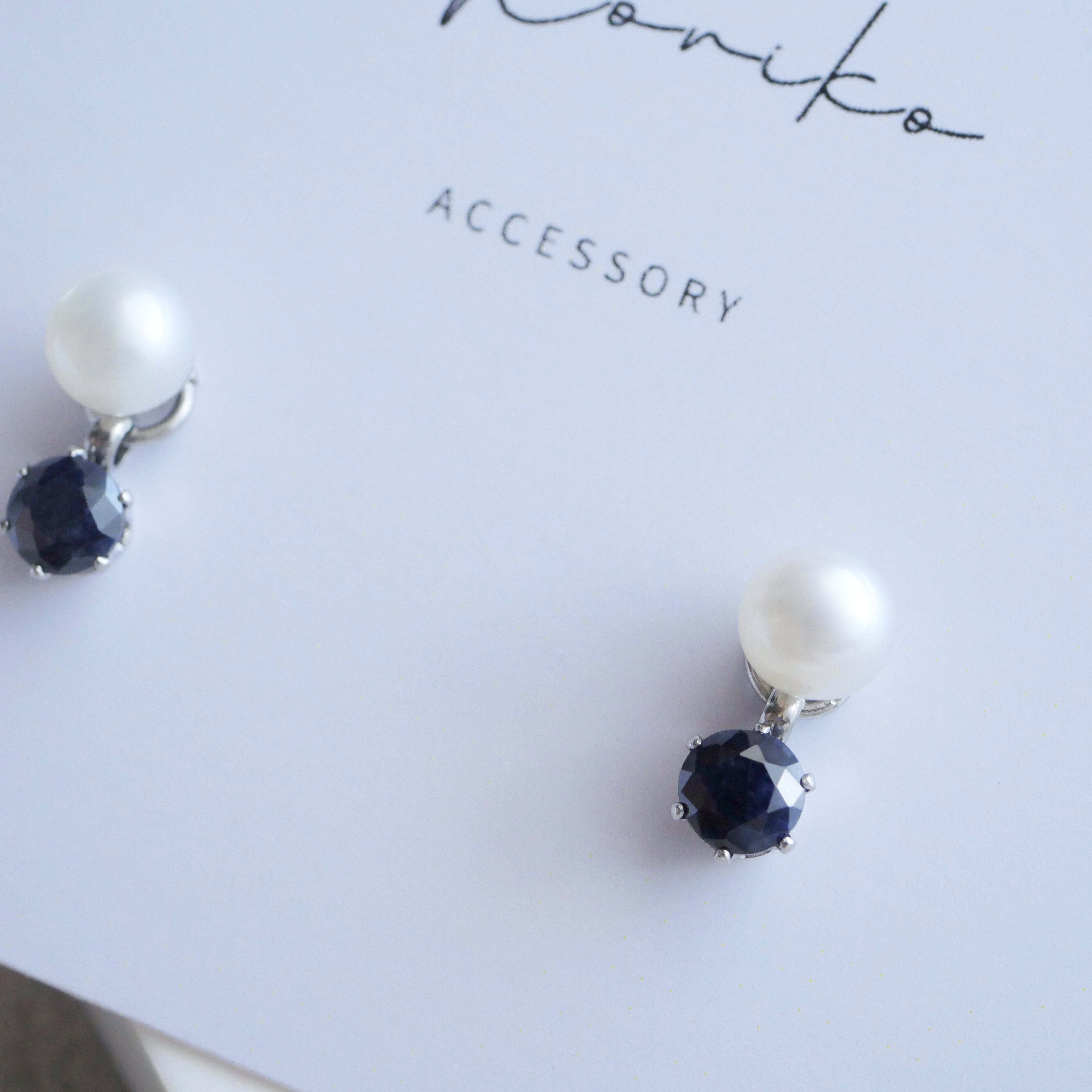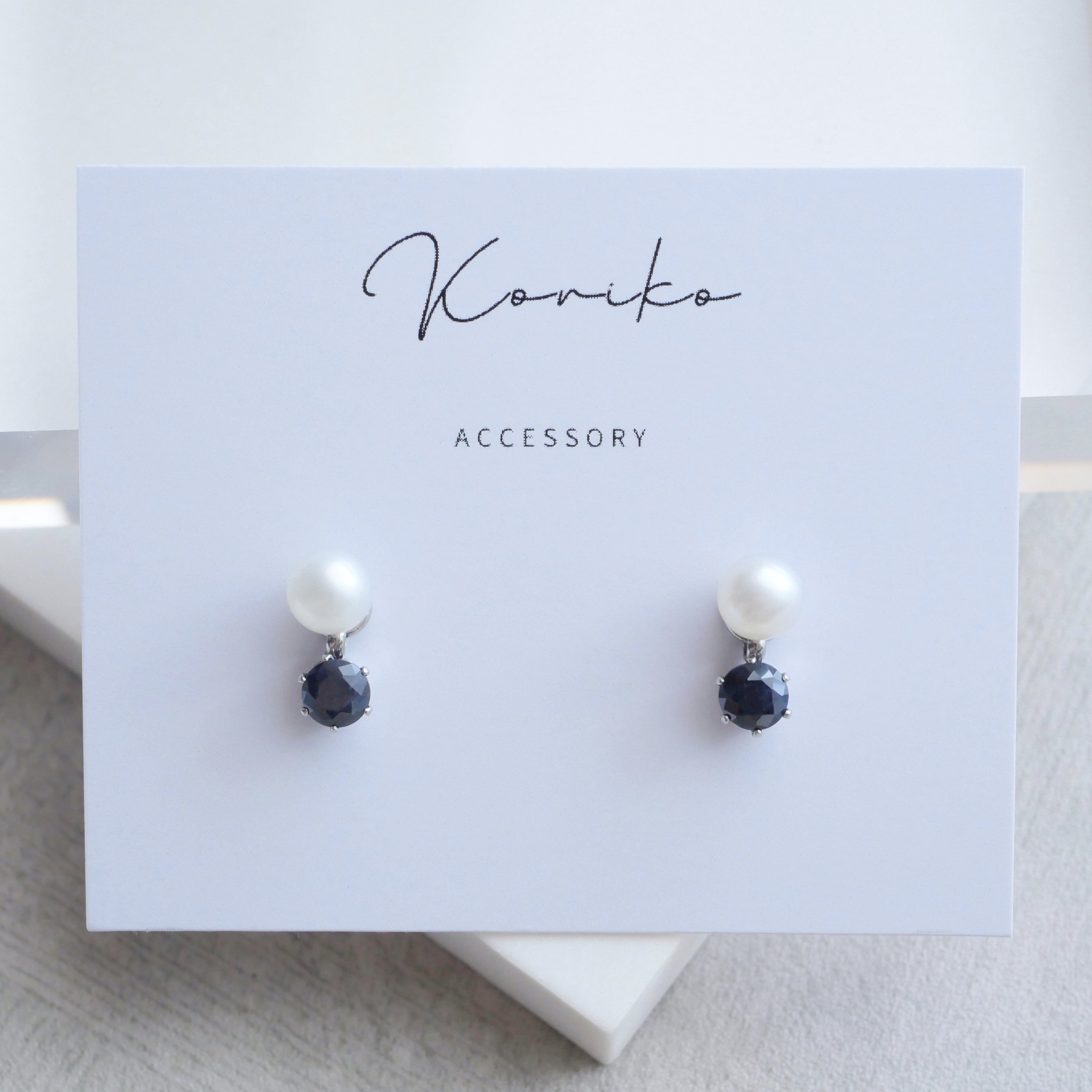 ーーー淡水パール×ブラックサファイアの2WAYピアスーーー