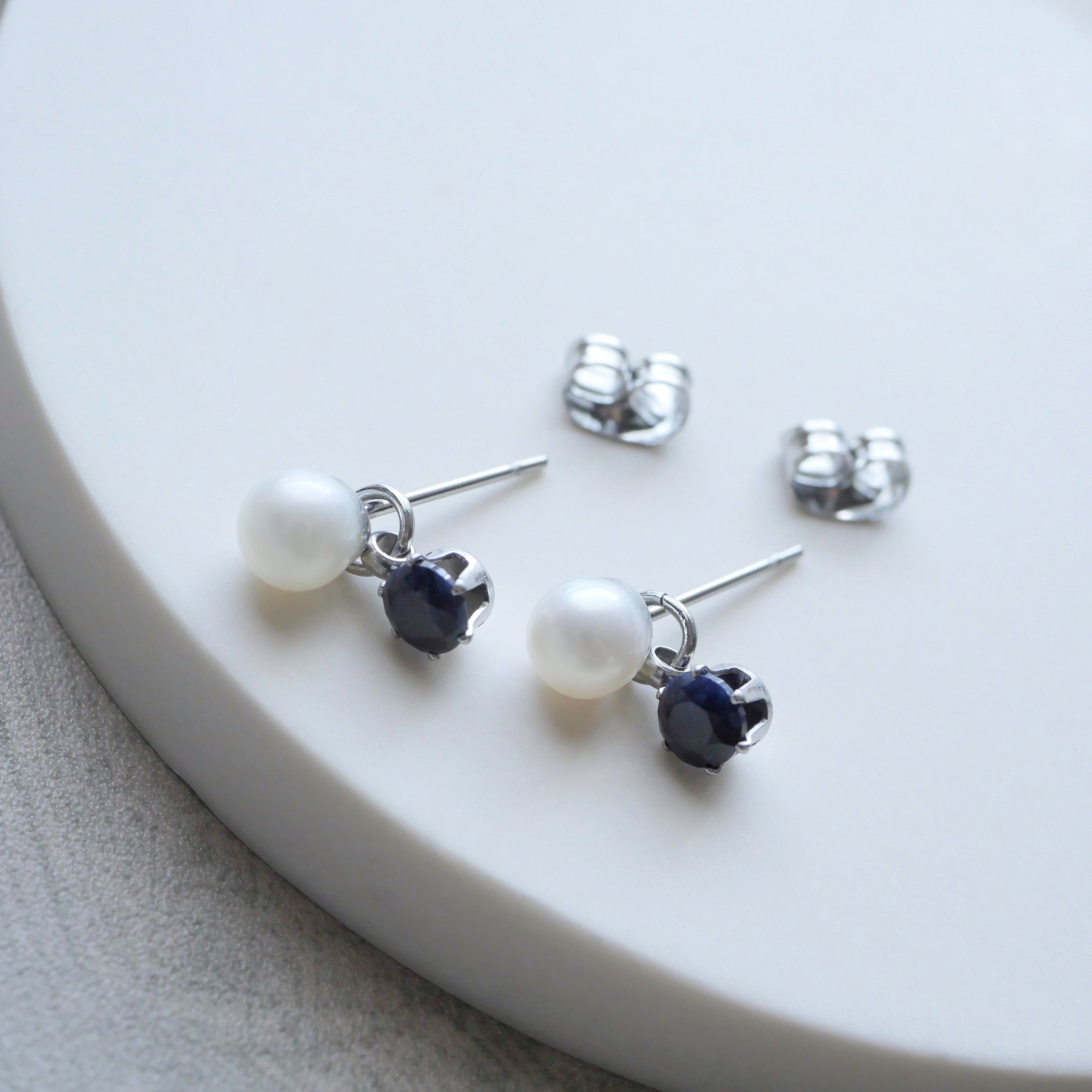 【2way】ブラックサファイア×淡水パールピアス ゴールド/シルバー サージカルステンレス 金属アレルギー対応 天然石 淡水真珠 金アレ対応 フォーマルにも