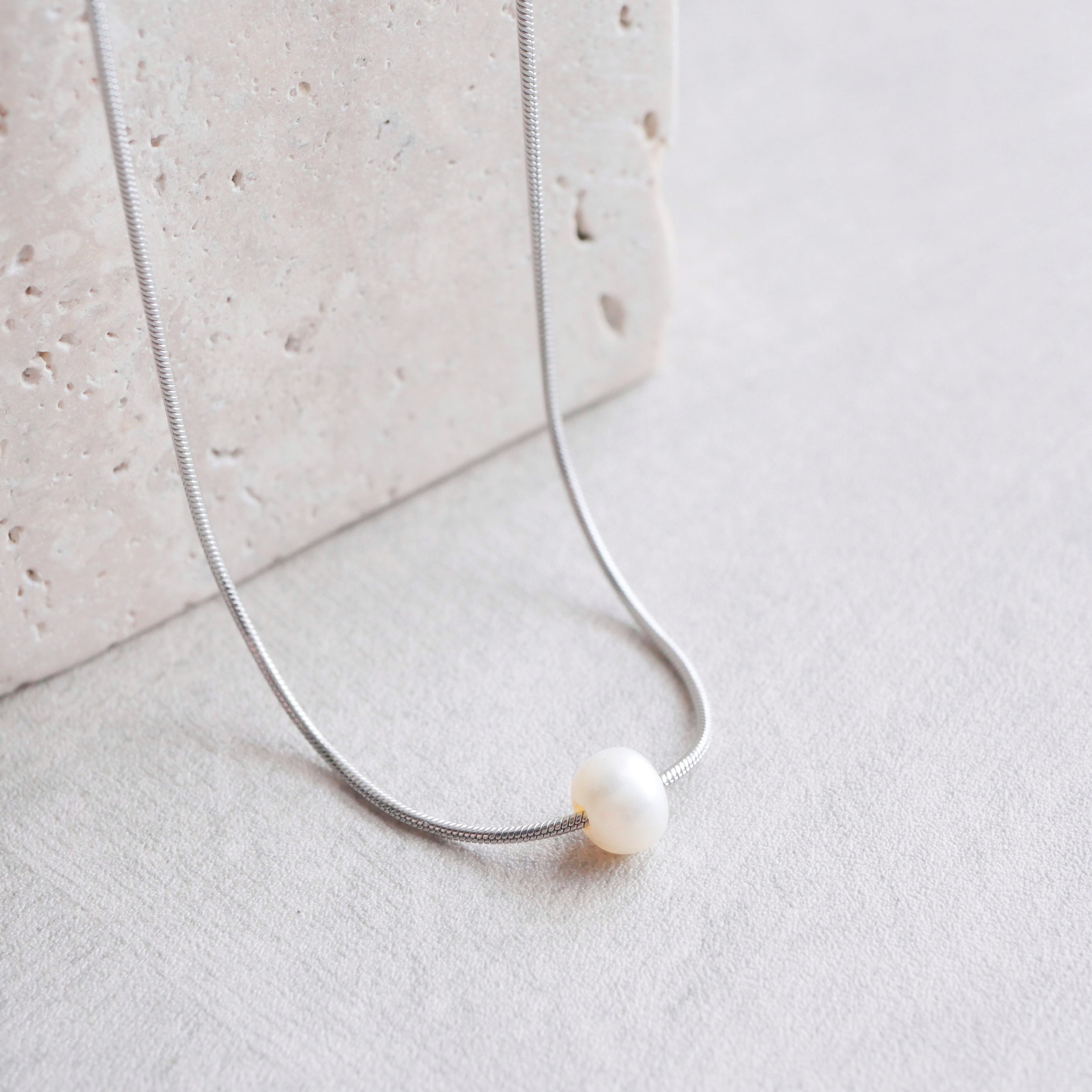 小ぶりの淡水パールを一粒あしらった、誕生石ネックレス。
