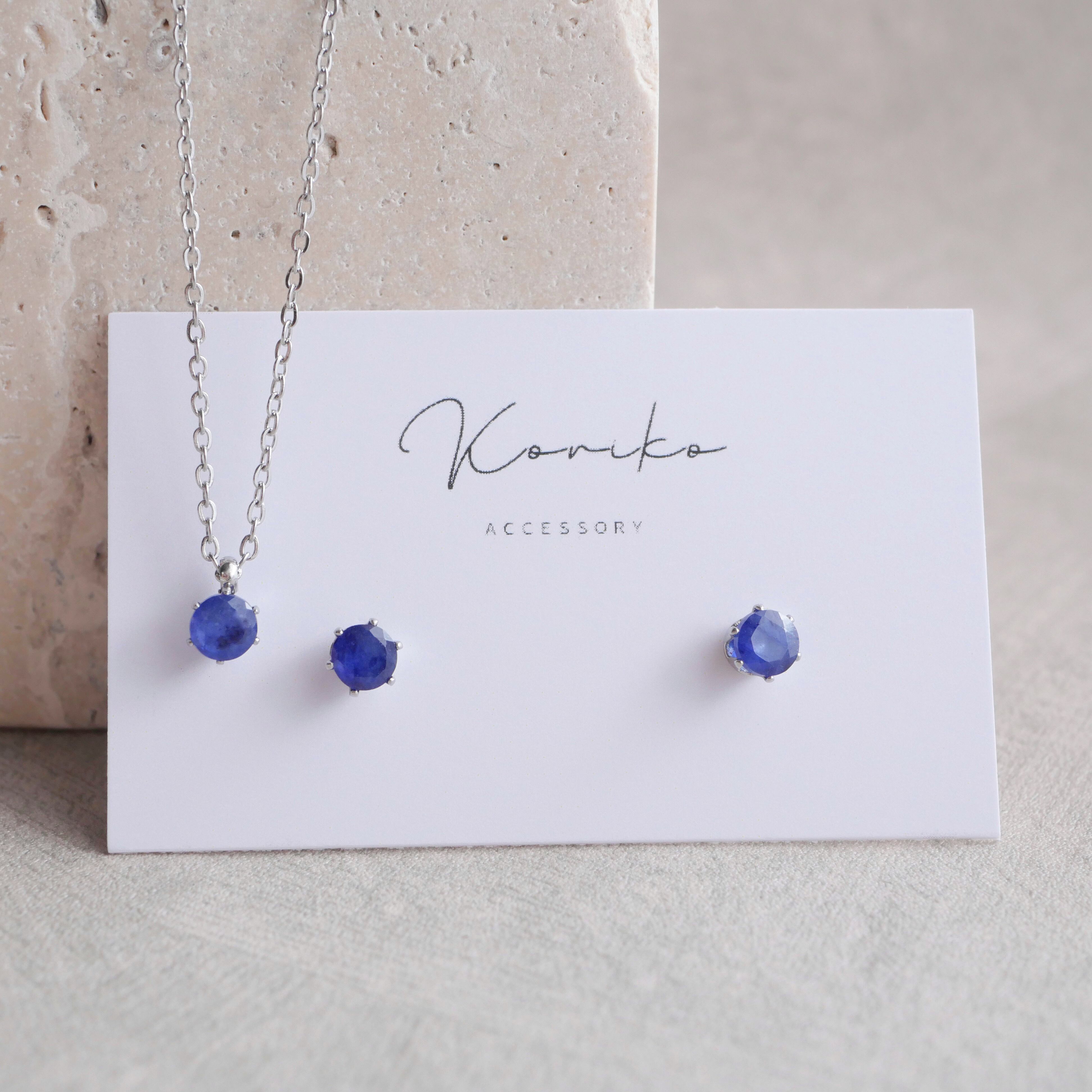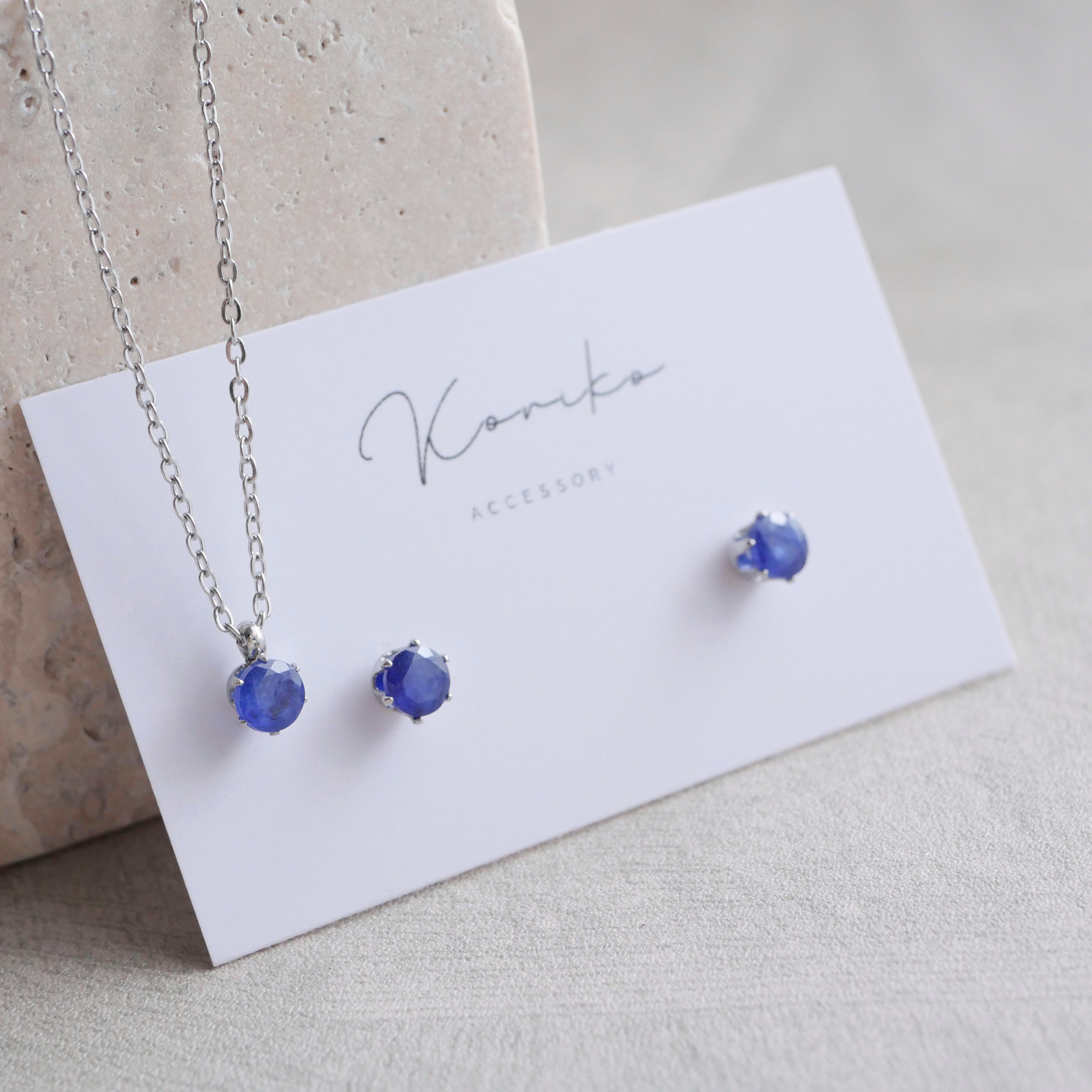 ブルーサファイアの一粒ピアスとネックレスの2点セット 9月誕生石 4mm 天然石 サージカルステンレス 金属アレルギー対応 小さい 小粒 ゴールド シルバー