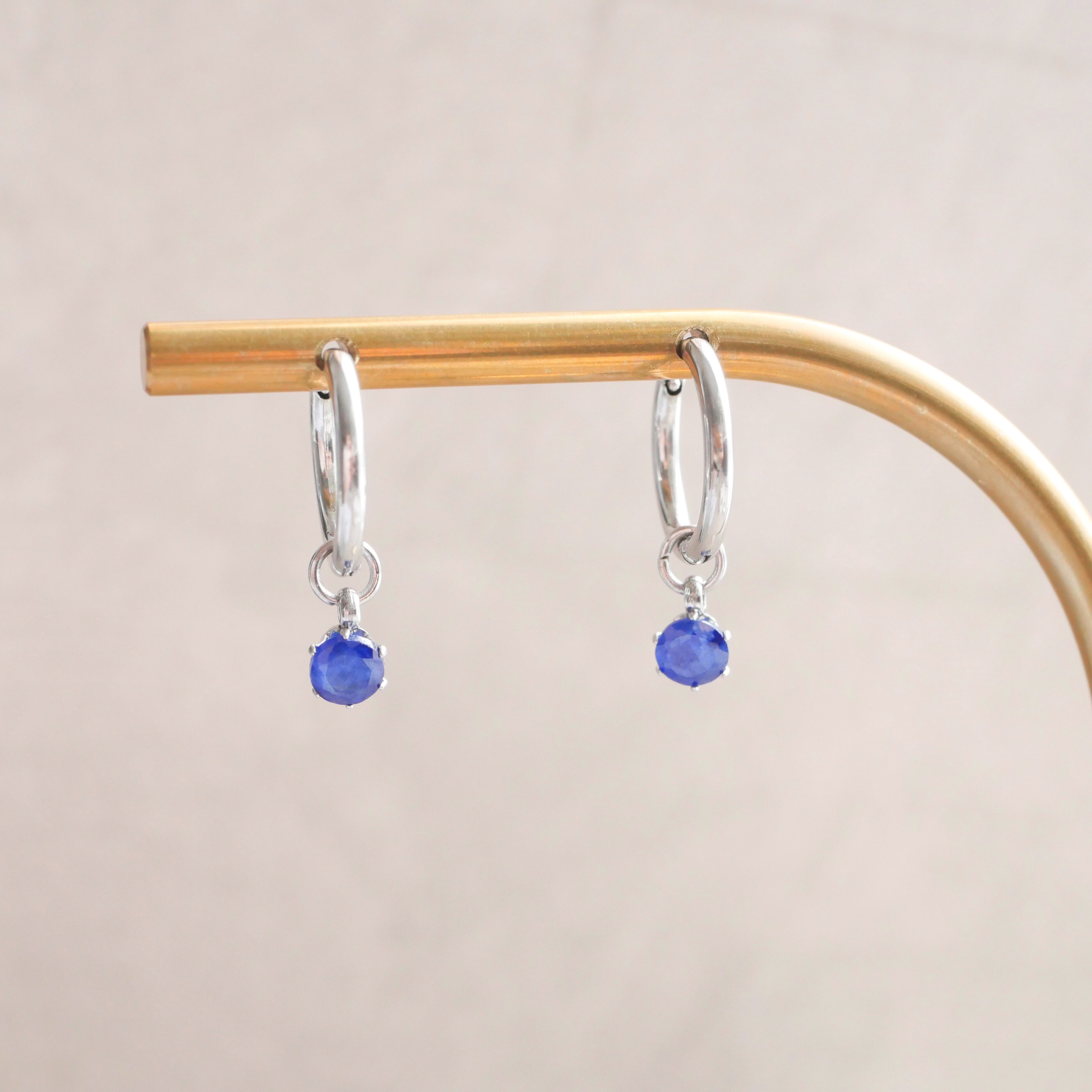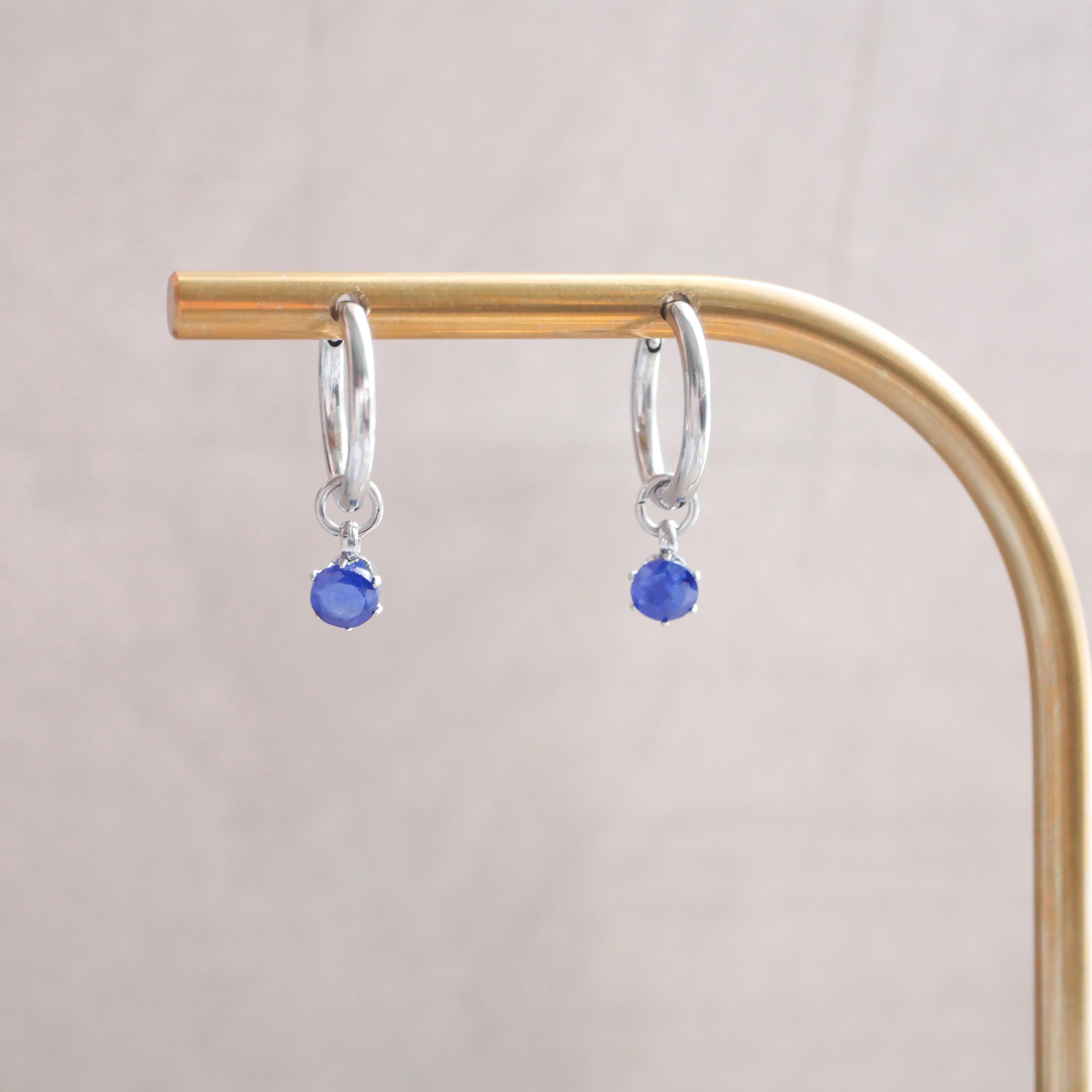 ブルーサファイアのフープピアス/イヤリング 9月誕生石 4mm 天然石 サージカルステンレス 金属アレルギー対応 小さい 小粒 ゴールド シルバー ピンクゴールド