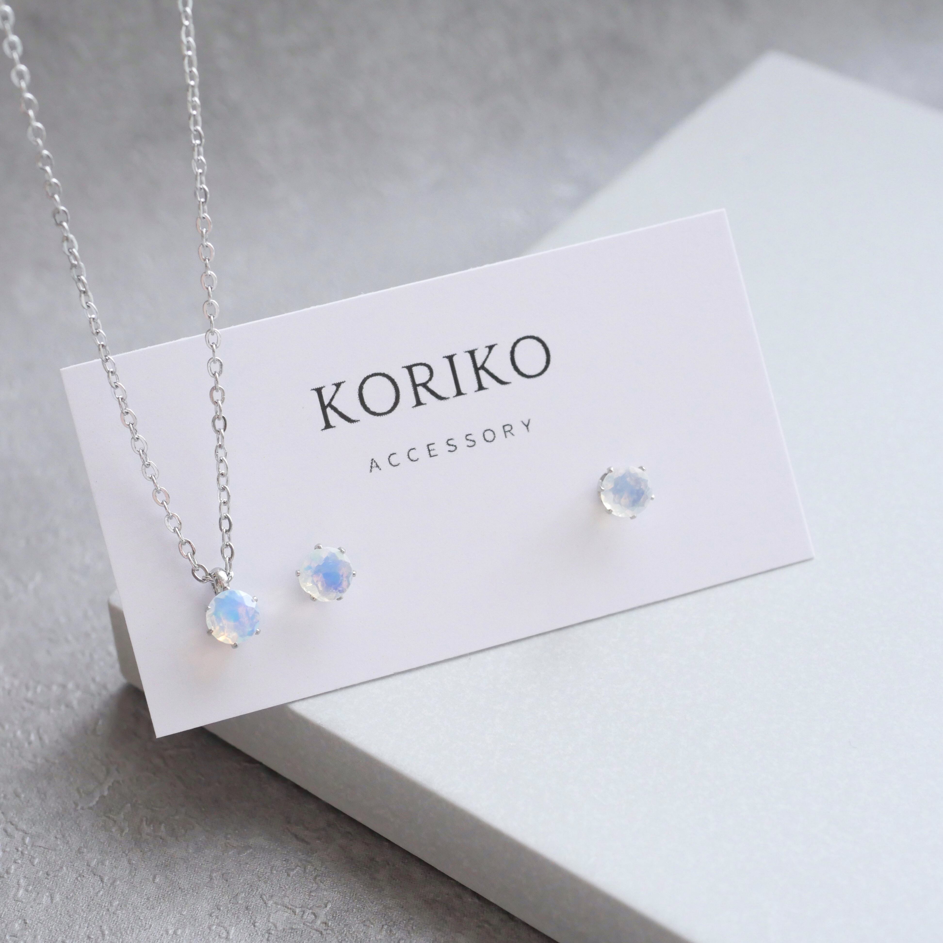 オパールの一粒ピアスとネックレスの2点セット 10月誕生石 天然石 サージカルステンレス 金属アレルギー対応 小さい 小粒 ゴールド シルバー 誕生日プレゼント