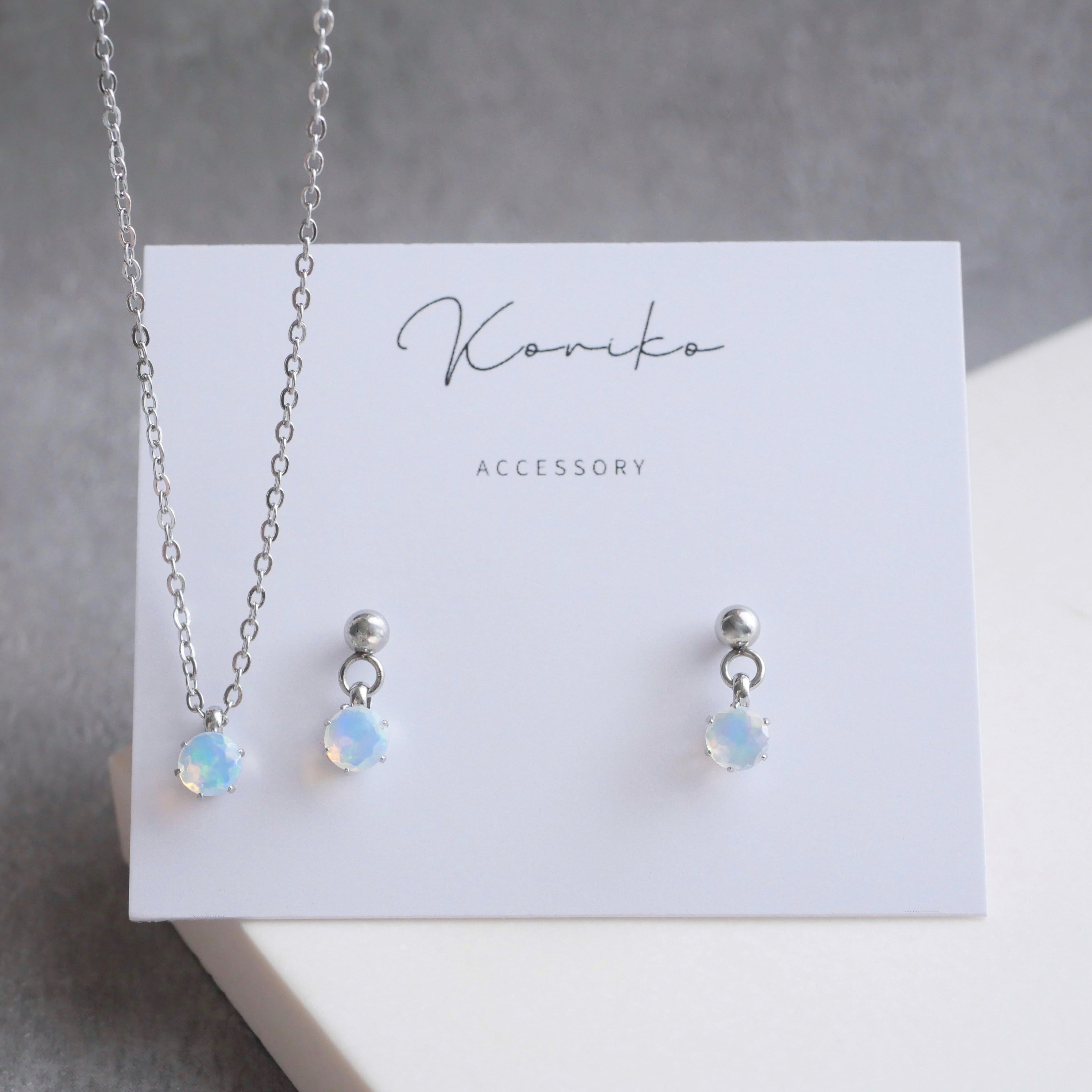 オパールの一粒揺れるピアスとネックレスの2点セット 10月誕生石 天然石 サージカルステンレス 金属アレルギー対応 小さい 小粒 ゴールド シルバー ピンクゴールド 誕生日プレゼント
