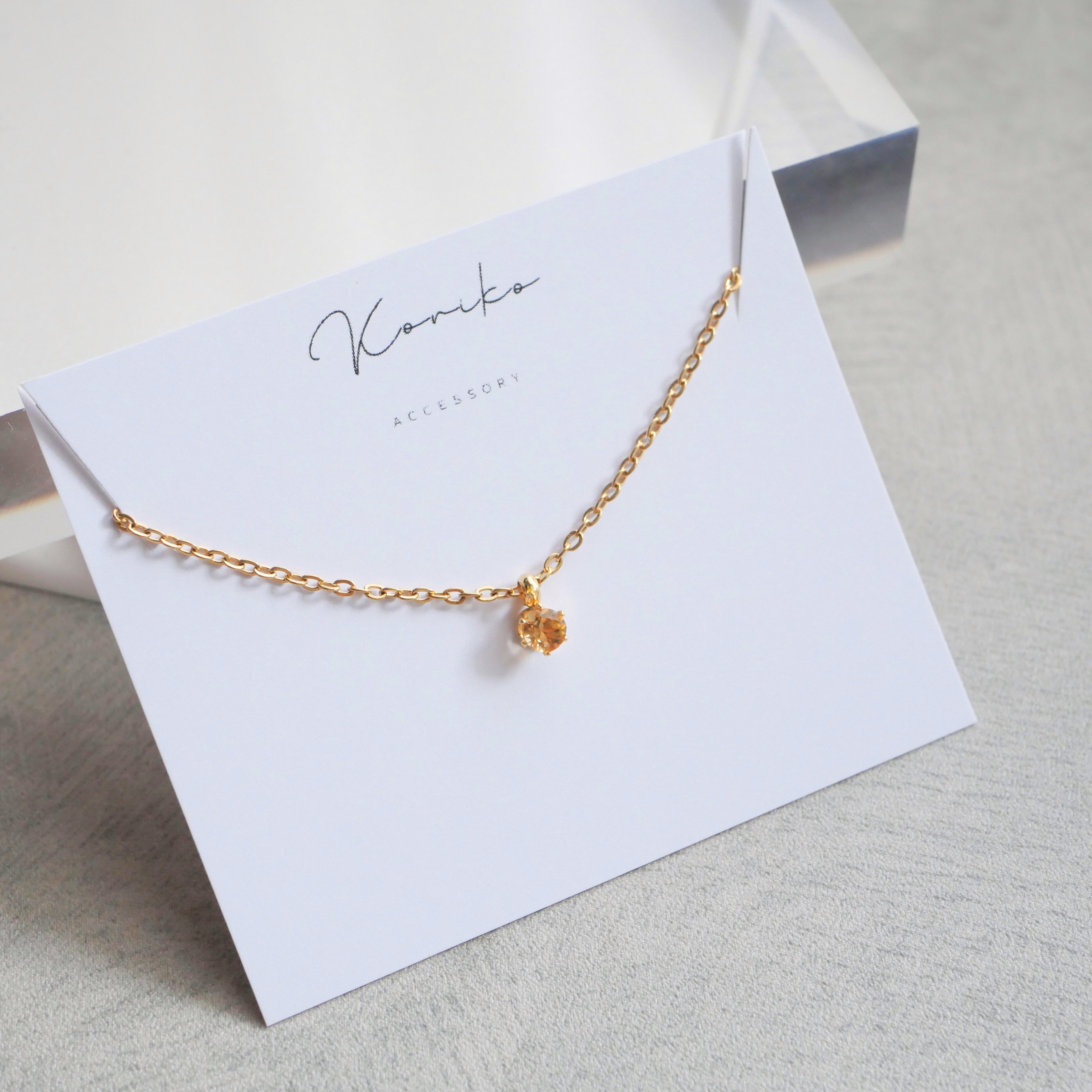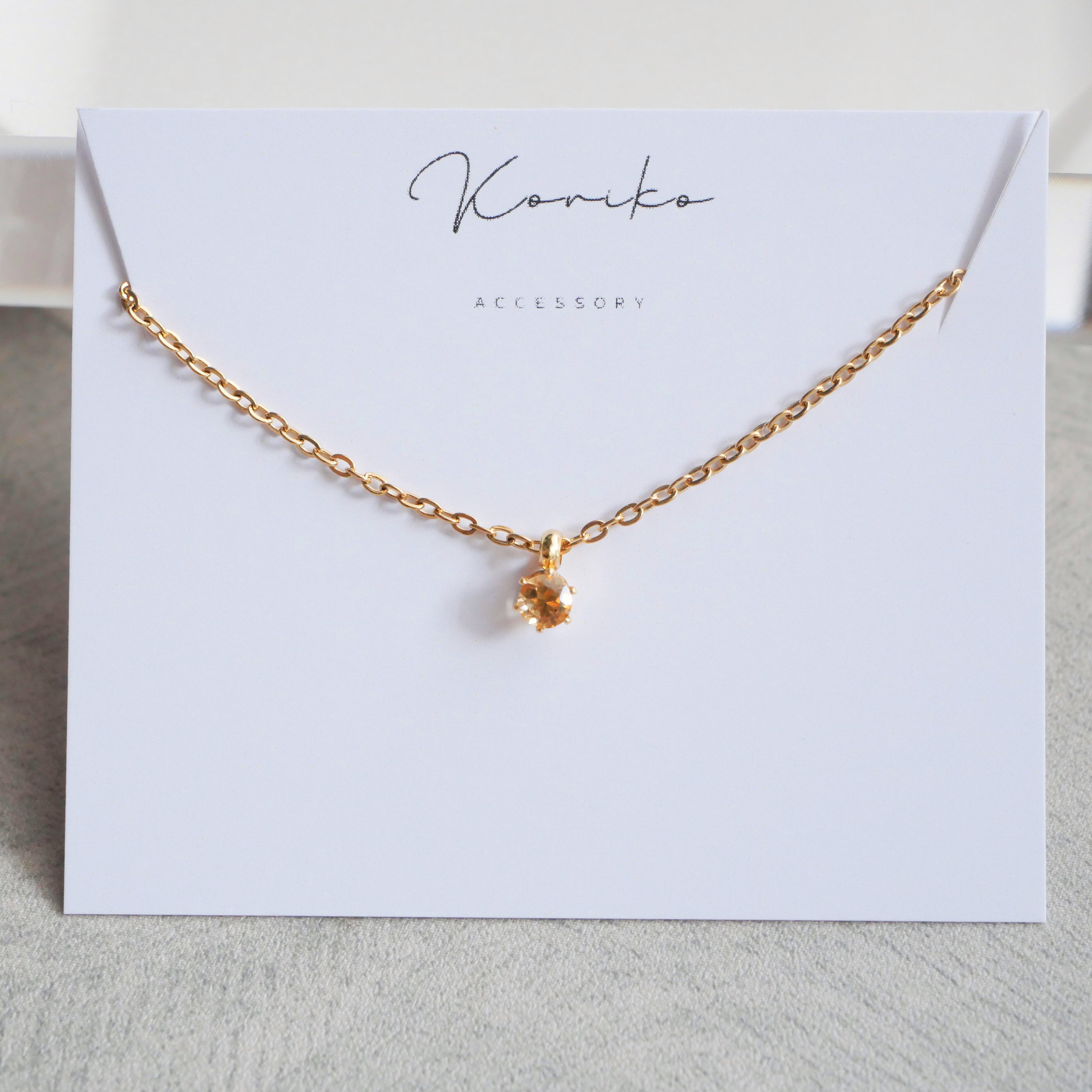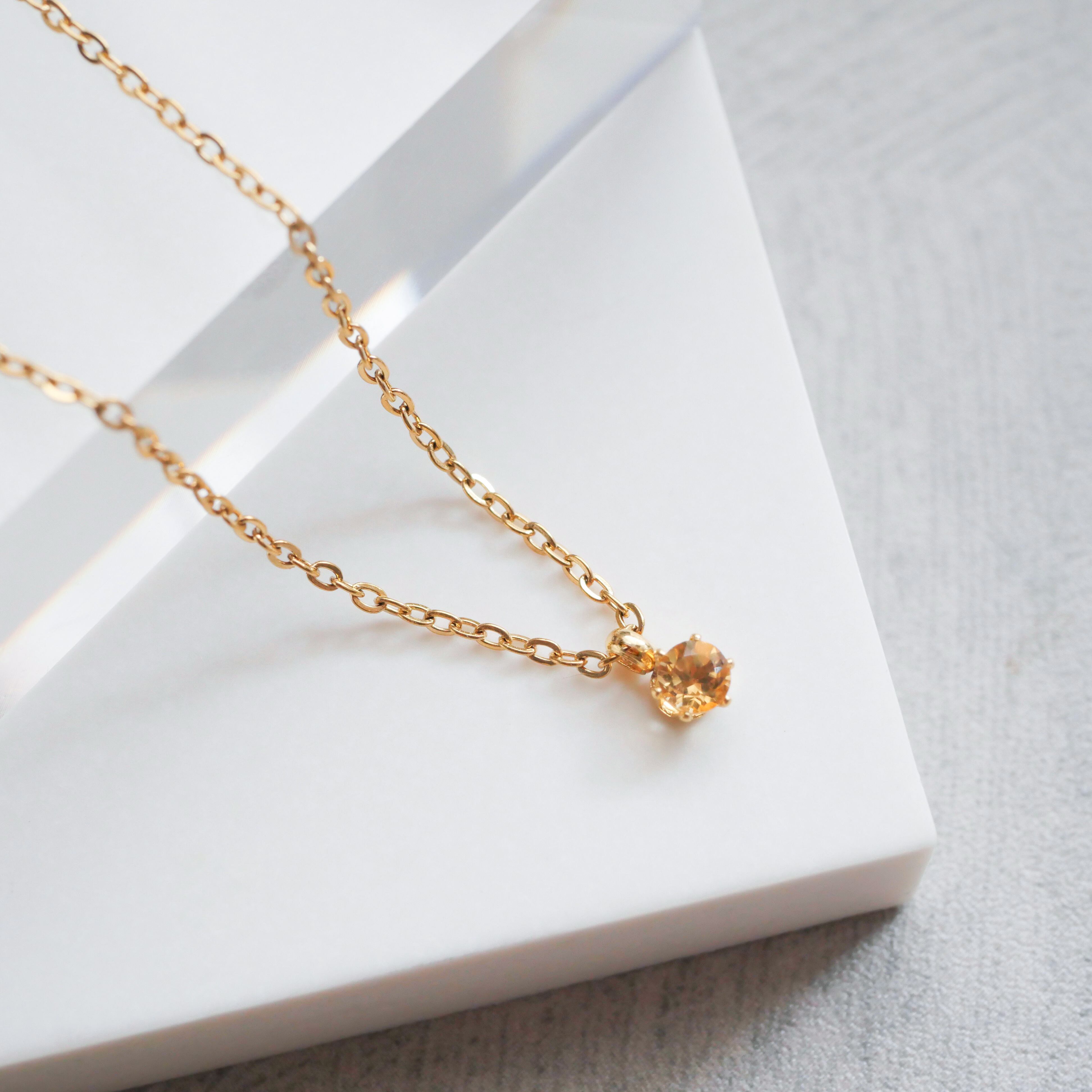 【ひと粒の光】シトリンの1粒ネックレス 11月誕生石 3mm サージカルステンレス 金属アレルギー対応 小ぶり ゴールド シルバー ピンクゴールド 天然石