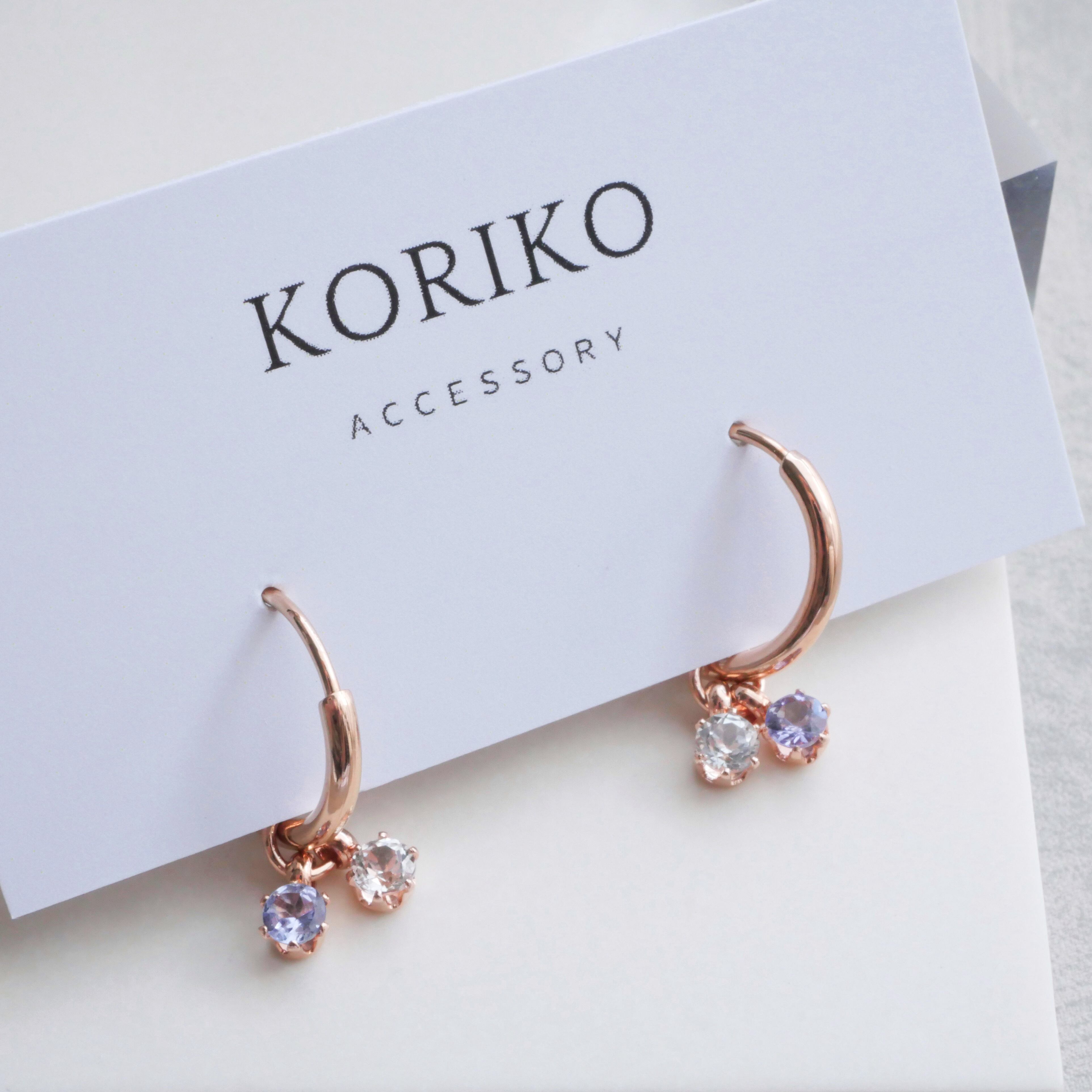 ◆『約3mmの誕生石を二粒使用したフープピアス/イヤリング』
