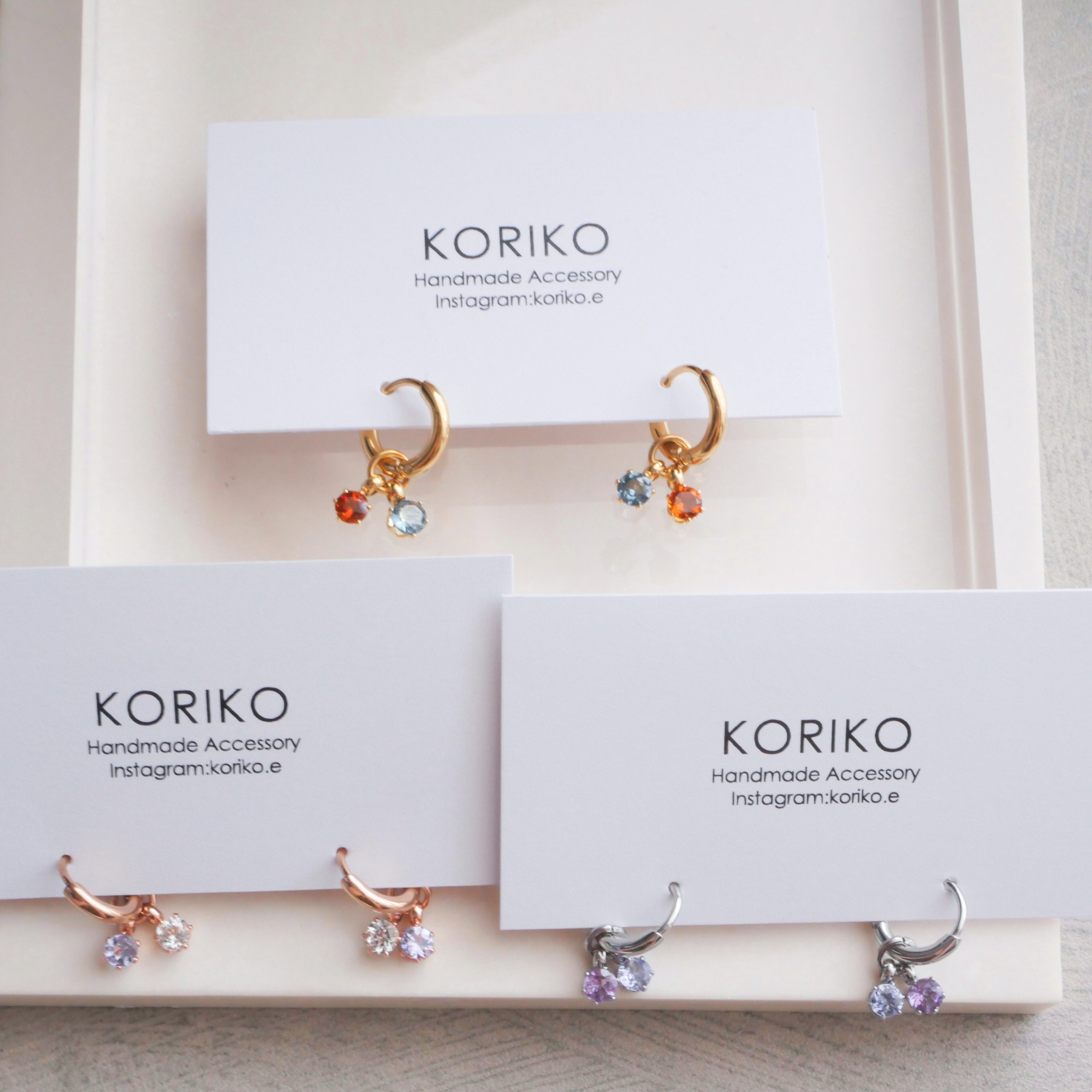 ◆『約3mmの誕生石を二粒使用したミニフープピアス』