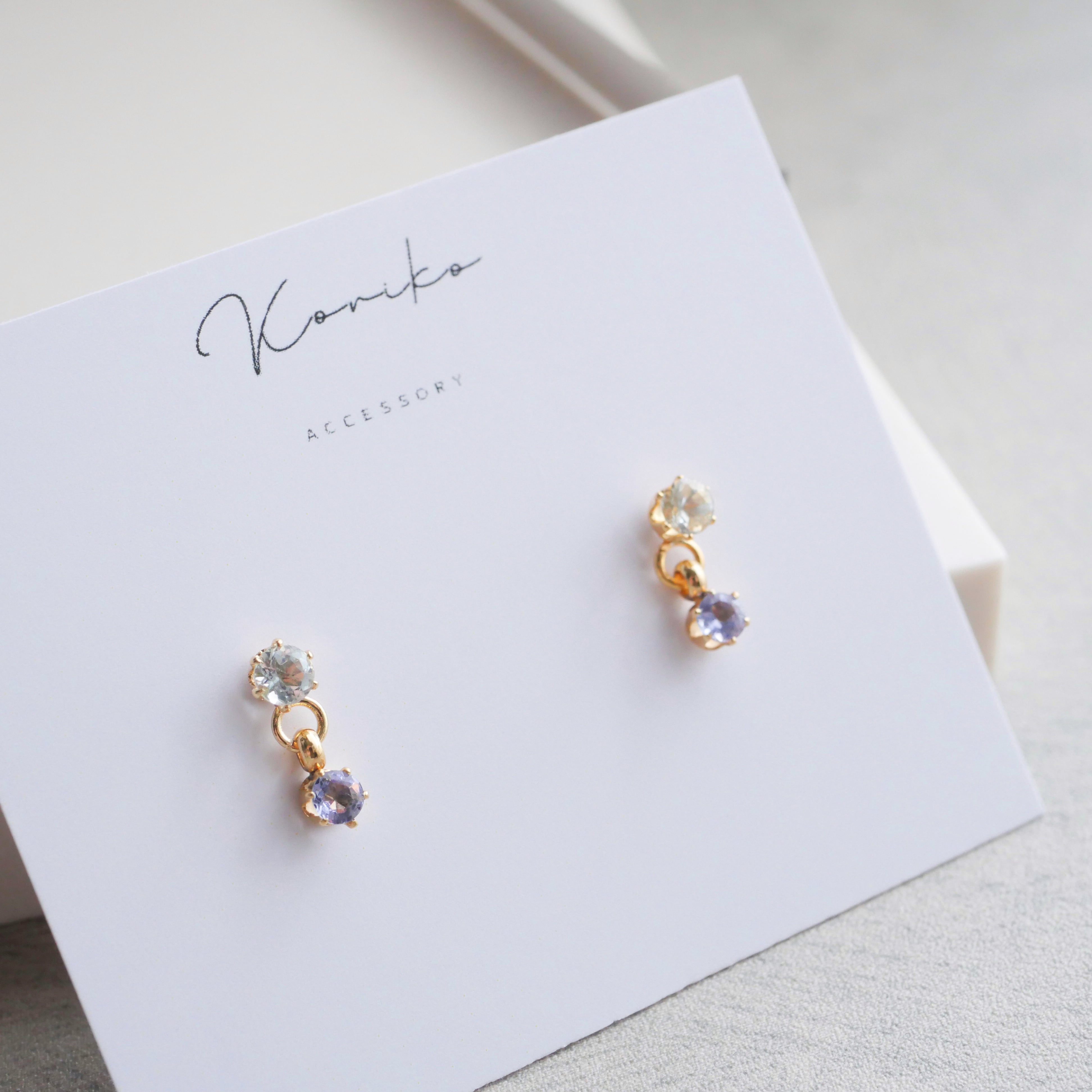 選べる二粒の誕生石で作る揺れる小粒ピアス 3mm ゴールド/シルバー サージカルステンレス 金属アレルギー対応 天然石 小さい 極小 ギフト プレゼント