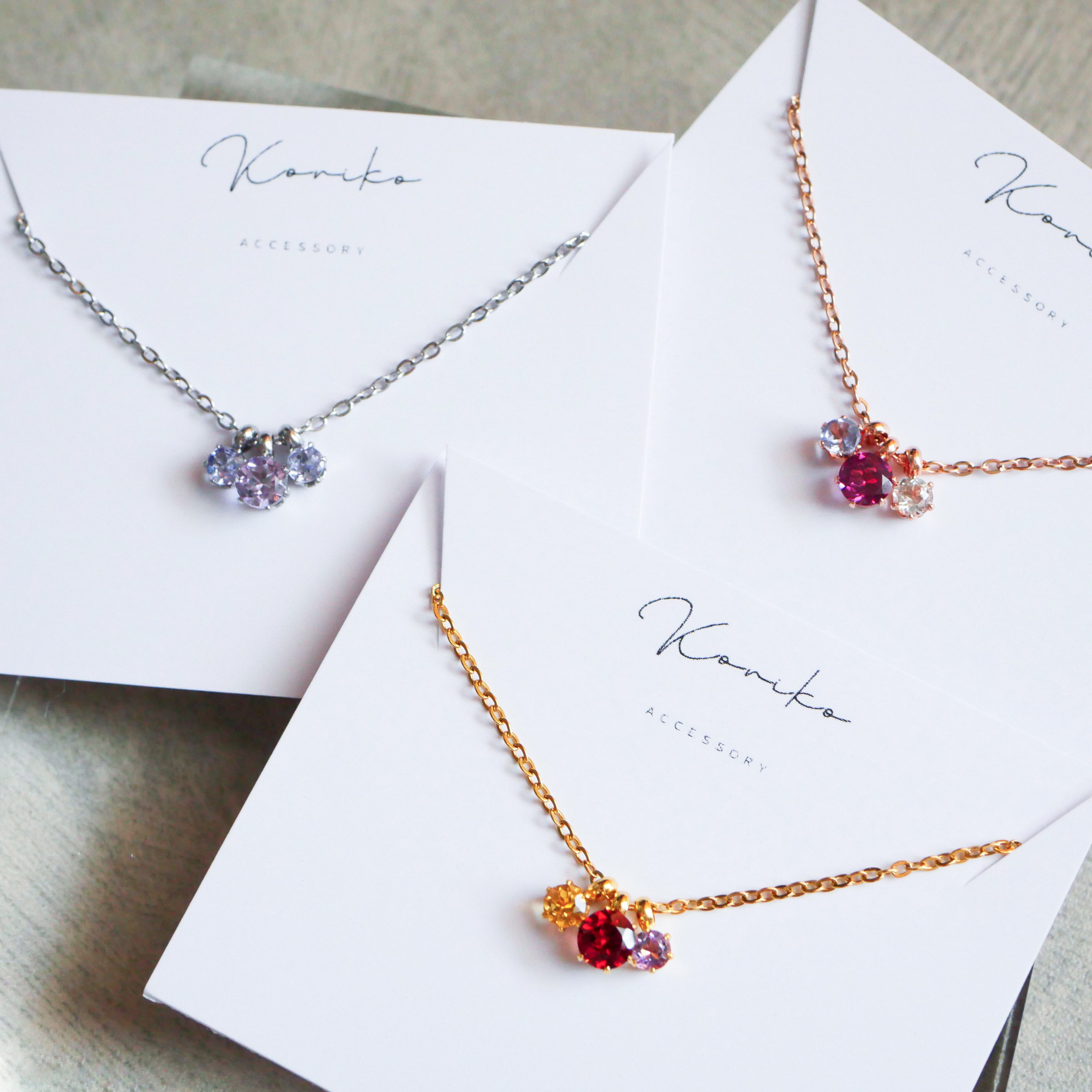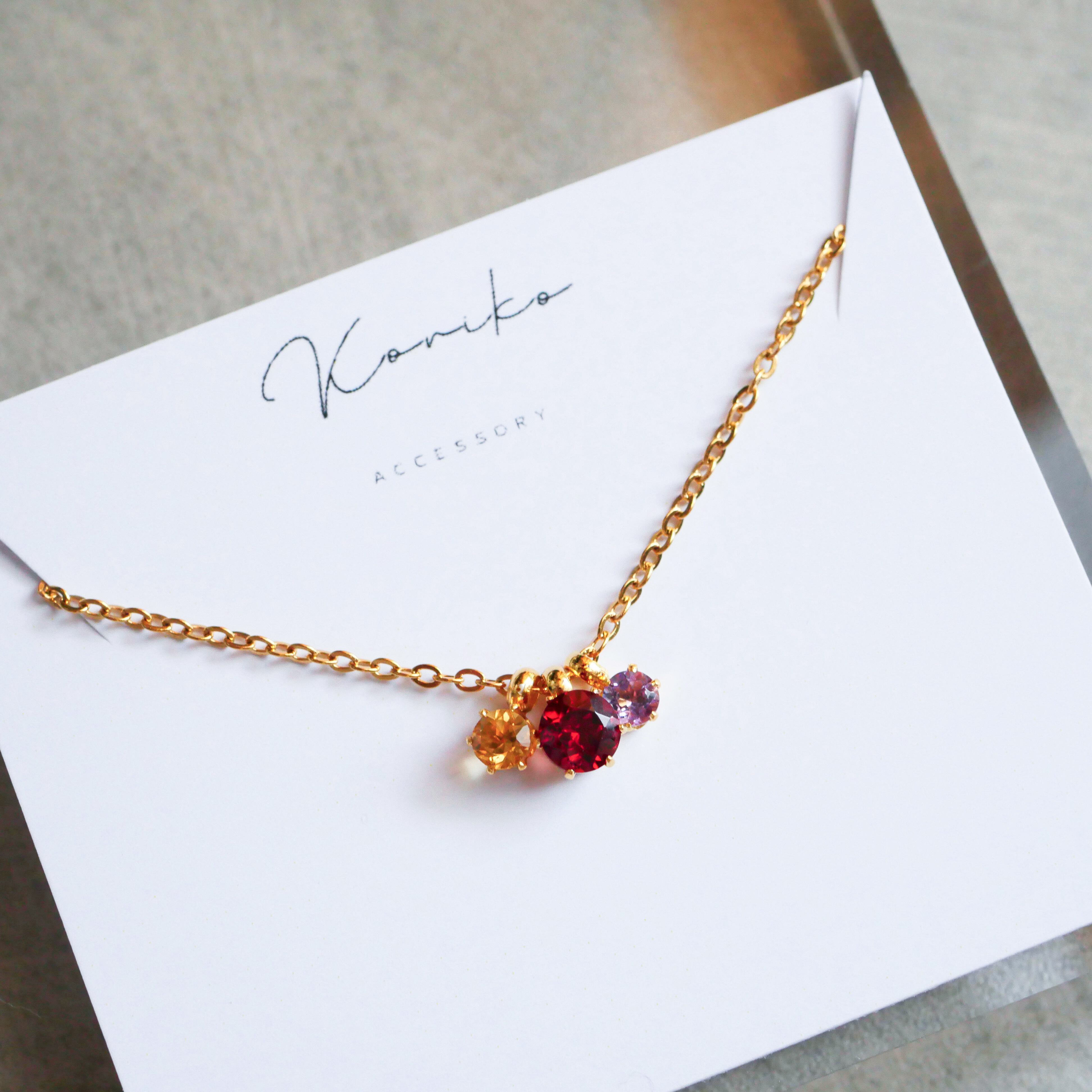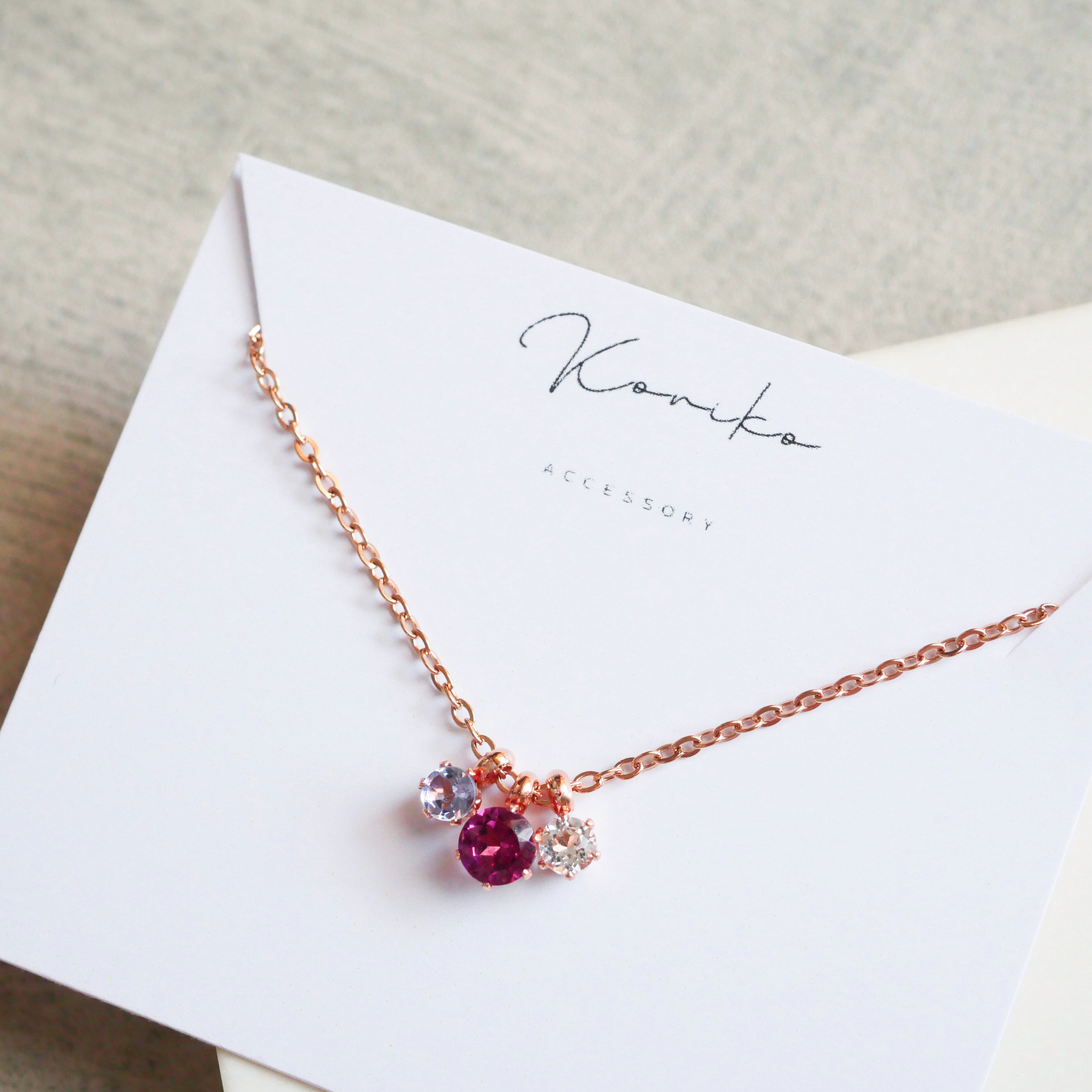 ◆“サイズ違いで魅せる”3粒誕生石ネックレス