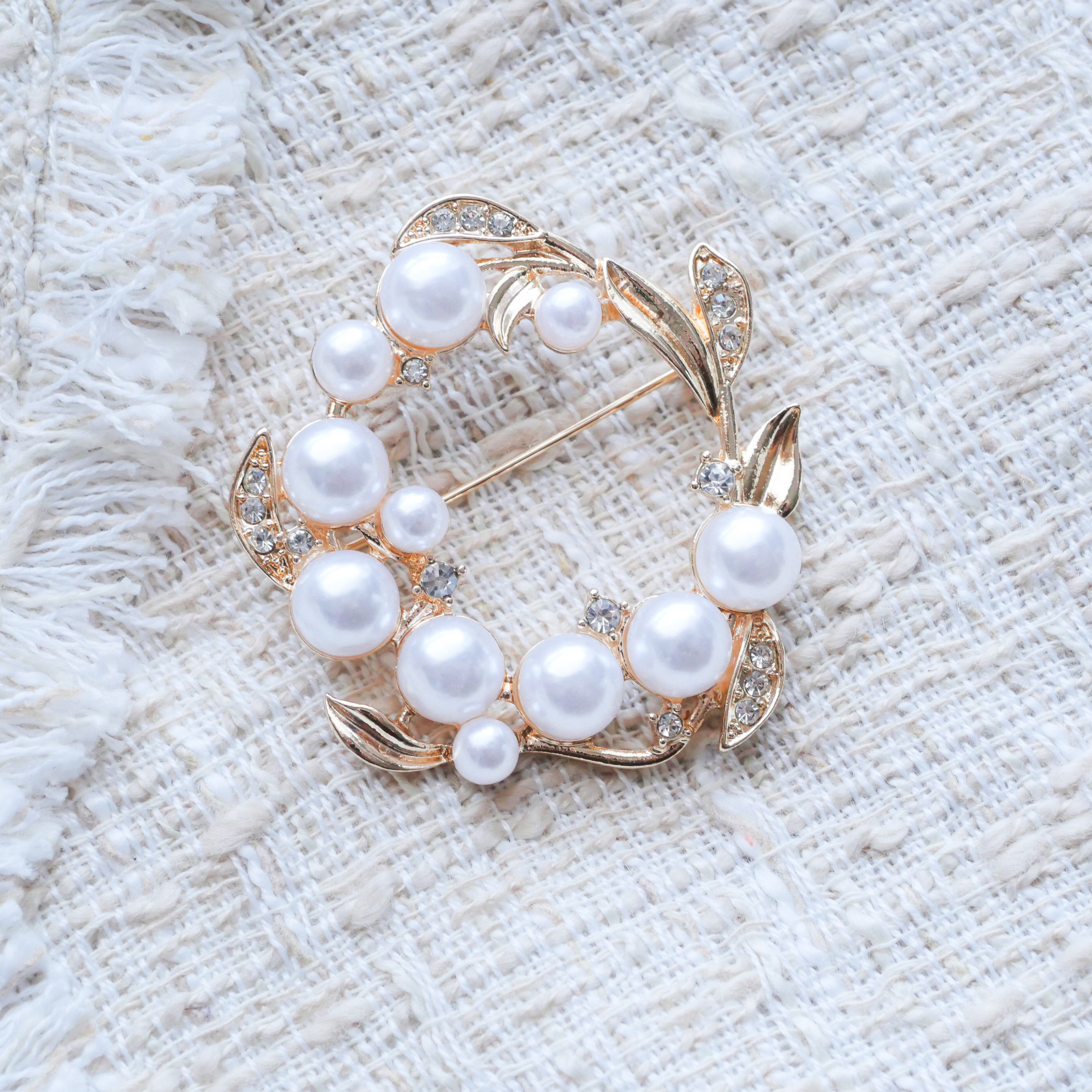 ◆ パール×ゴールド×ビジューの華やかブローチ
