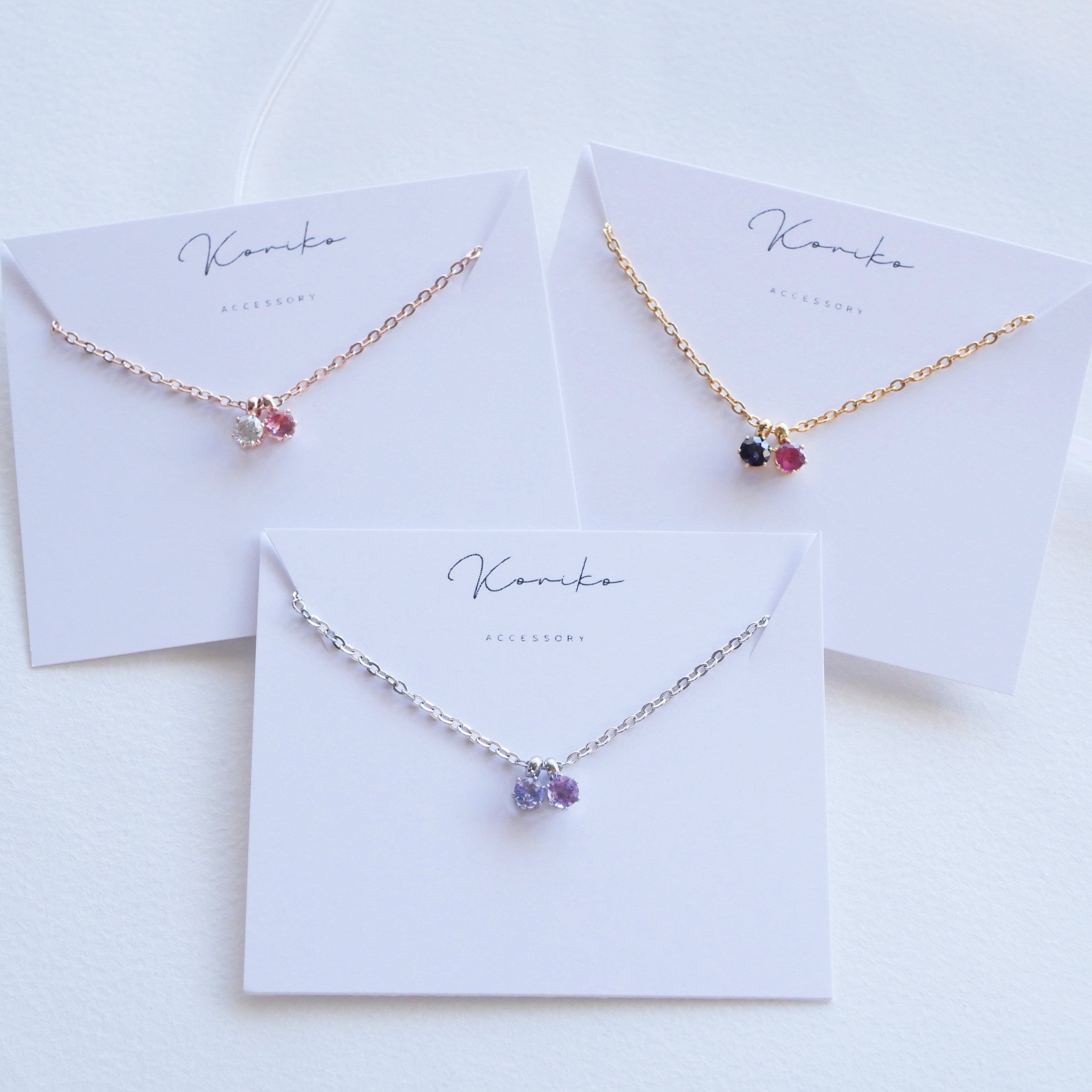 ◆『約3mmの小粒な誕生石を二粒使用したネックレス』