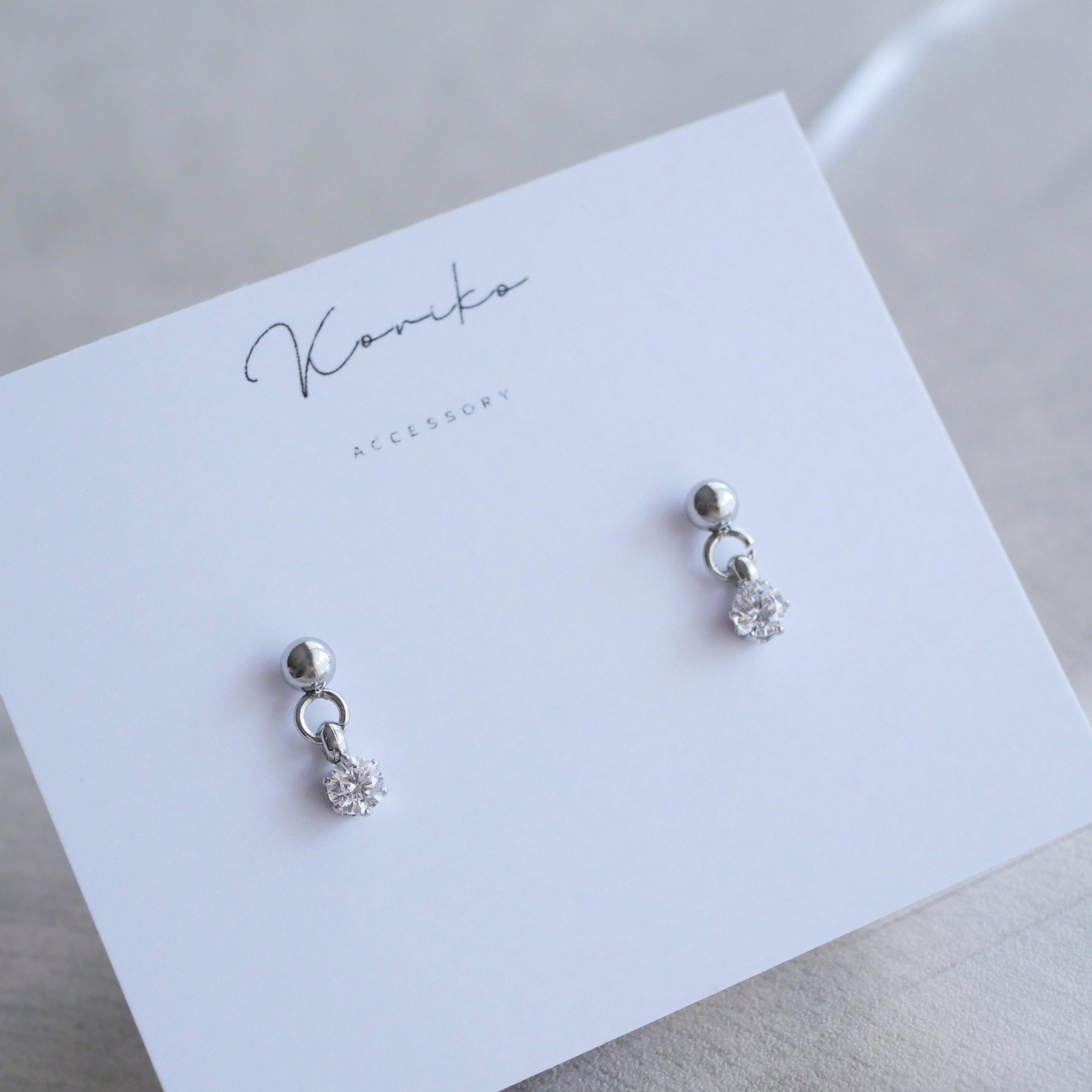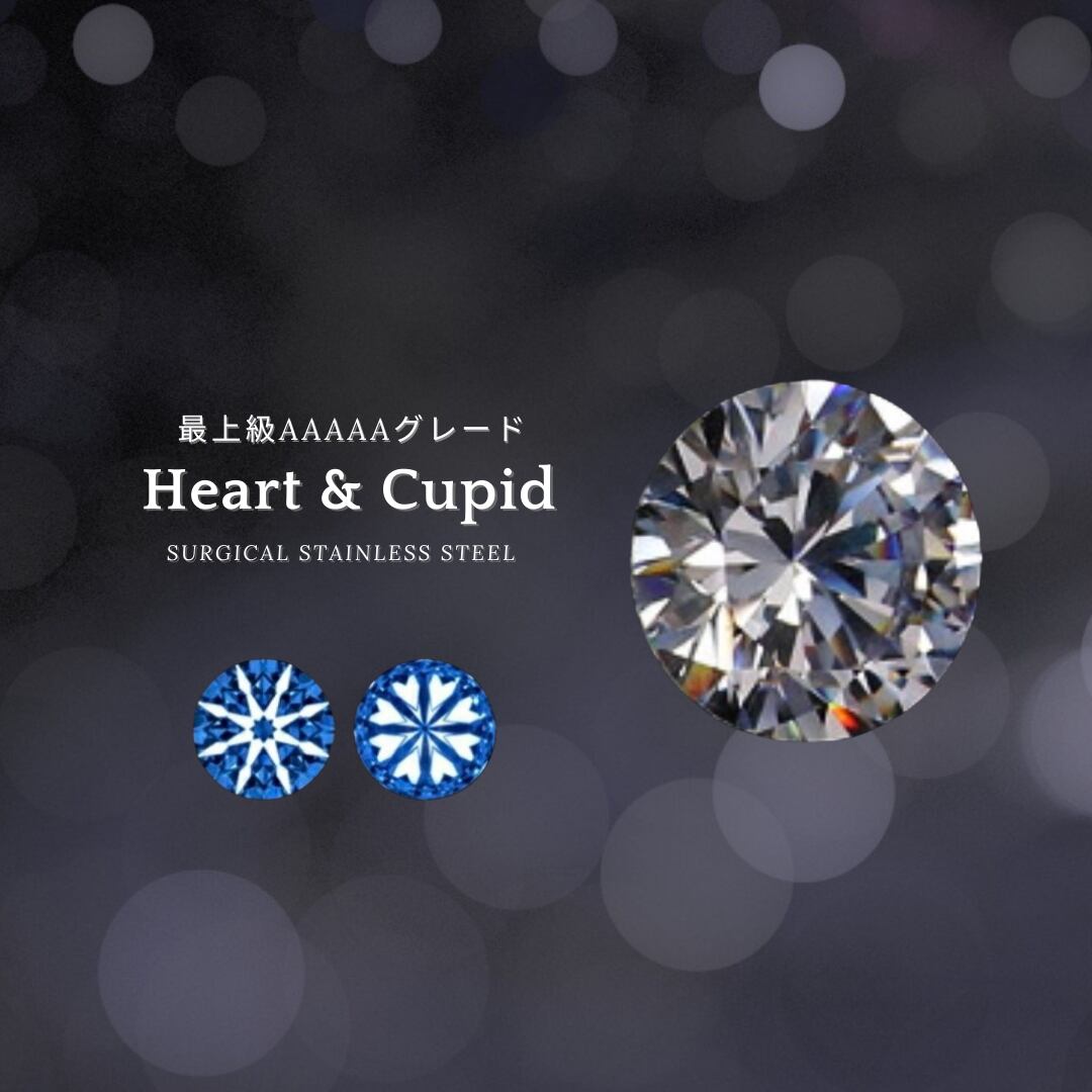 【Heart&Cupid】 CZダイヤ 揺れる一粒ピアス&ネックレス 3mm サージカルステンレス 金属アレルギー対応 小さい 小粒 ひと粒 つけっぱなし クリア