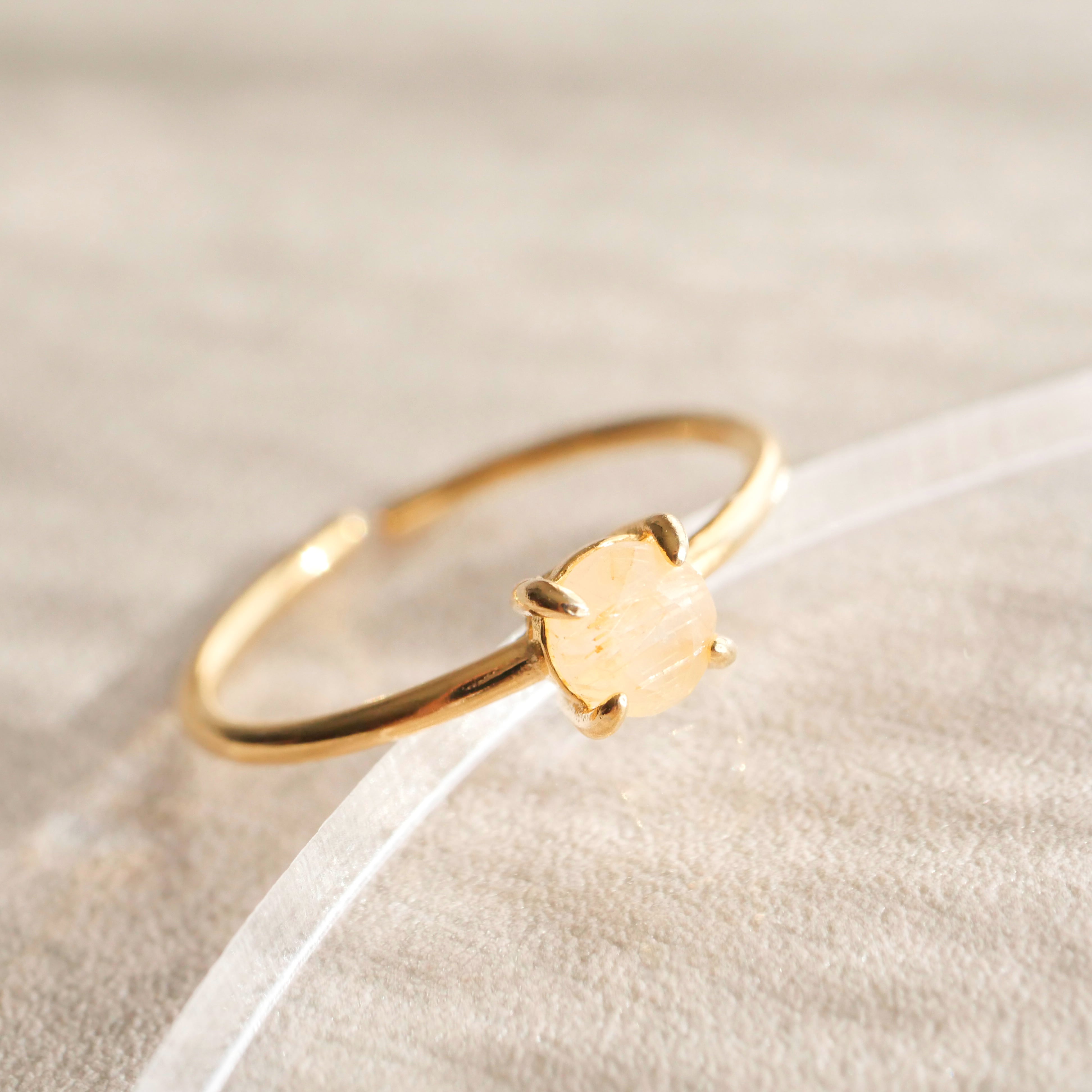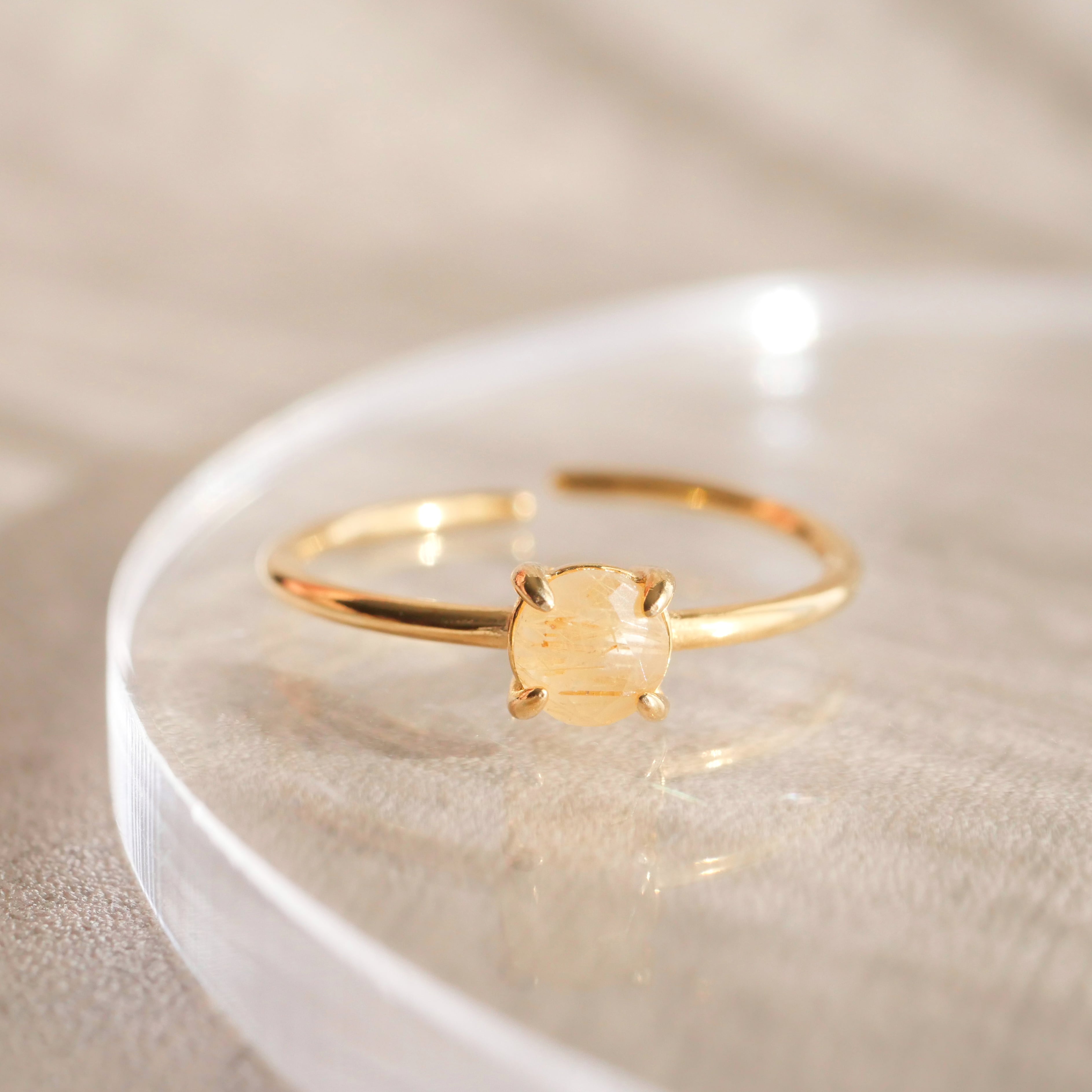 ルチルクォーツの一粒リング 指輪 ルチルクオーツ シルバー925 18KGP フリーサイズ 金属アレルギー対応 シンプル 小ぶり 天然石 金アレ対応