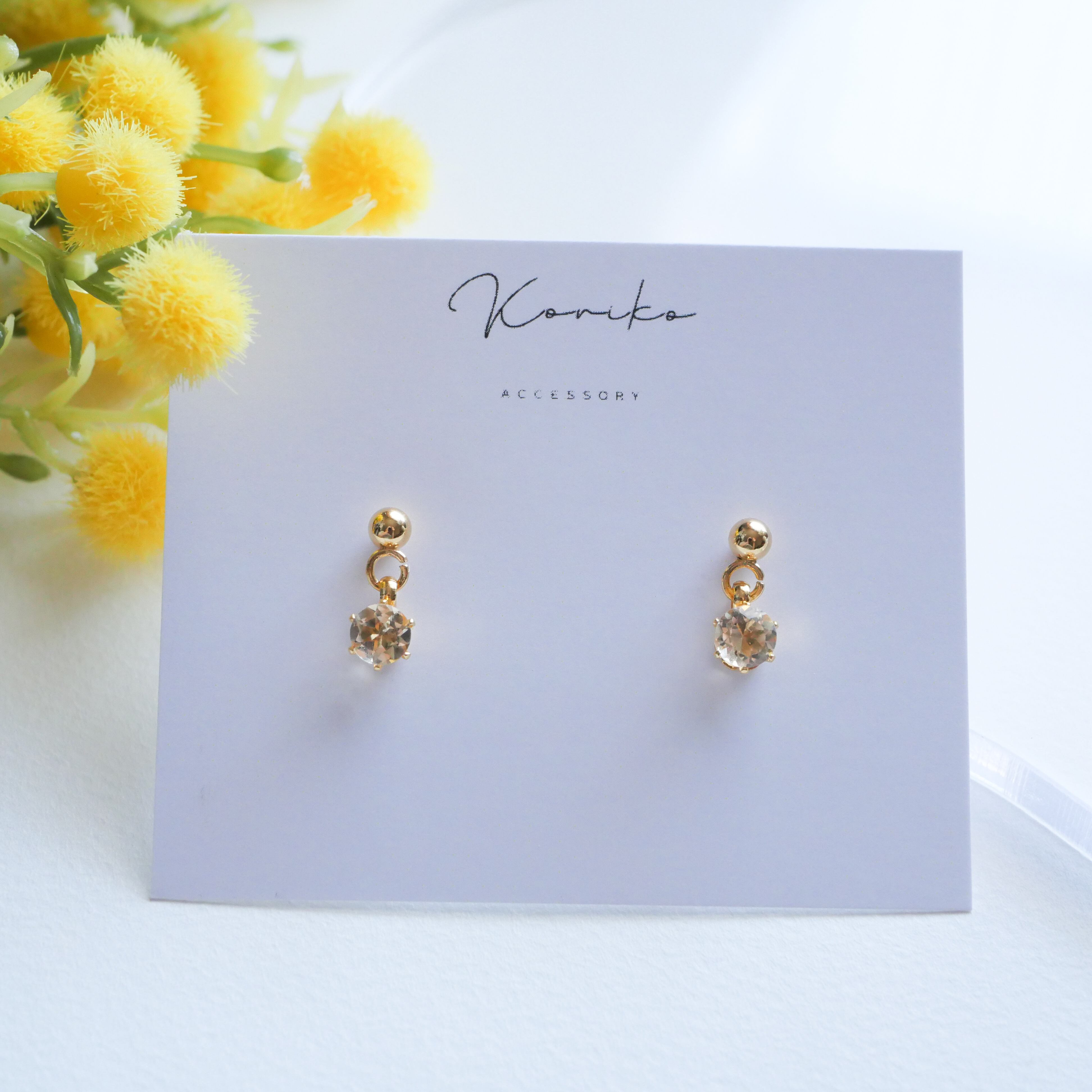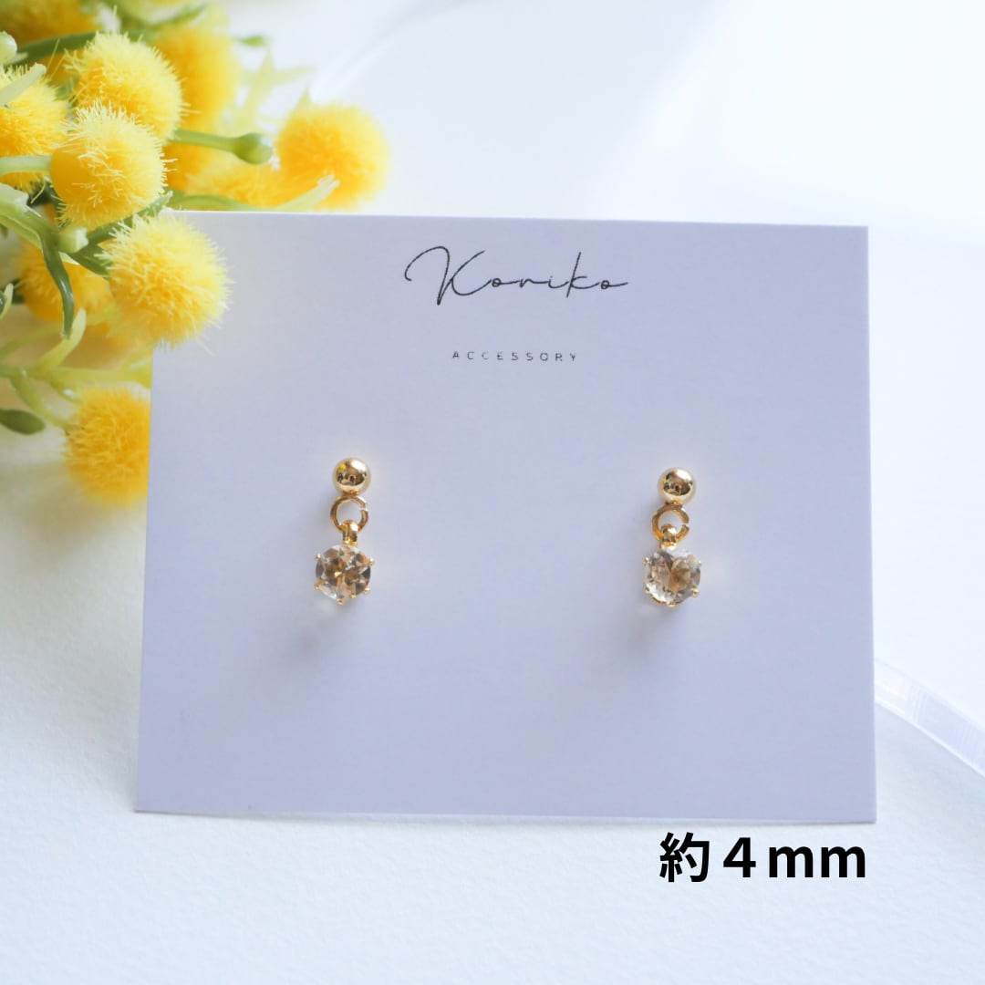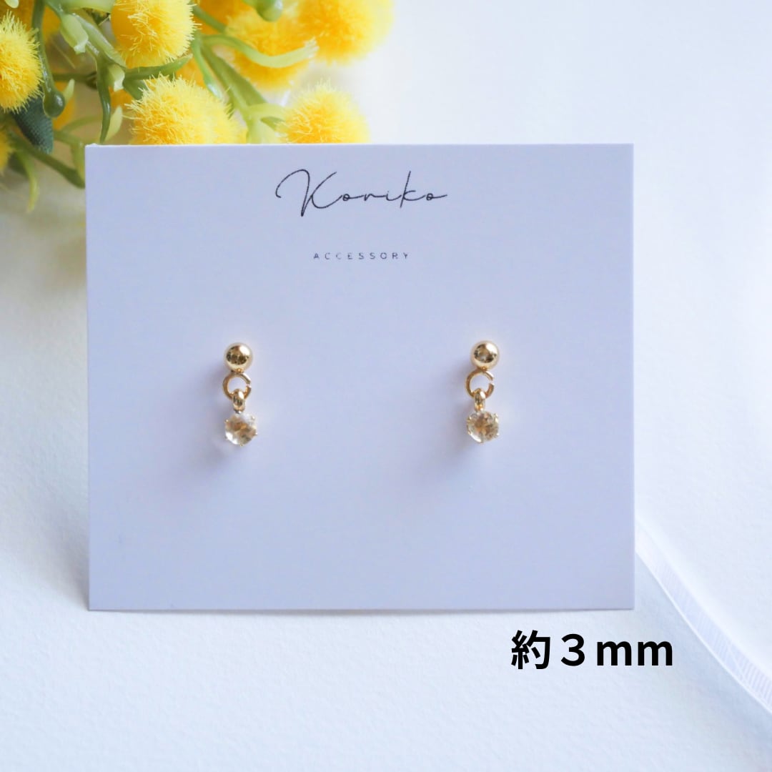 【訳あり】透明感きらめく淡色シトリン揺れる一粒ピアス|AAA高品質|3mm・4mm|サージカルステンレス 11月誕生石 天然石 金属アレルギー対応 小粒