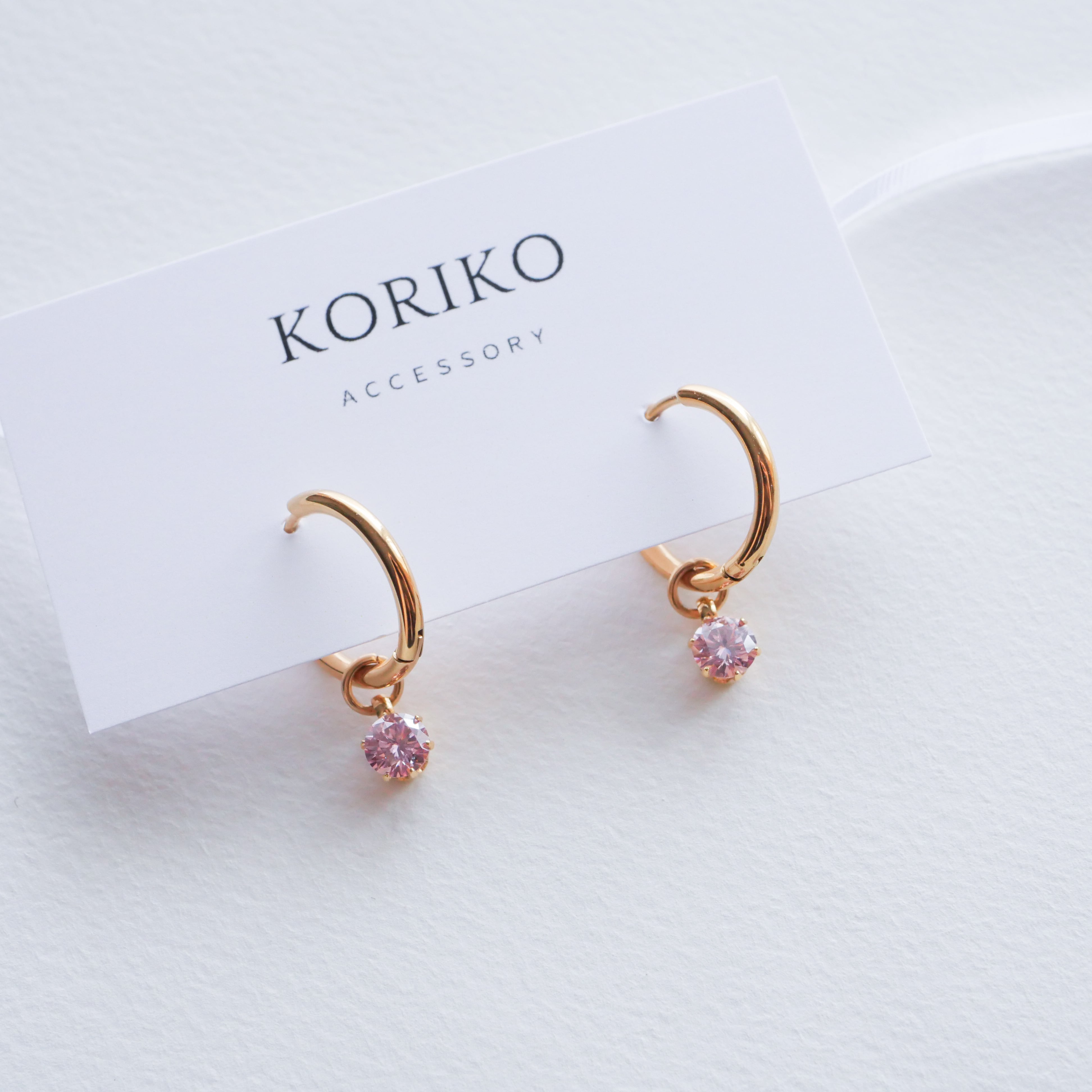 【春をまとう桜色】モアサナイト サクラピンク フープピアス/イヤリング 4mm 小ぶり サージカルステンレス 金属アレルギー対応 小さい 小粒 ゴールド シルバー ピンクゴールド