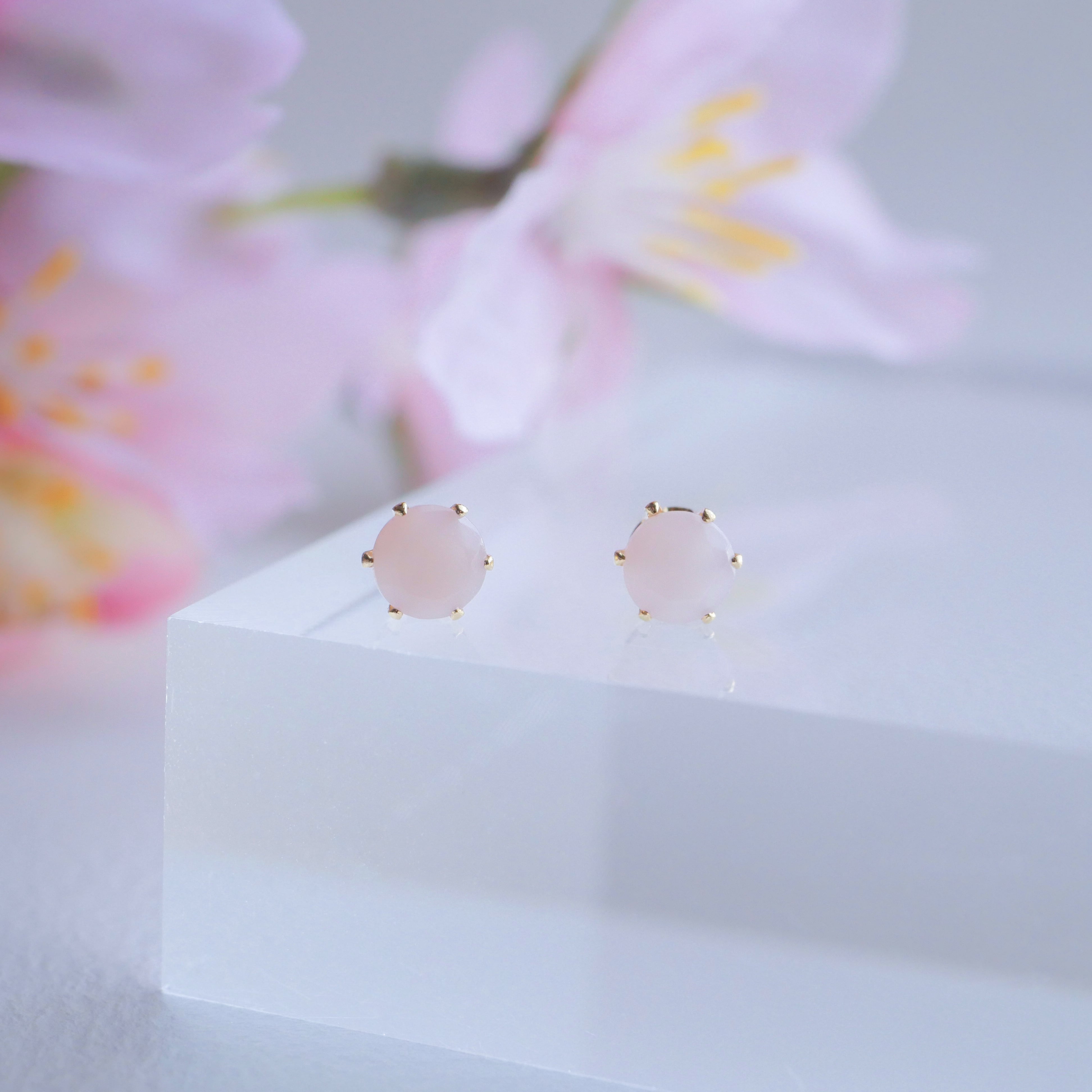 やさしく可愛らしいピンクカラーが魅力のピンクオパールの一粒ピアスです。