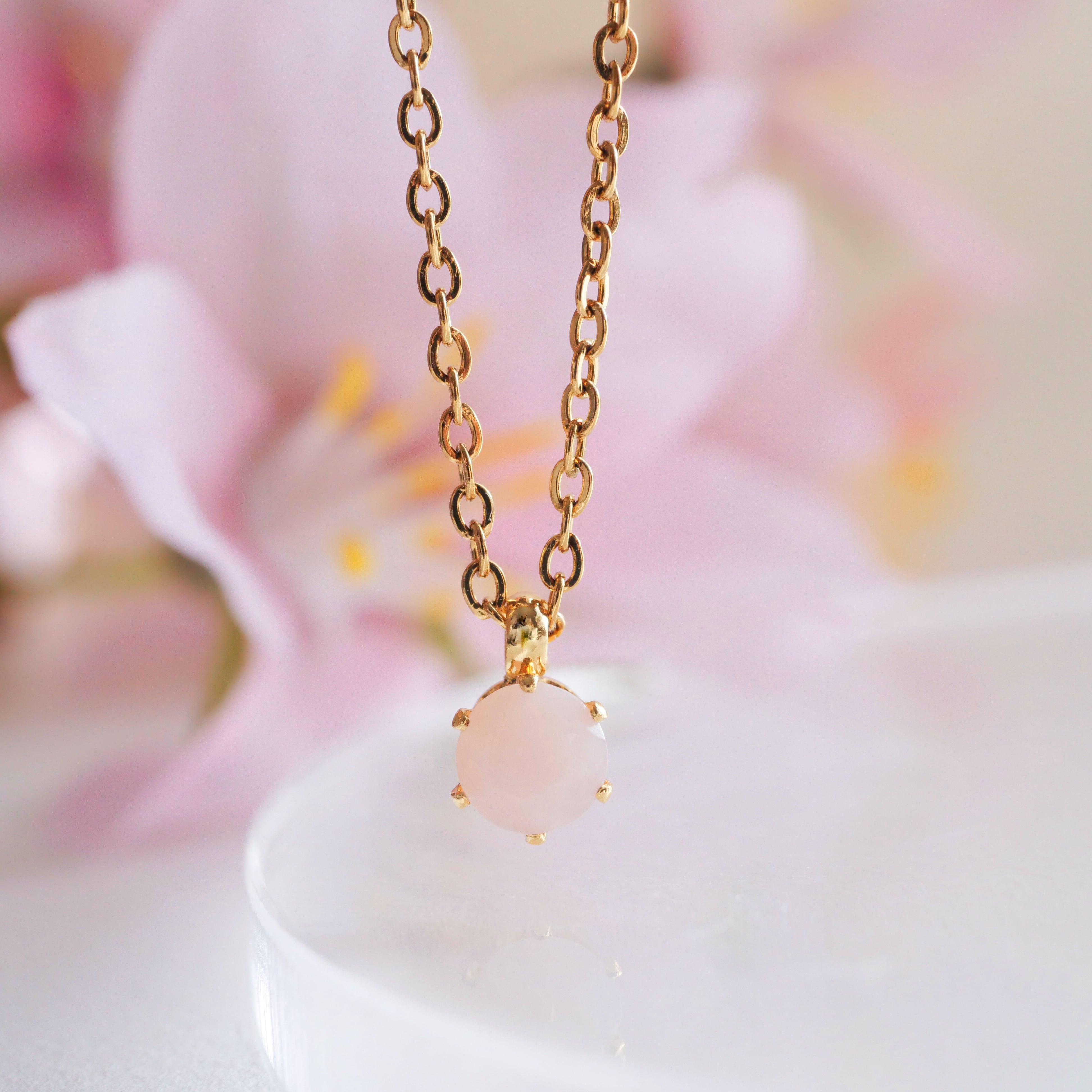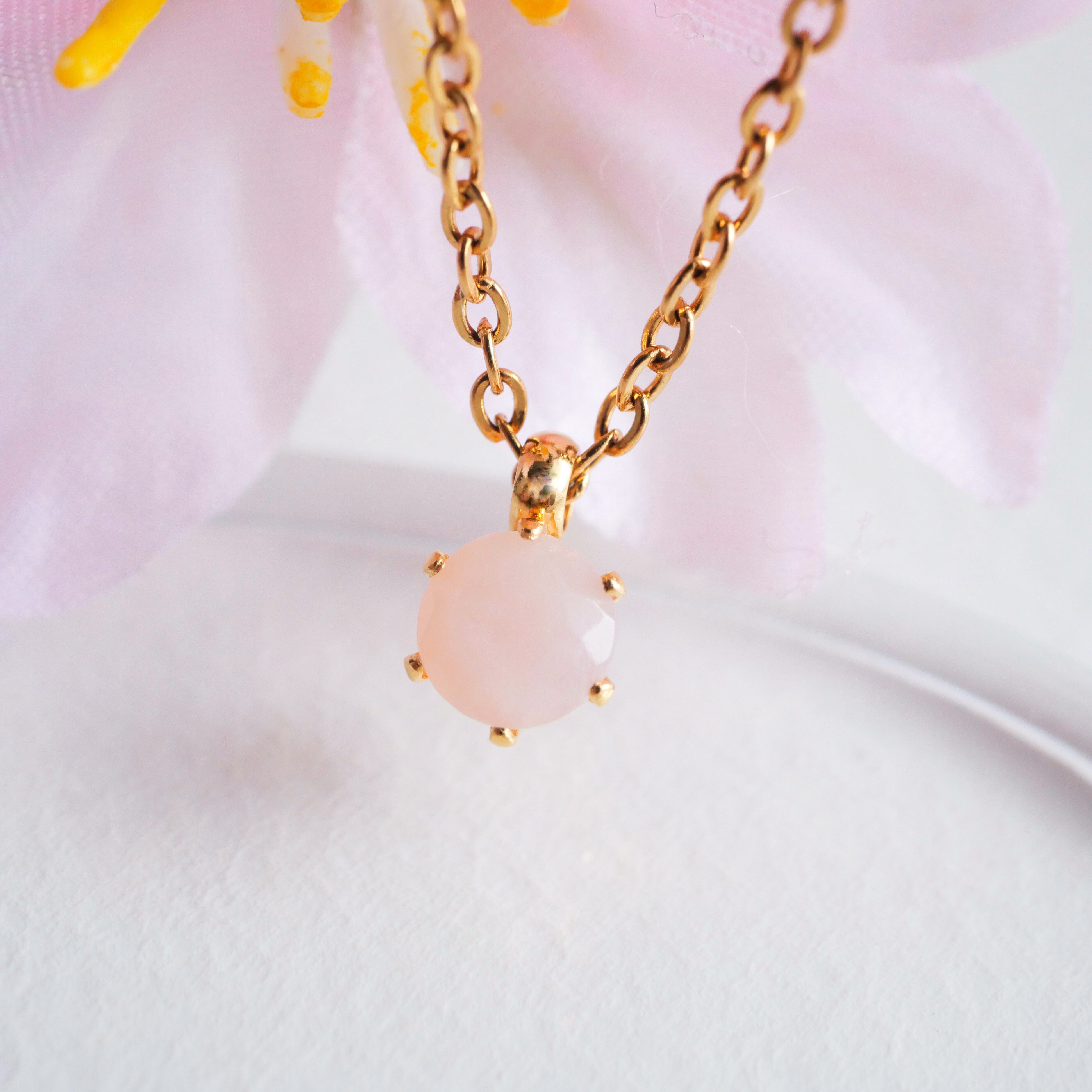 春色のピンクオパールの一粒ネックレス 10月誕生石 サージカルステンレス 金属アレルギー対応 小ぶり 天然石 ゴールド/シルバー/ピンクゴールド 小粒 桜カラー
