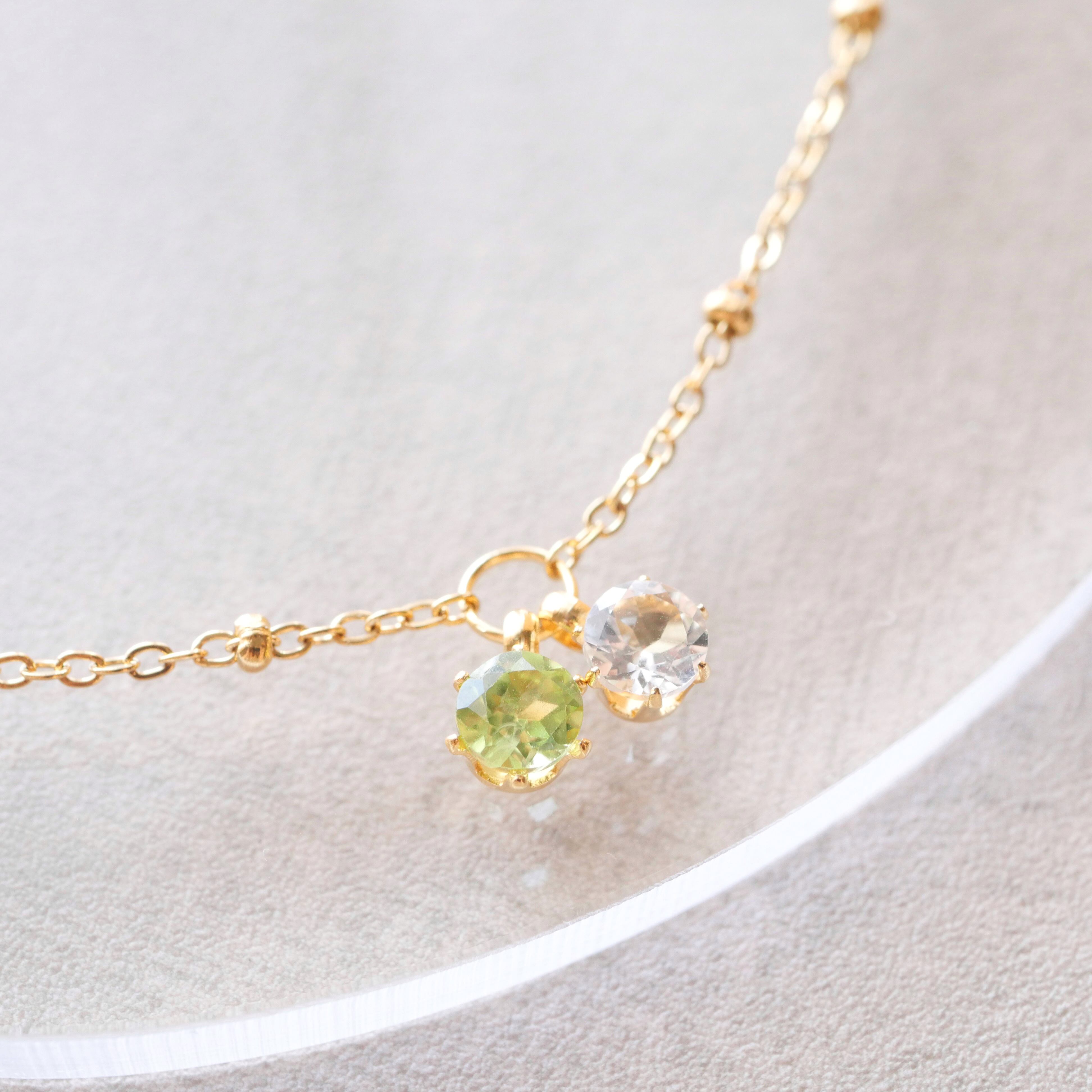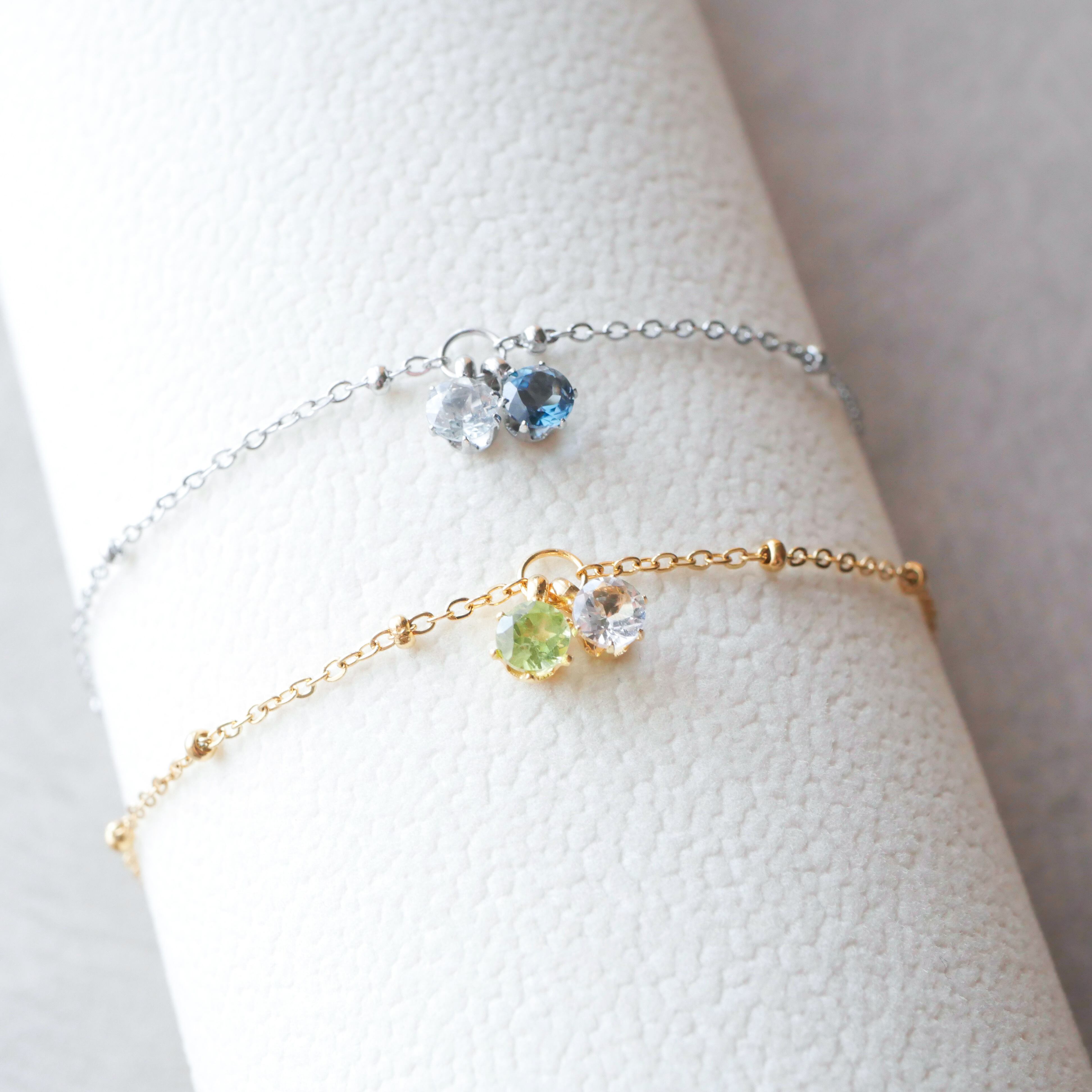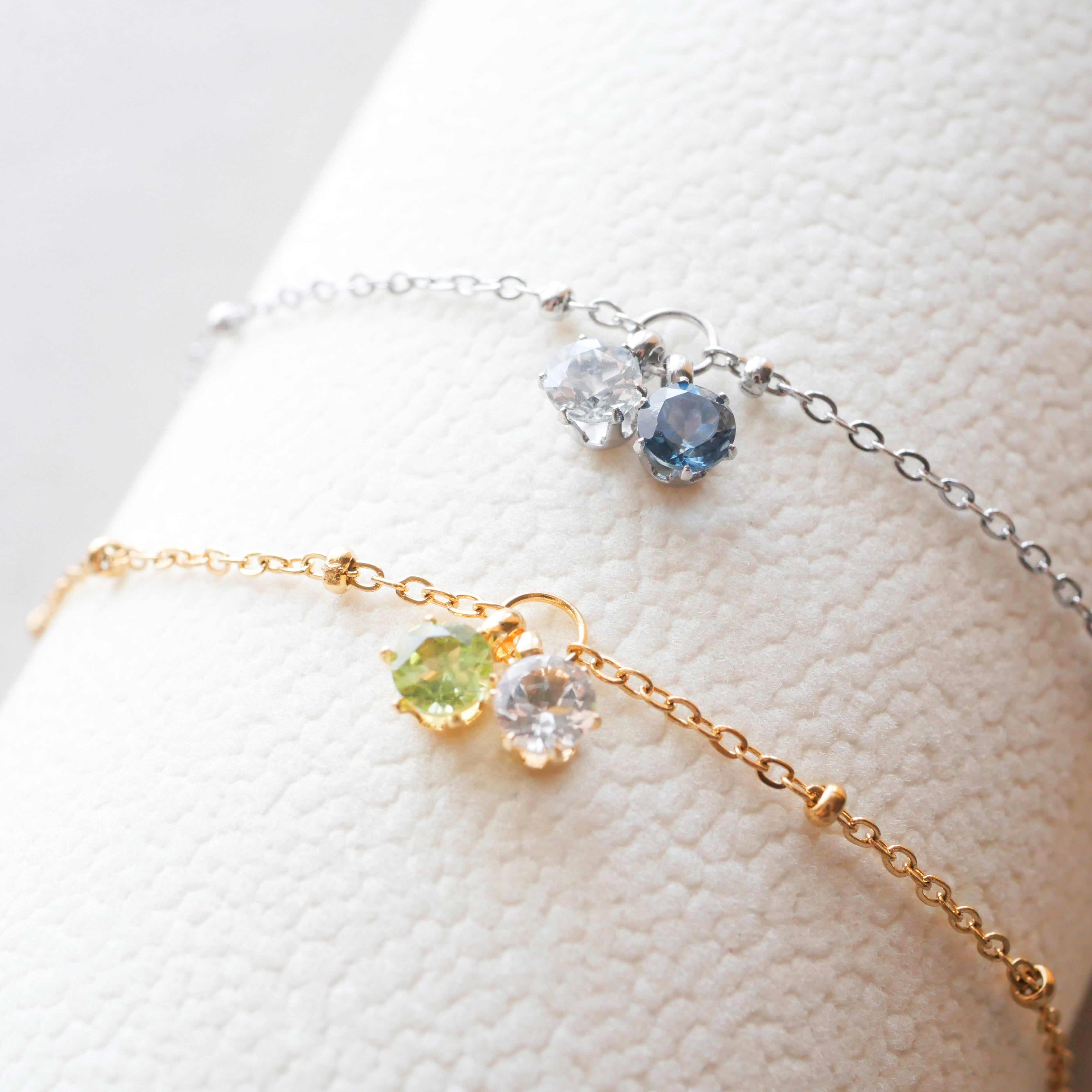 選べる二粒の誕生石ブレスレット 天然石 ゴールド シルバー サージカルステンレス 金属アレルギー対応