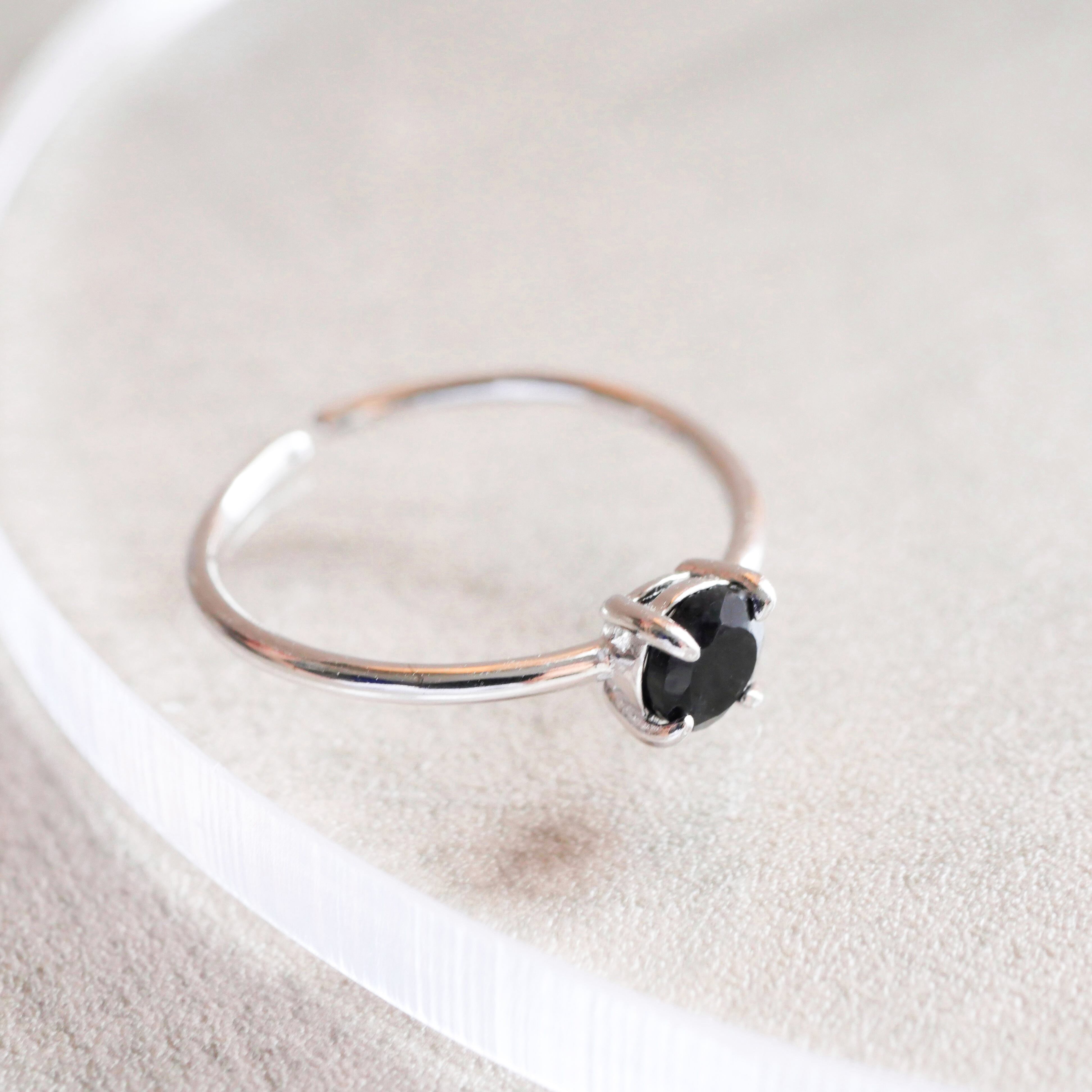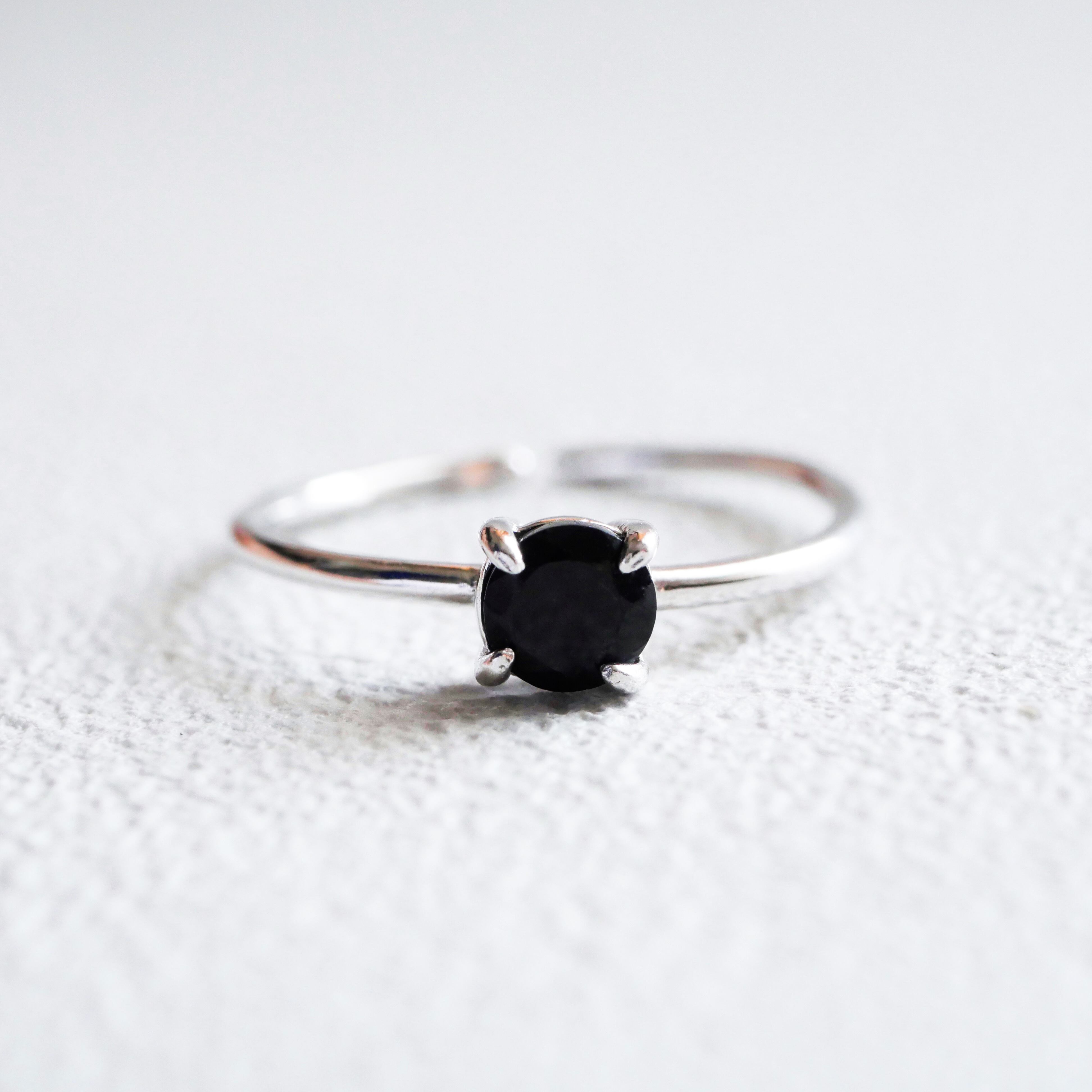 〈モノトーンの魅力〉ブラックオニキスの一粒リング 指輪 シルバー925 18KGP フリーサイズ 金属アレルギー対応 シンプル 小ぶり 天然石 誕生石 モノトーン モノクロ 黒