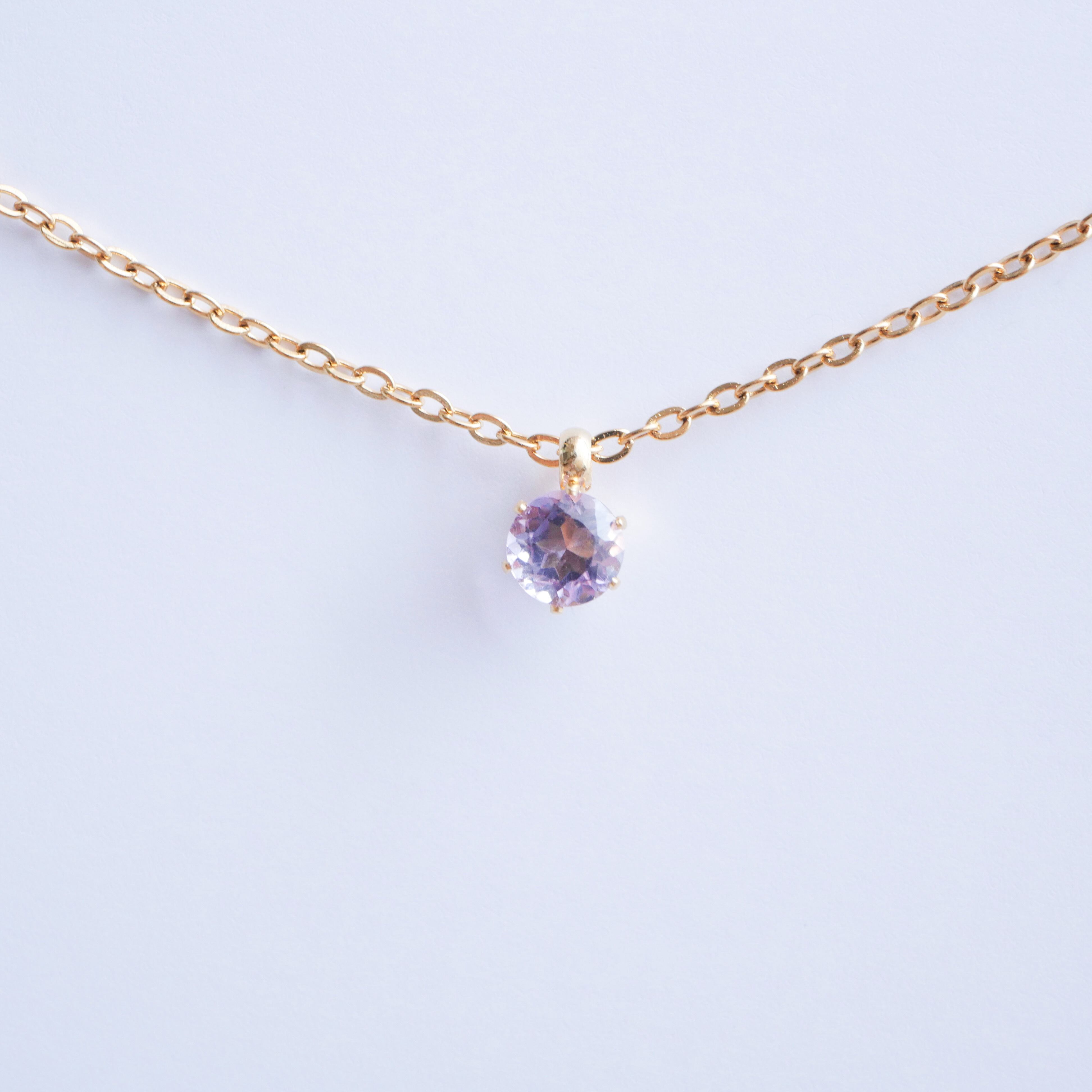アメジストの一粒ネックレス 2月誕生石 ゴールド シルバー サージカルステンレス 金属アレルギー対応 天然石 プレゼント ギフト 金アレ対応