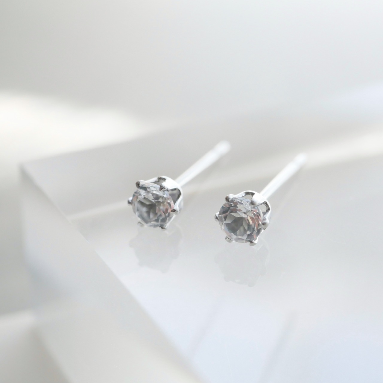 つけっぱなしOK!ホワイトトパーズ極小 一粒ピアス 3mm サージカルステンレス 金属アレルギー対応 小さい 小粒