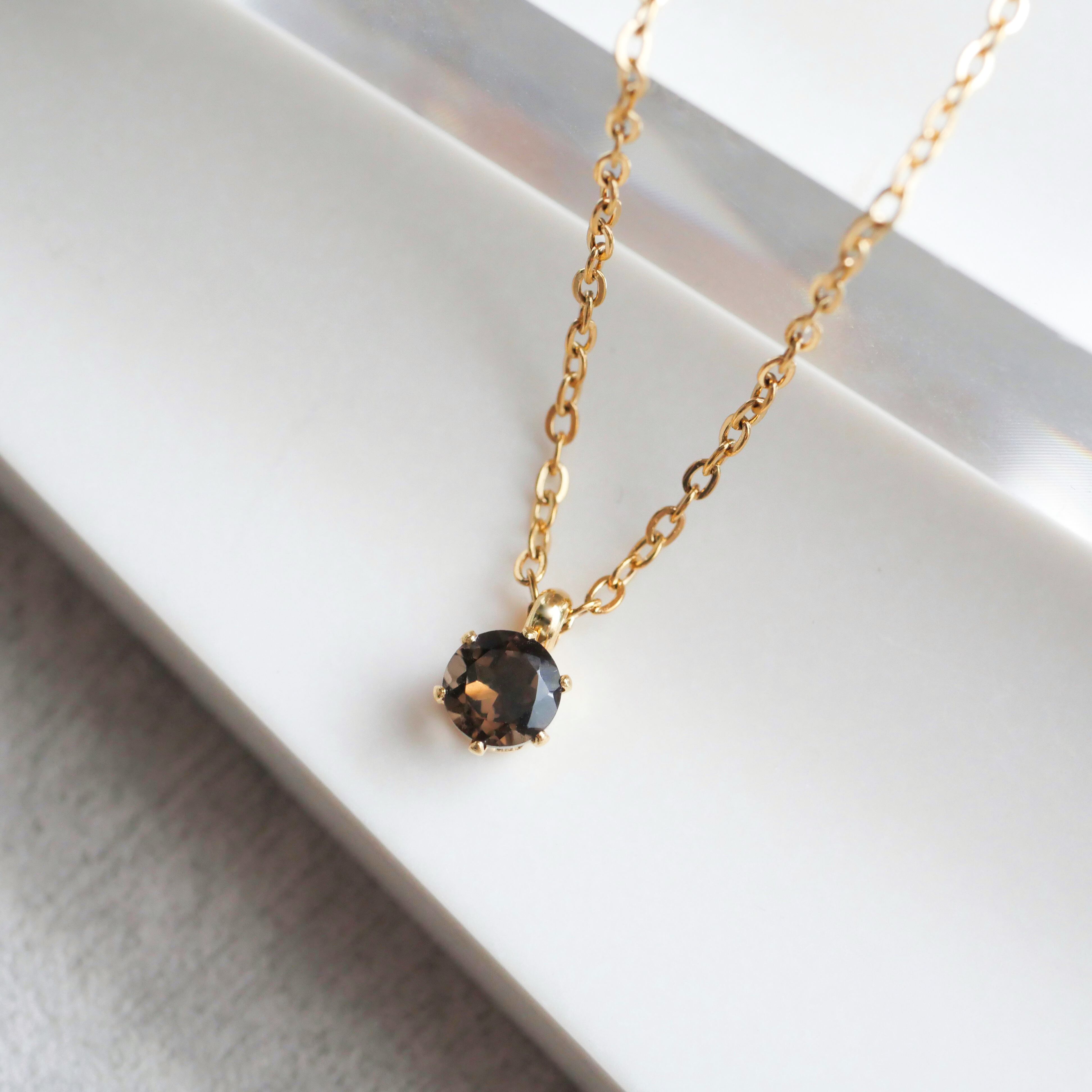 〈大人ブラウン〉スモーキークォーツの1粒ネックレス サージカルステンレス 金属アレルギー対応 小ぶり ゴールド シルバー ピンクゴールド 天然石
