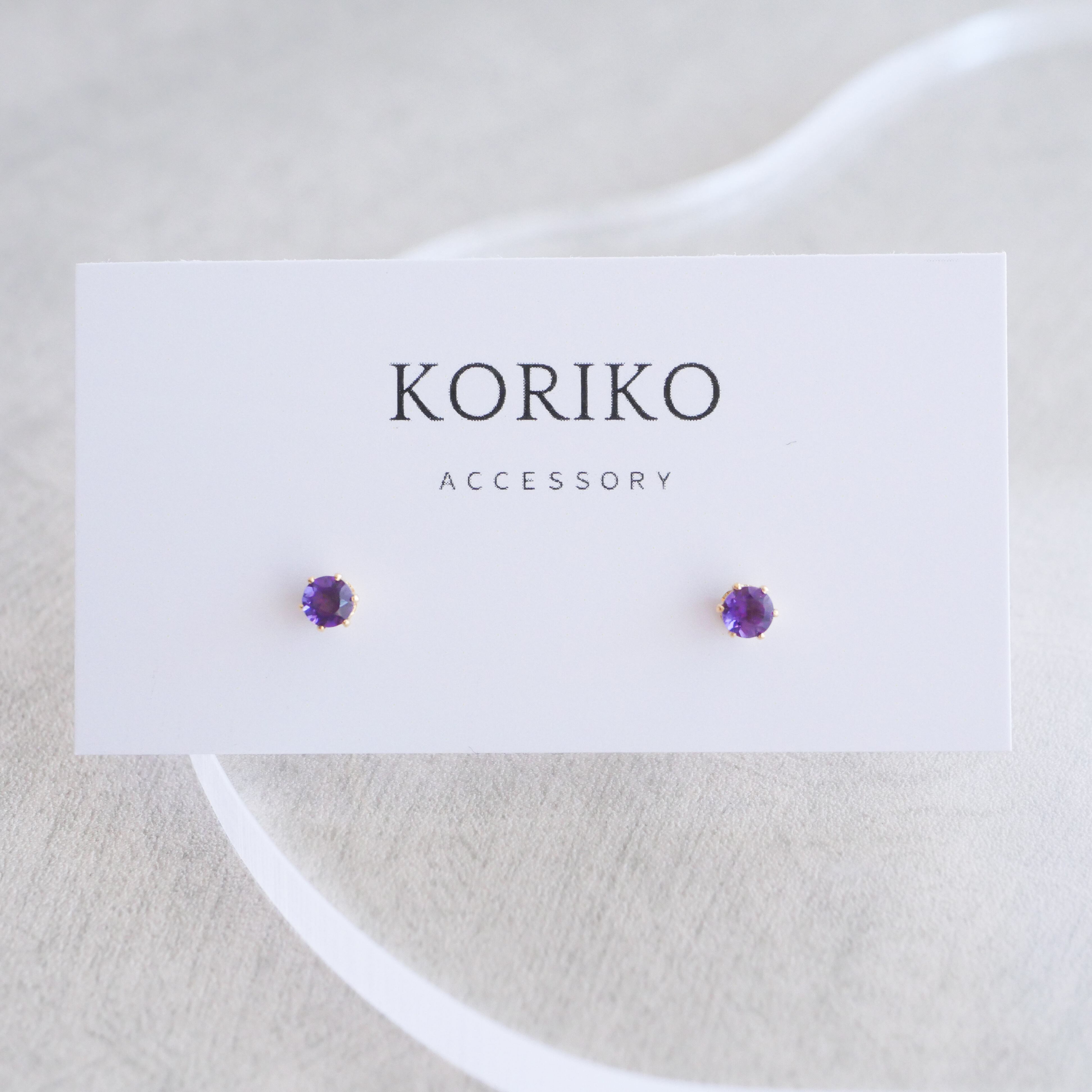 【紫の輝き】アメジスト 一粒ピアス 3mm 2月誕生石 サージカルステンレス 金属アレルギー対応 小さい 小粒 極小 天然石 ゴールド/シルバー