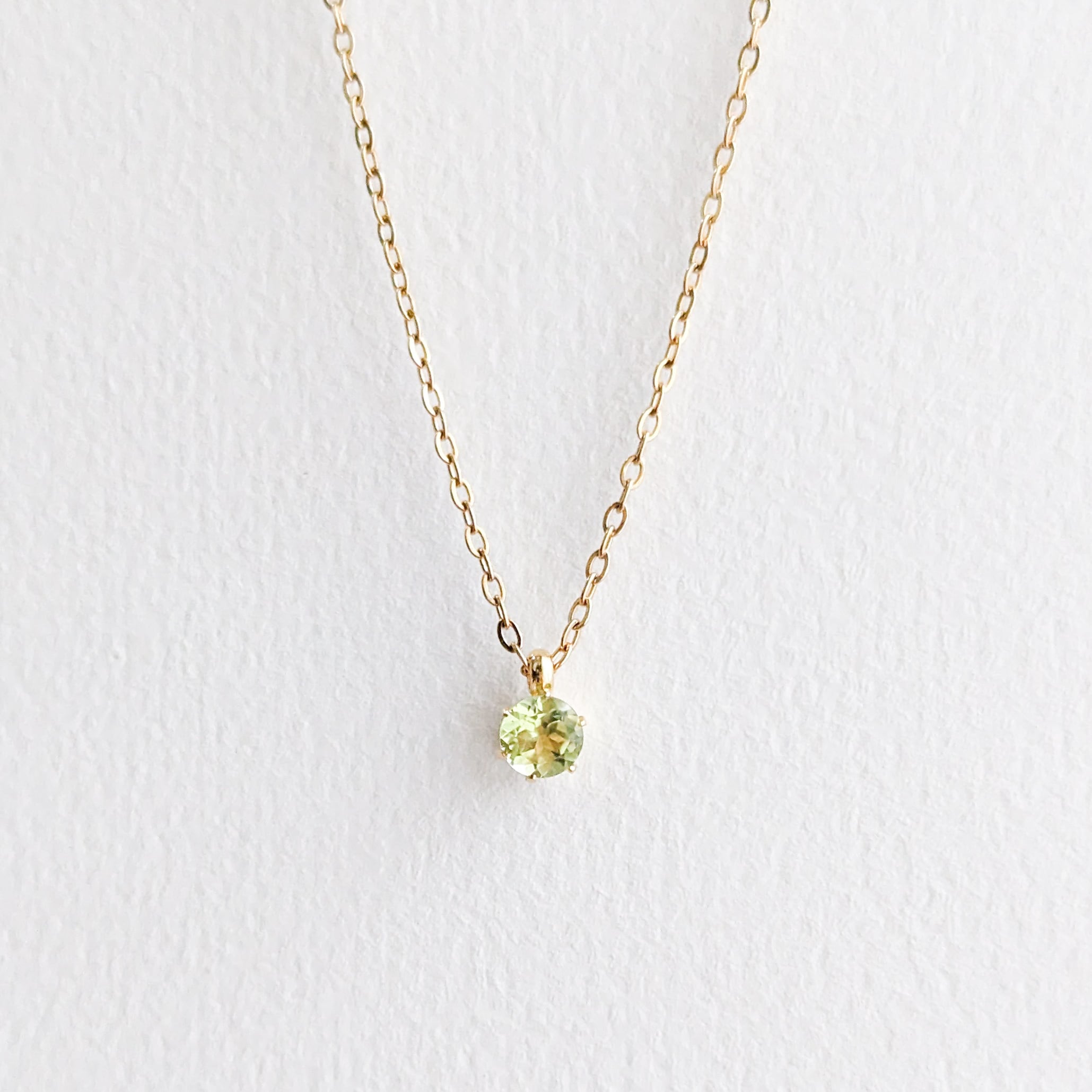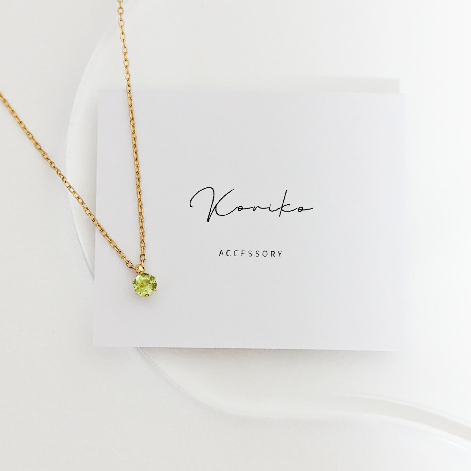 ペリドットの1粒ゴールドネックレス 8月誕生石 小ぶり サージカルステンレス 金属アレルギー対応
