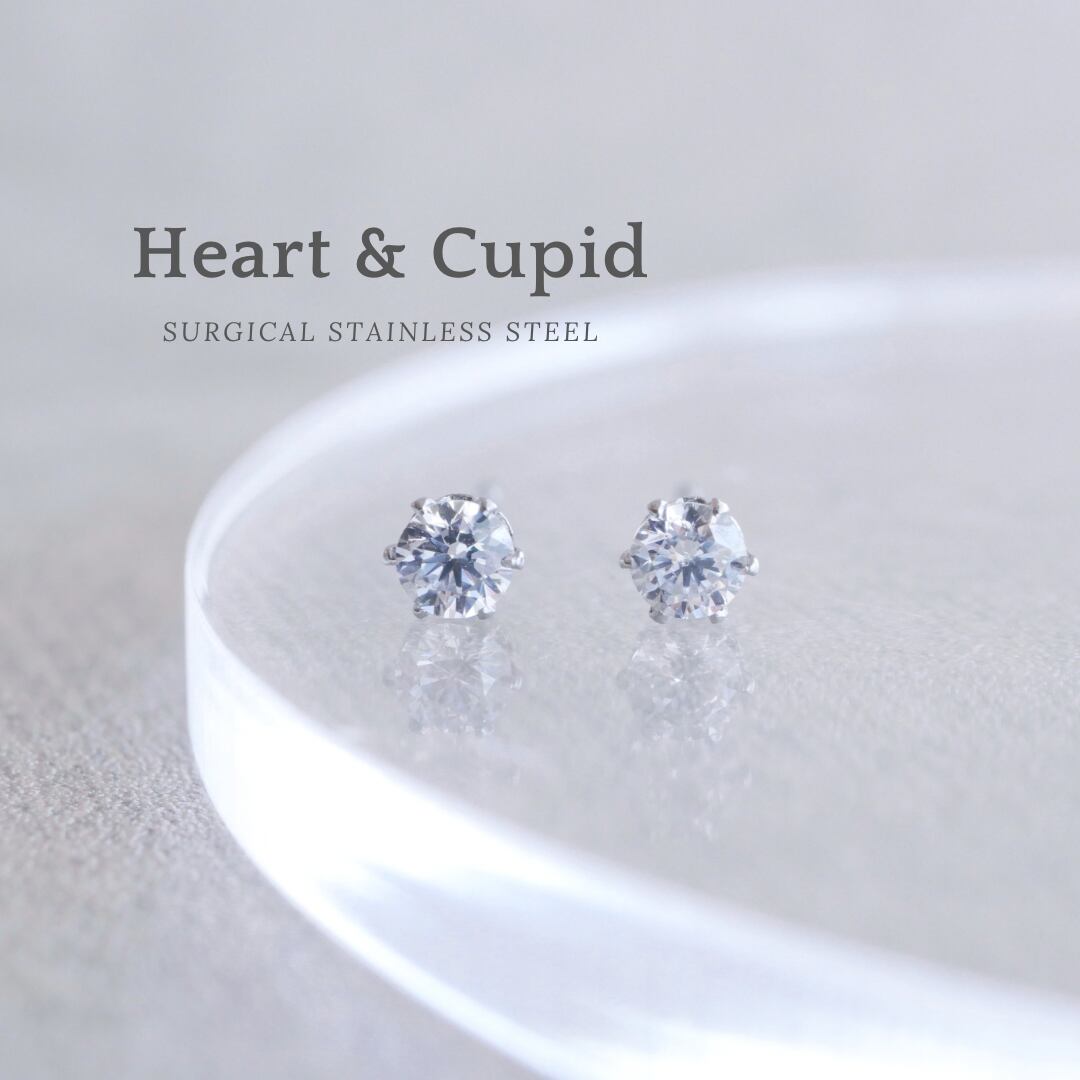 【Heart&Cupid】CZダイヤ つけっぱなしOK!極小 一粒ピアス 3mm サージカルステンレス 金属アレルギー対応 小さい 小粒