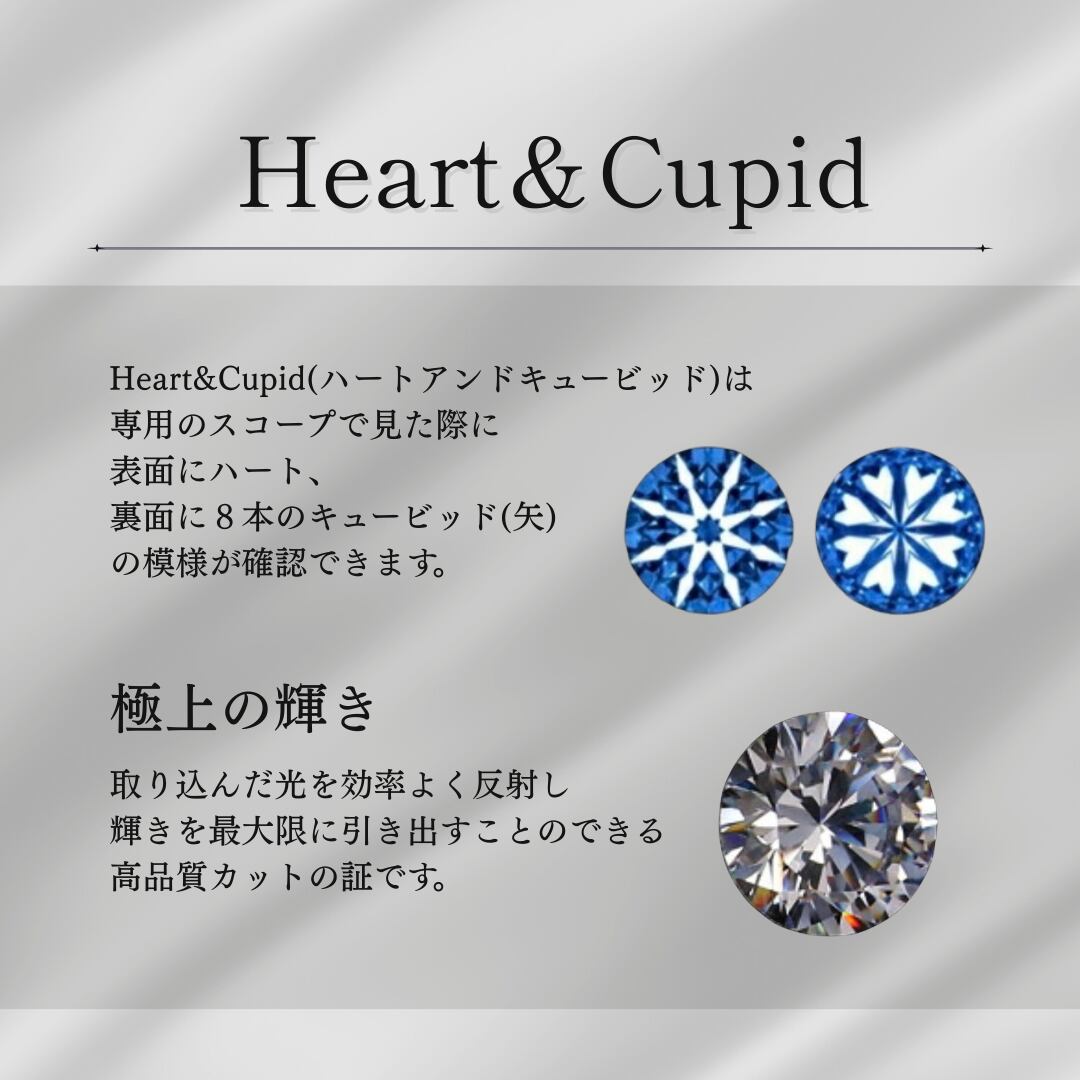 取り込んだ光を効率よく反射し輝きを最大限に引き出すことのできる高品質カットの証です。