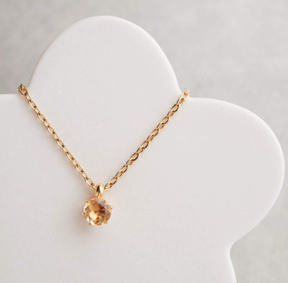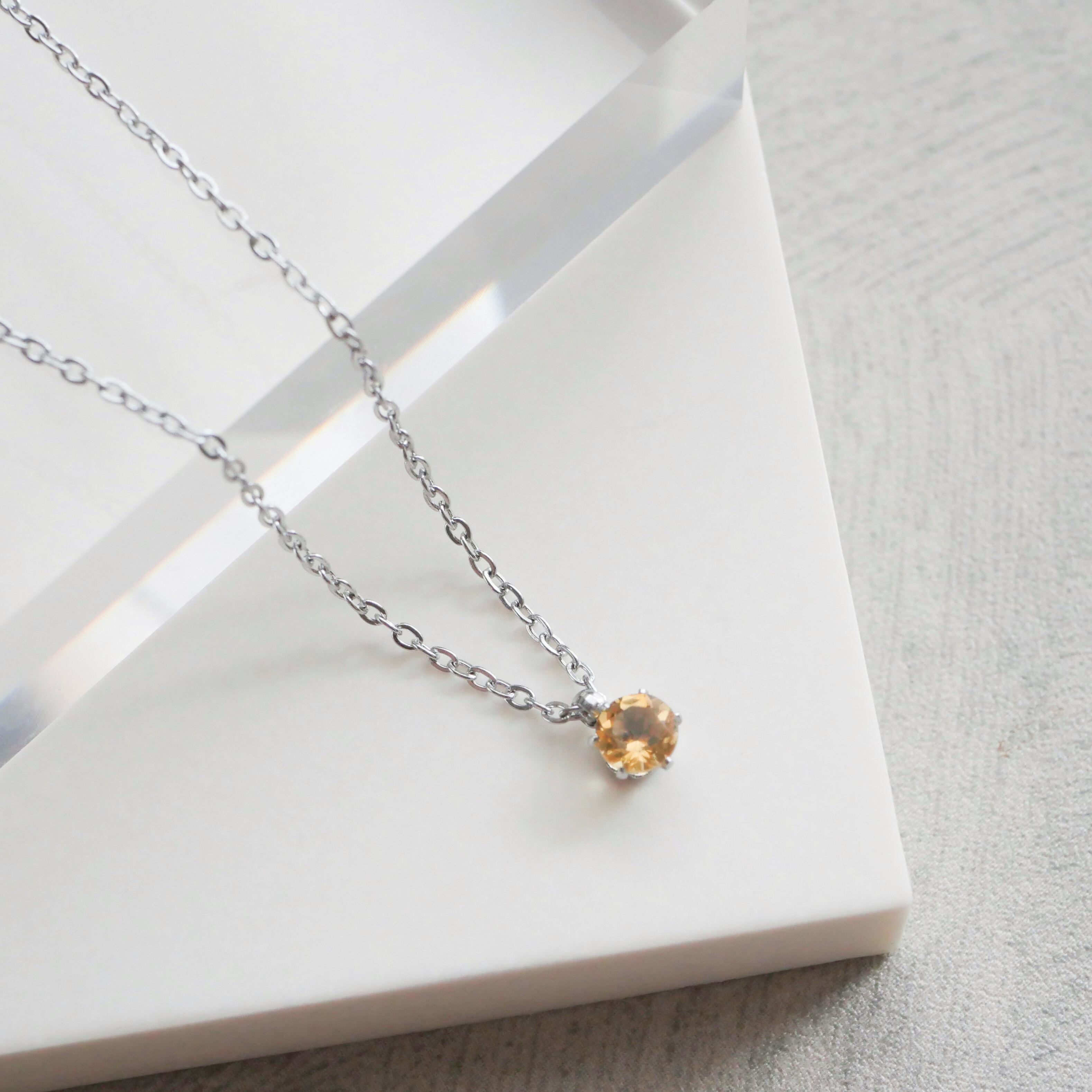 〈上品な輝き〉シトリンの1粒ネックレス 11月誕生石 サージカルステンレス 金属アレルギー対応 ゴールド シルバー ピンクゴールド 天然石