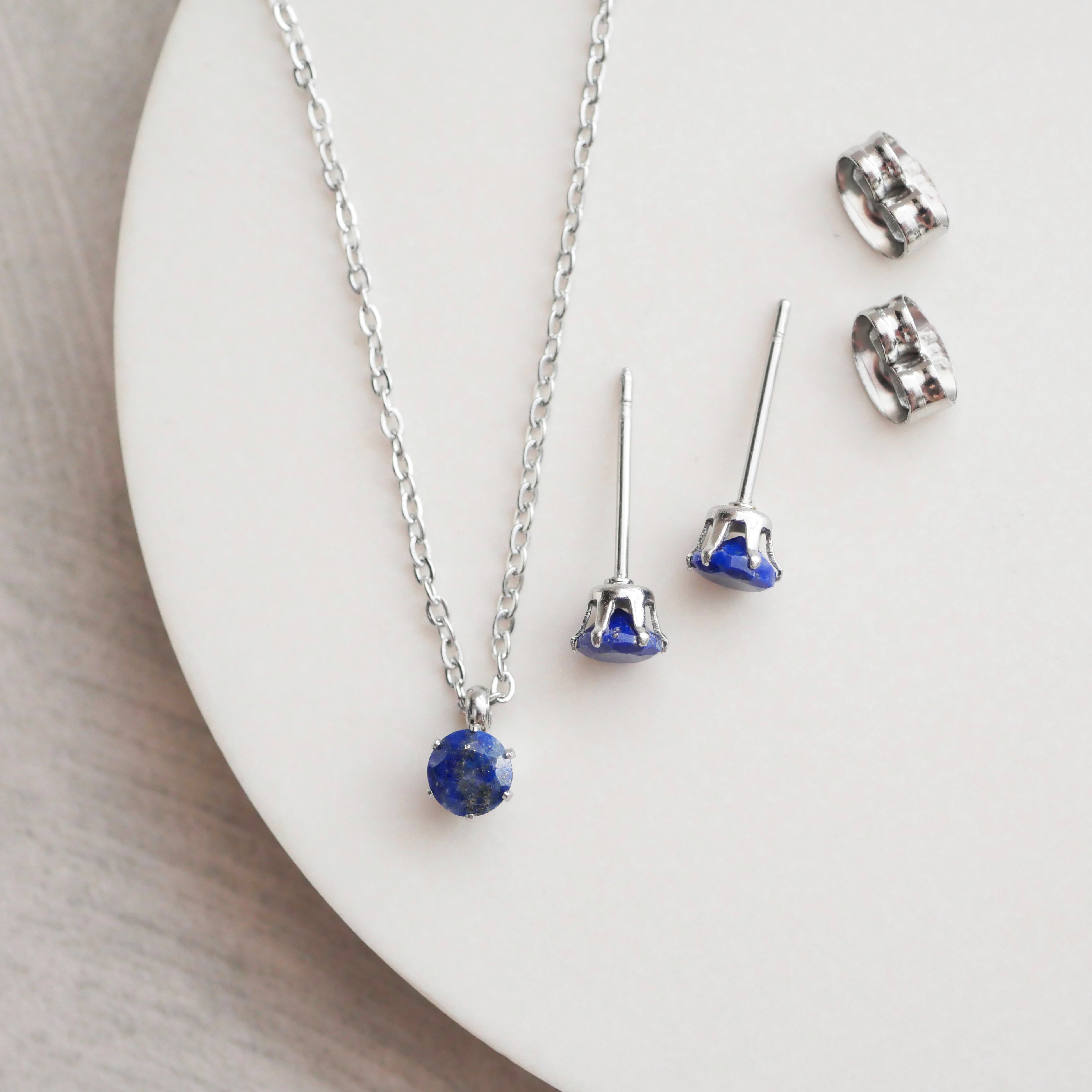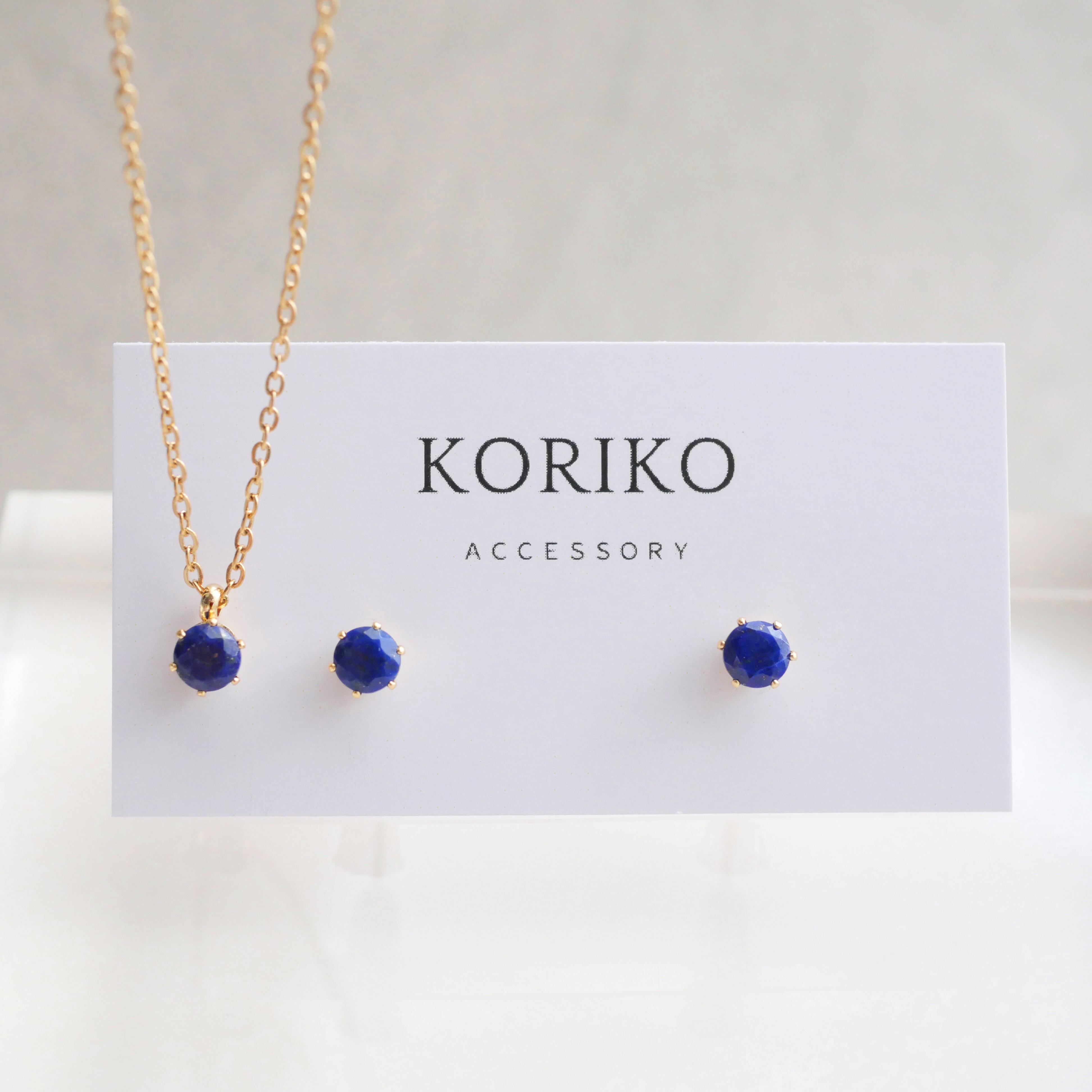 〈冬の装いに映える〉ラピスラズリの一粒ピアスとネックレスの2点セット 9月 12月誕生石【AAAランク】サージカルステンレス 金属アレルギー対応 小さい 小粒 ゴールド シルバー