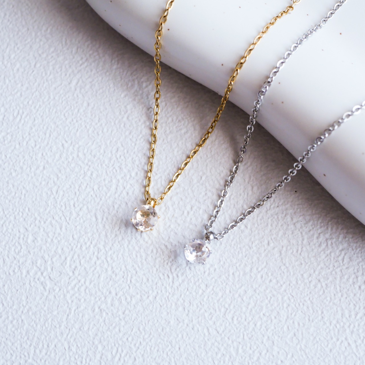 【ホワイトトパーズ】つけっぱなしOK!一粒ゴールド/シルバーネックレス 11月誕生石 サージカルステンレス 金属アレルギー対応