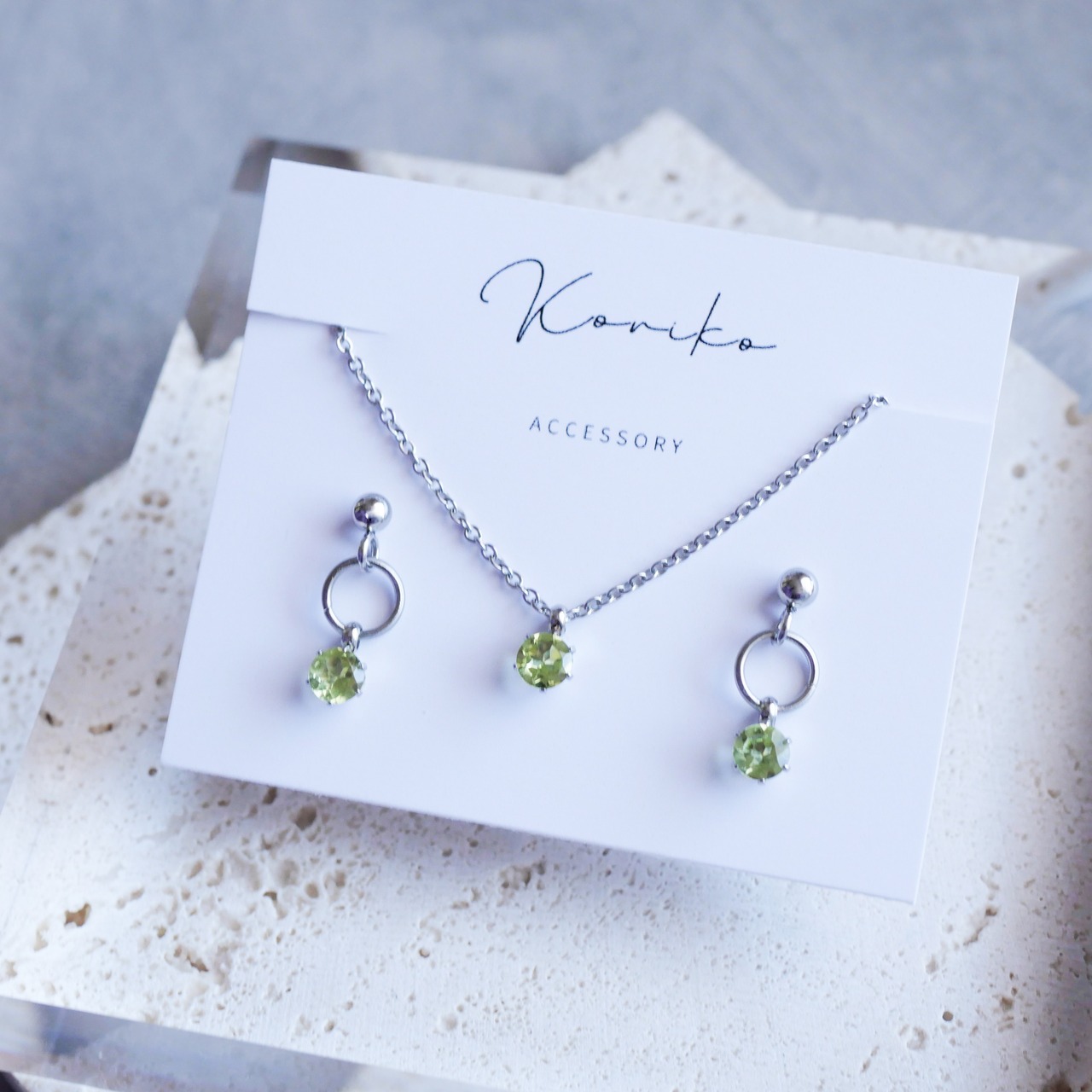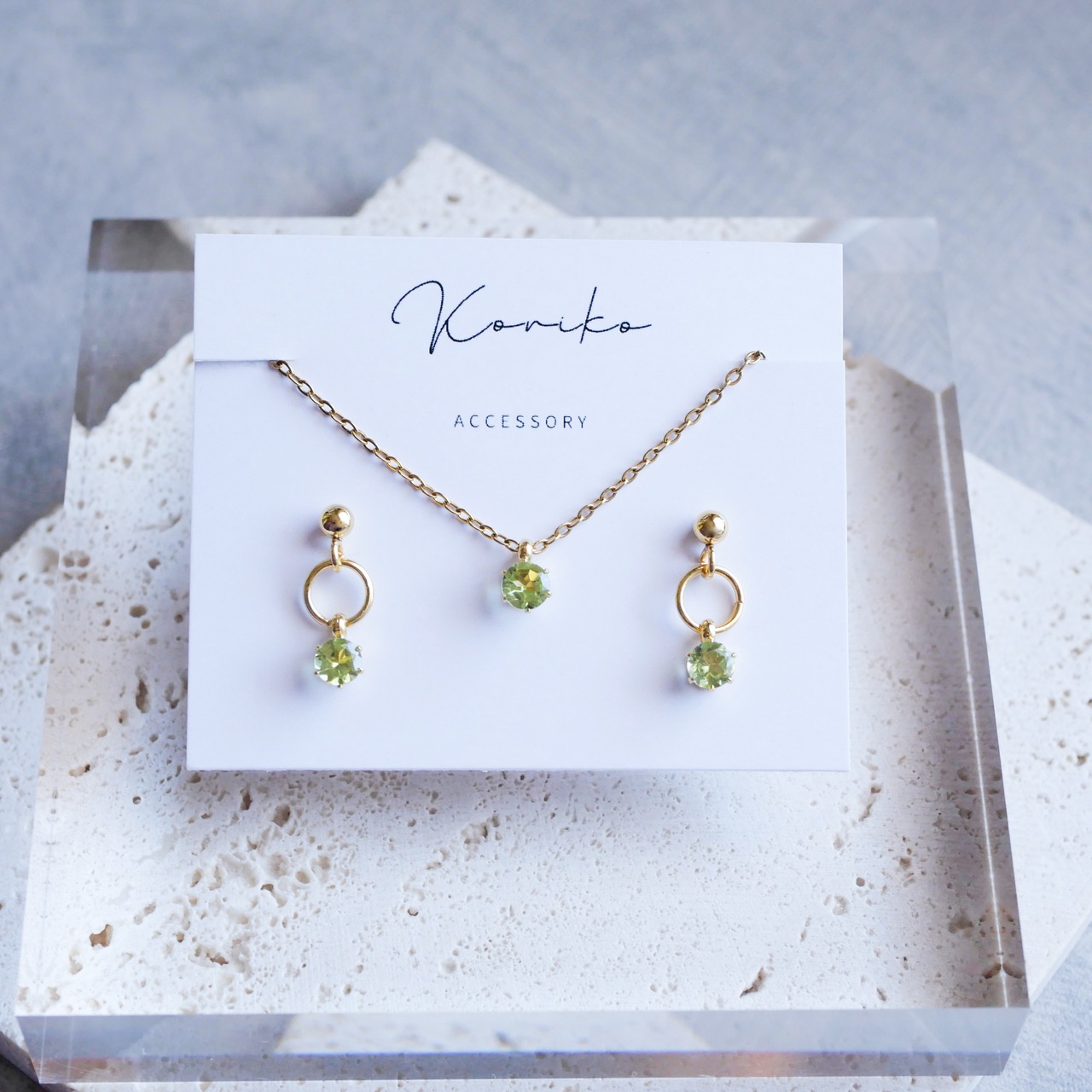 ◆ 8月誕生石の天然石ペリドット ピアス ネックレス