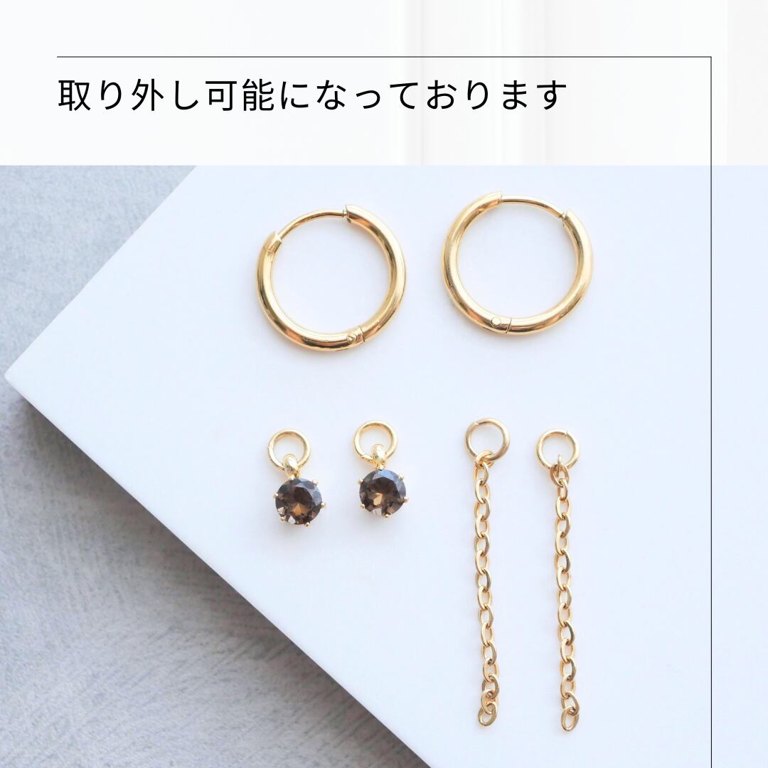 【揺らめくブラウン】スモーキークォーツのフープピアス/イヤリング サージカルステンレス 金属アレルギー対応 小さい 小粒 ゴールド シルバー ピンクゴールド 天然石