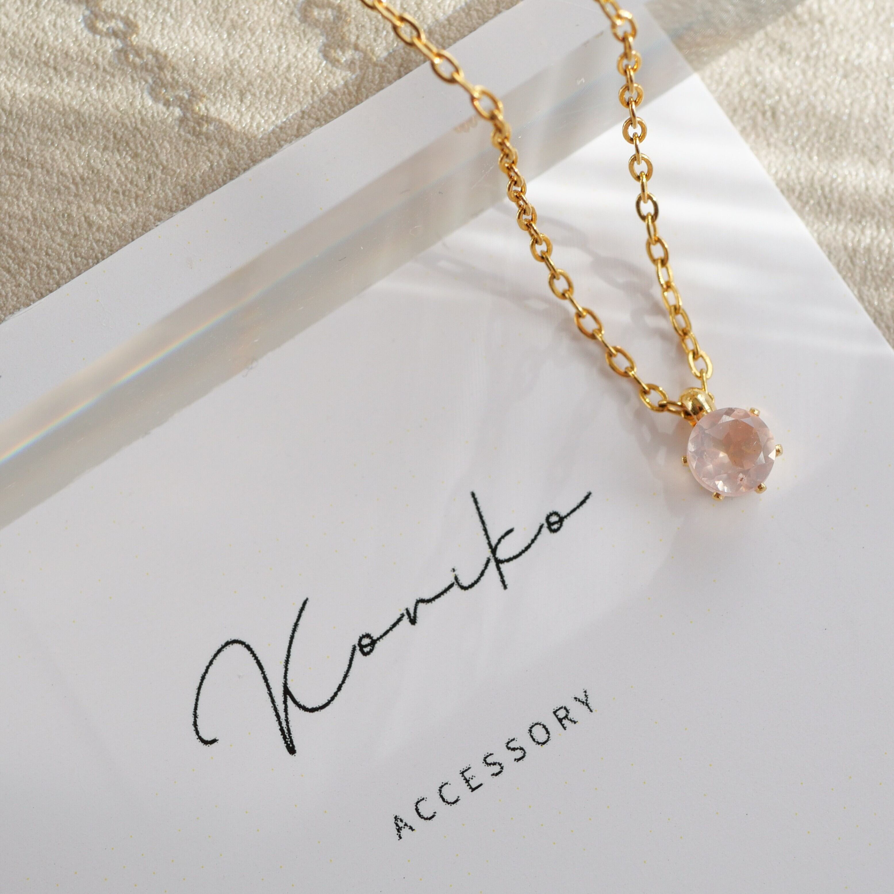 ローズクォーツの1粒ネックレス 小ぶり ゴールド シルバー サージカルステンレス 金属アレルギー対応 天然石