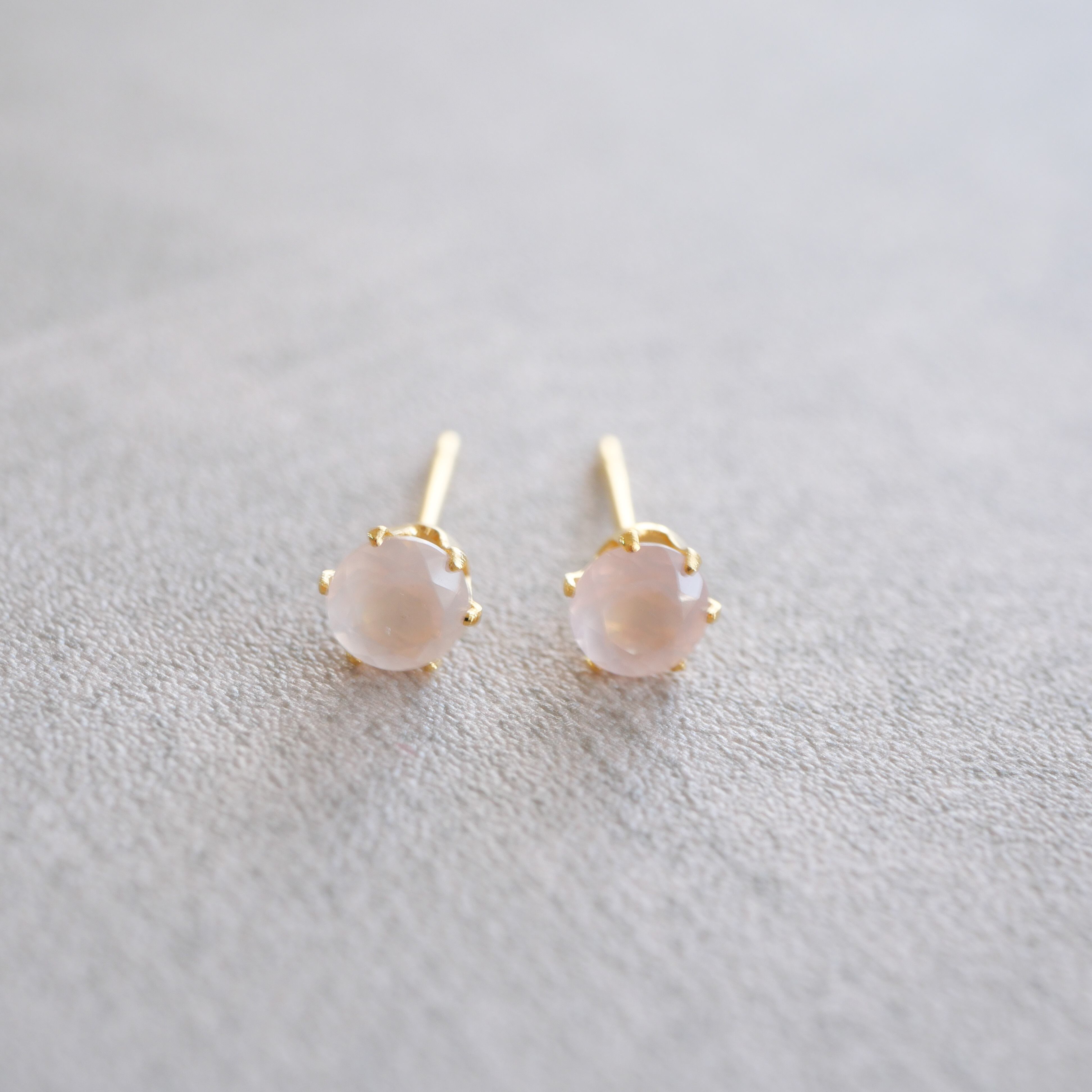 ローズクォーツの一粒4mmピアス つけっぱなしOK! ローズクオーツ 天然石 サージカルステンレス 金属アレルギー対応 ピンク 金アレ対応 小粒