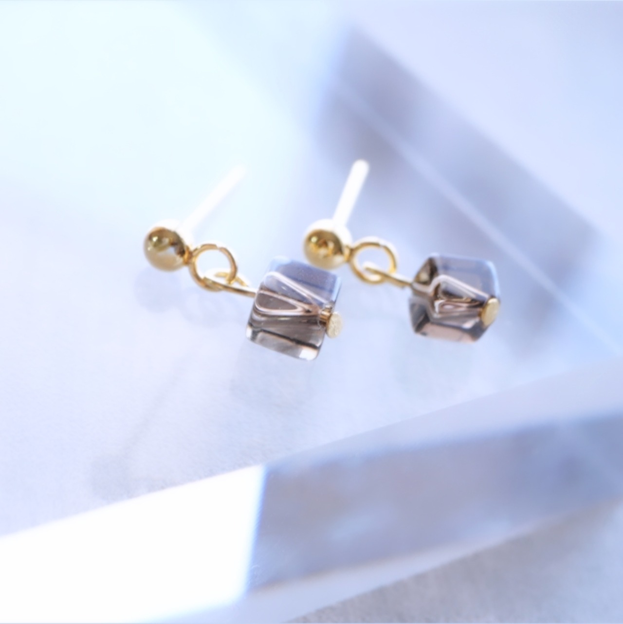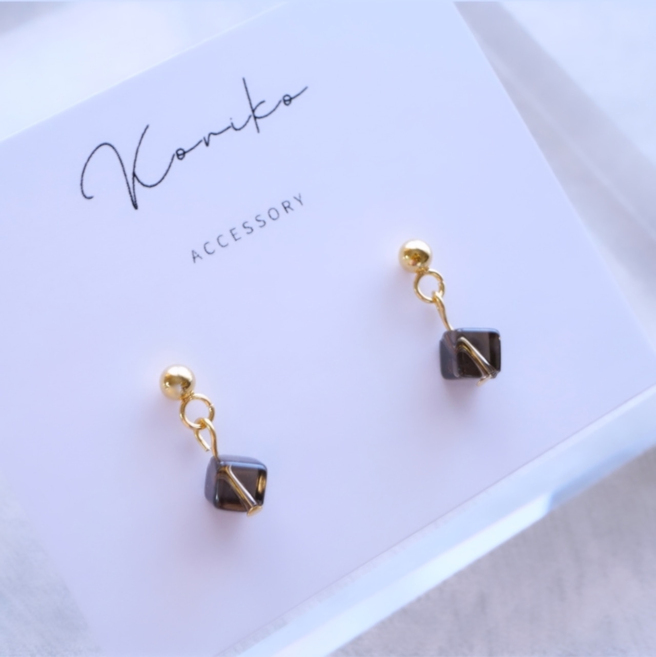 『小さなスクエアのスモーキークオーツピアス/イヤリング』