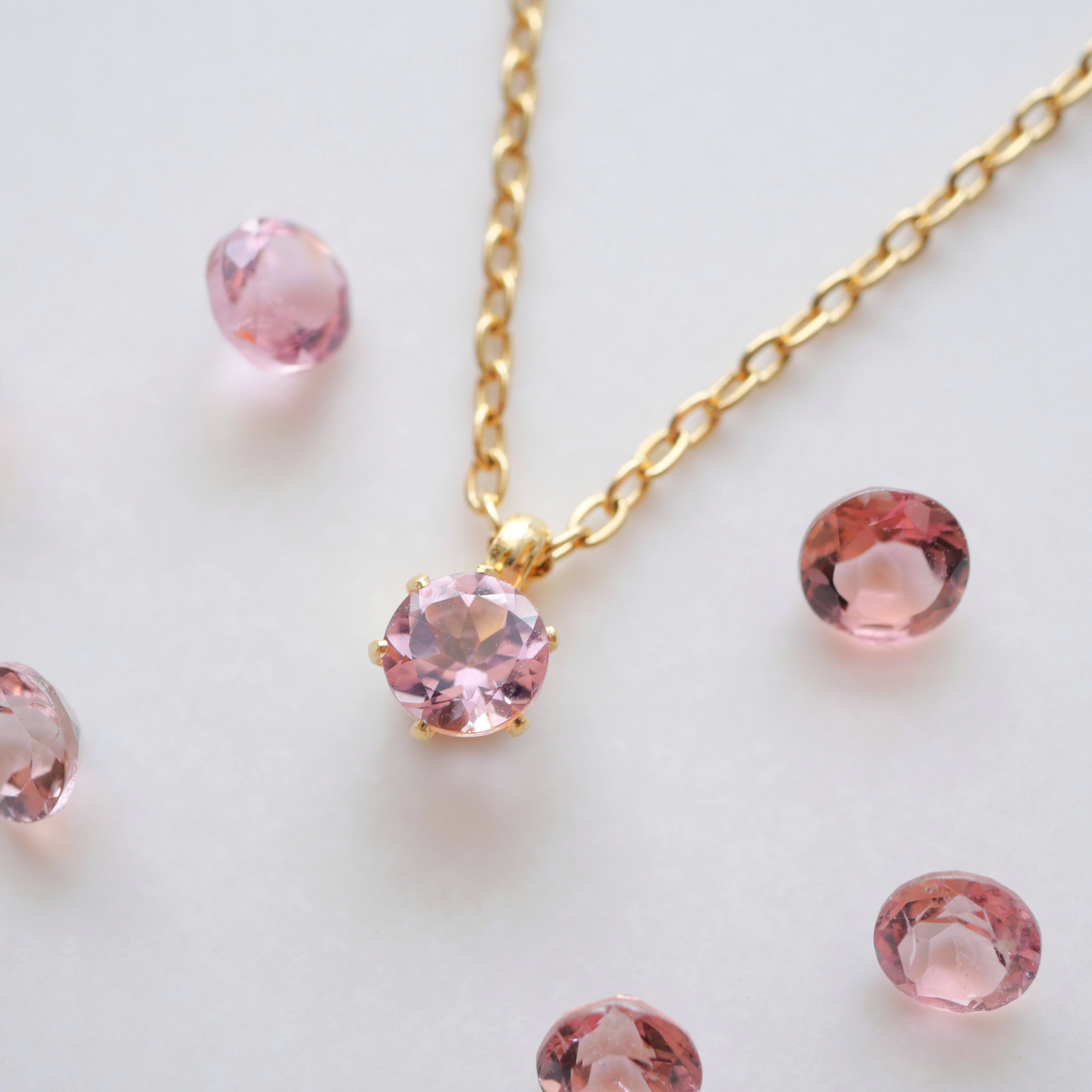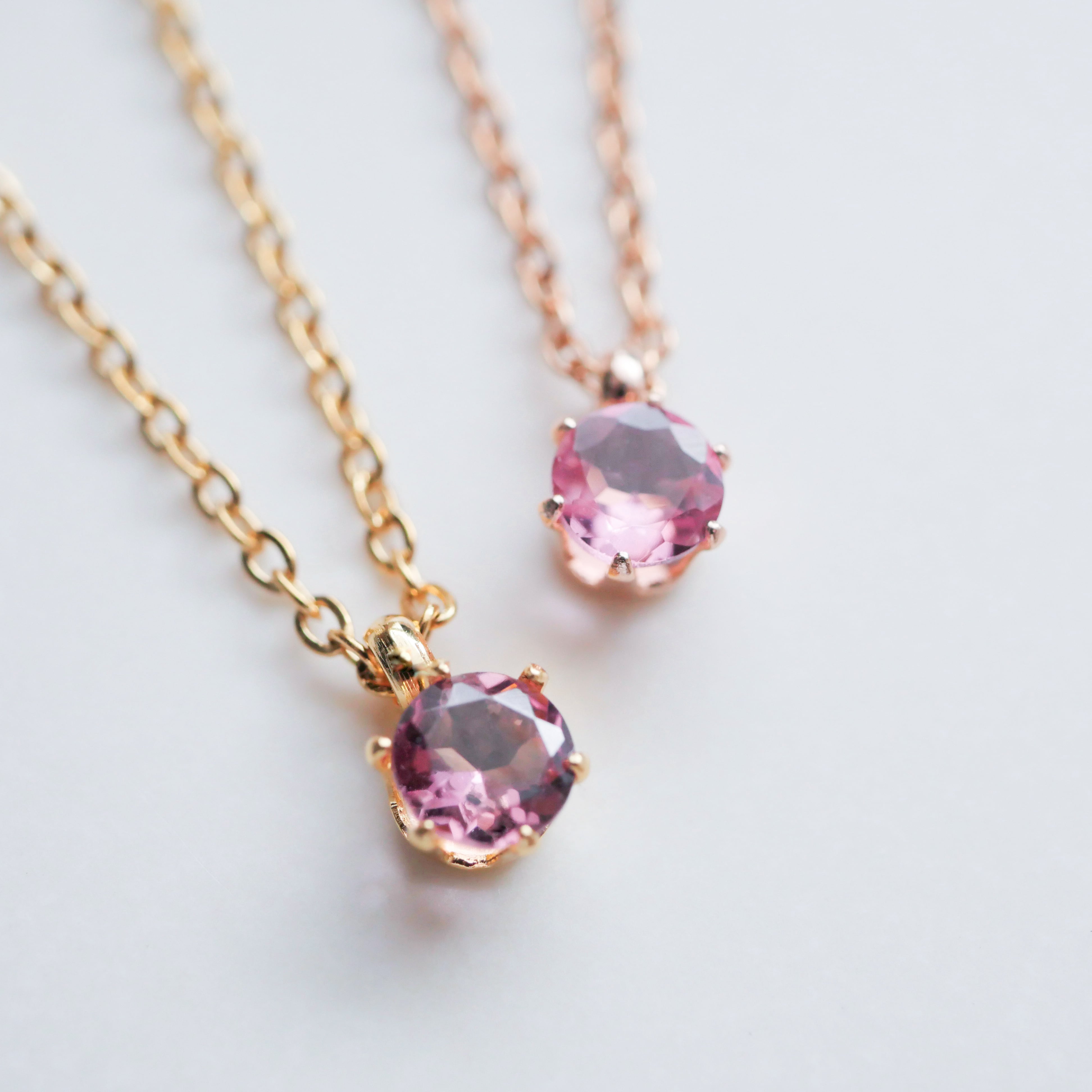 ピンクトルマリンネックレス 10月誕生石 小ぶり サージカルステンレス 金属アレルギー対応 ゴールド シルバー ピンクゴールド つけっぱなしOK
