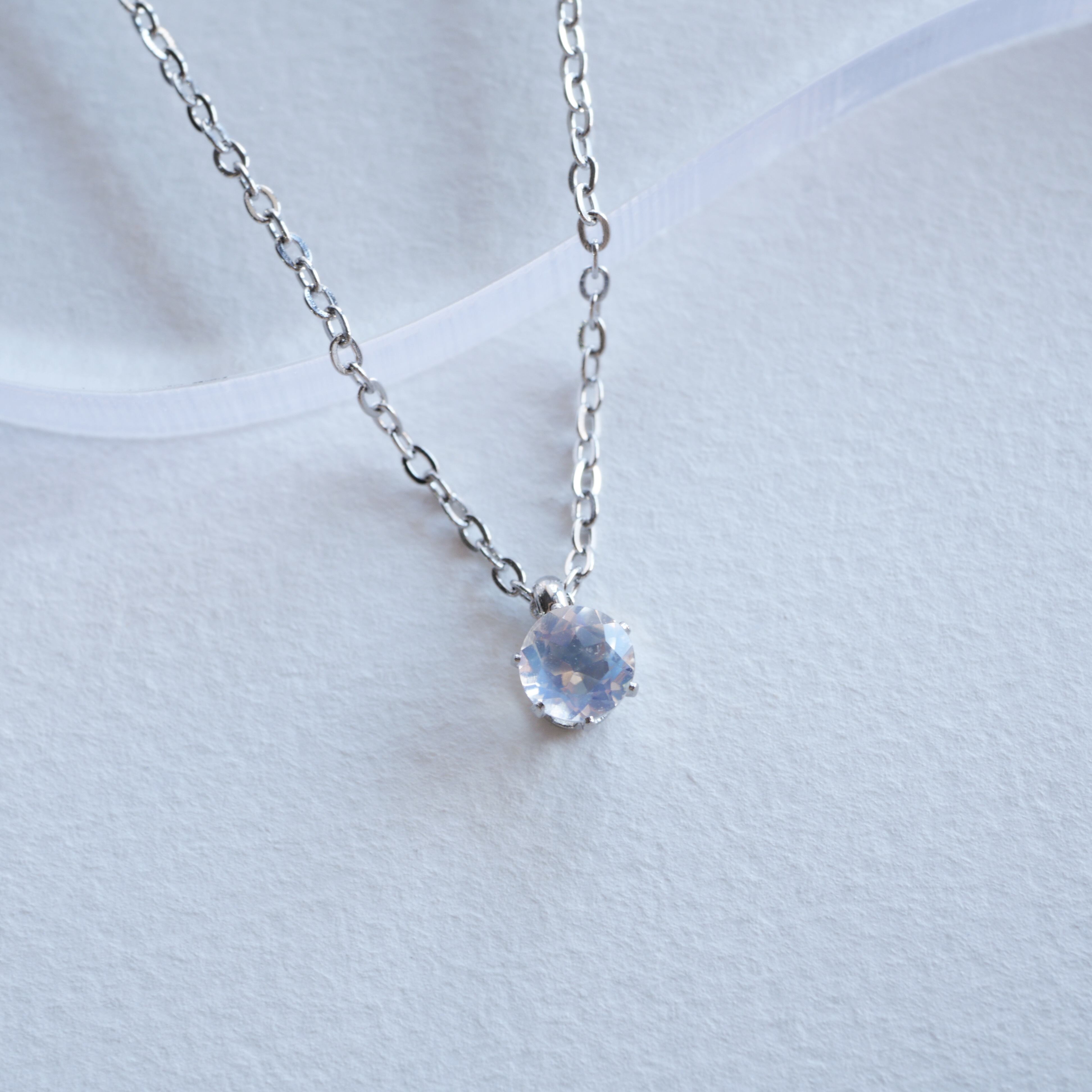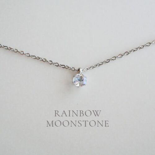 レインボームーンストーンネックレス 6月誕生石 小ぶり サージカルステンレス ゴールド シルバー ピンクゴールド