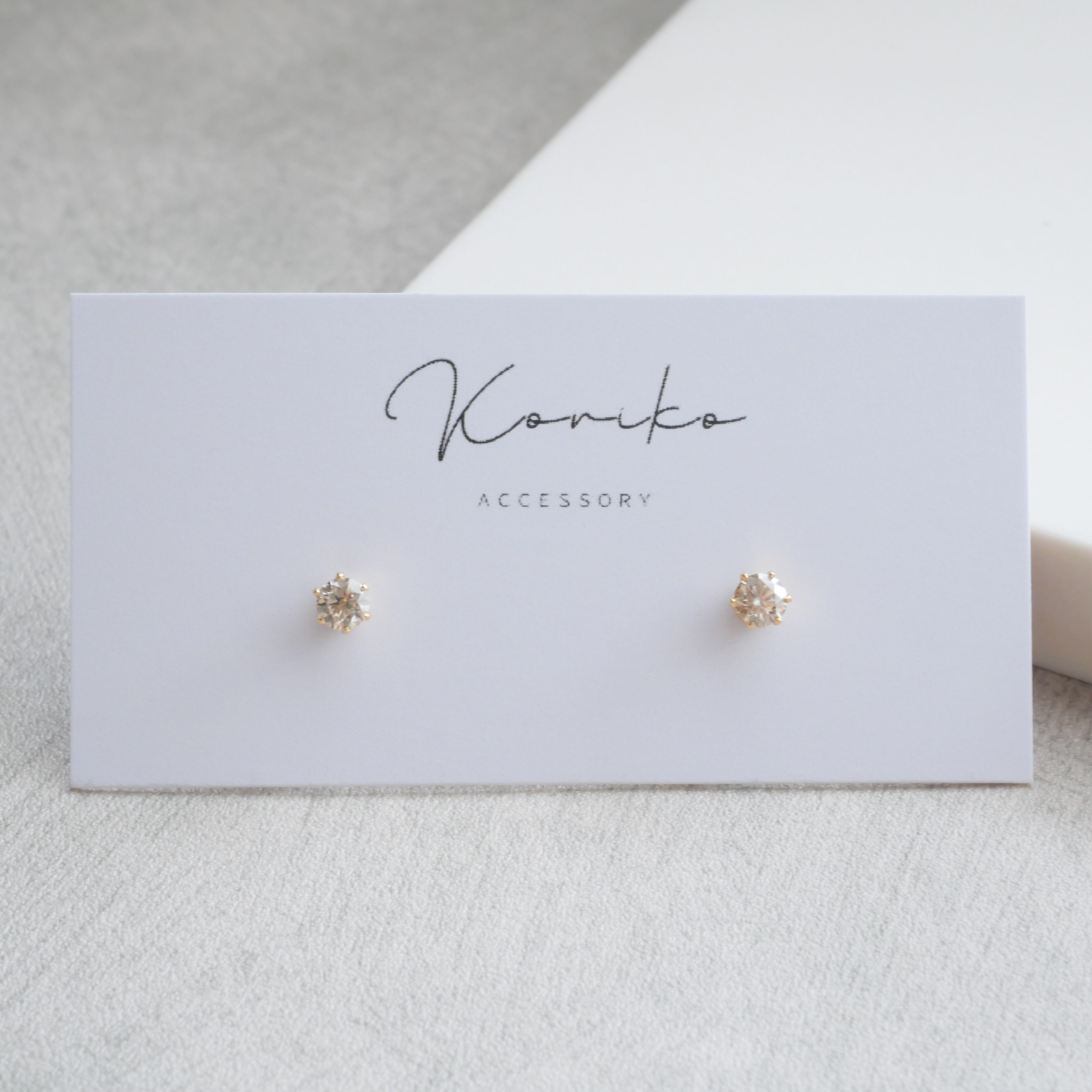 『モアサナイト ピアス(シャンパンカラー)』一粒ピアス つけっぱなしOK!