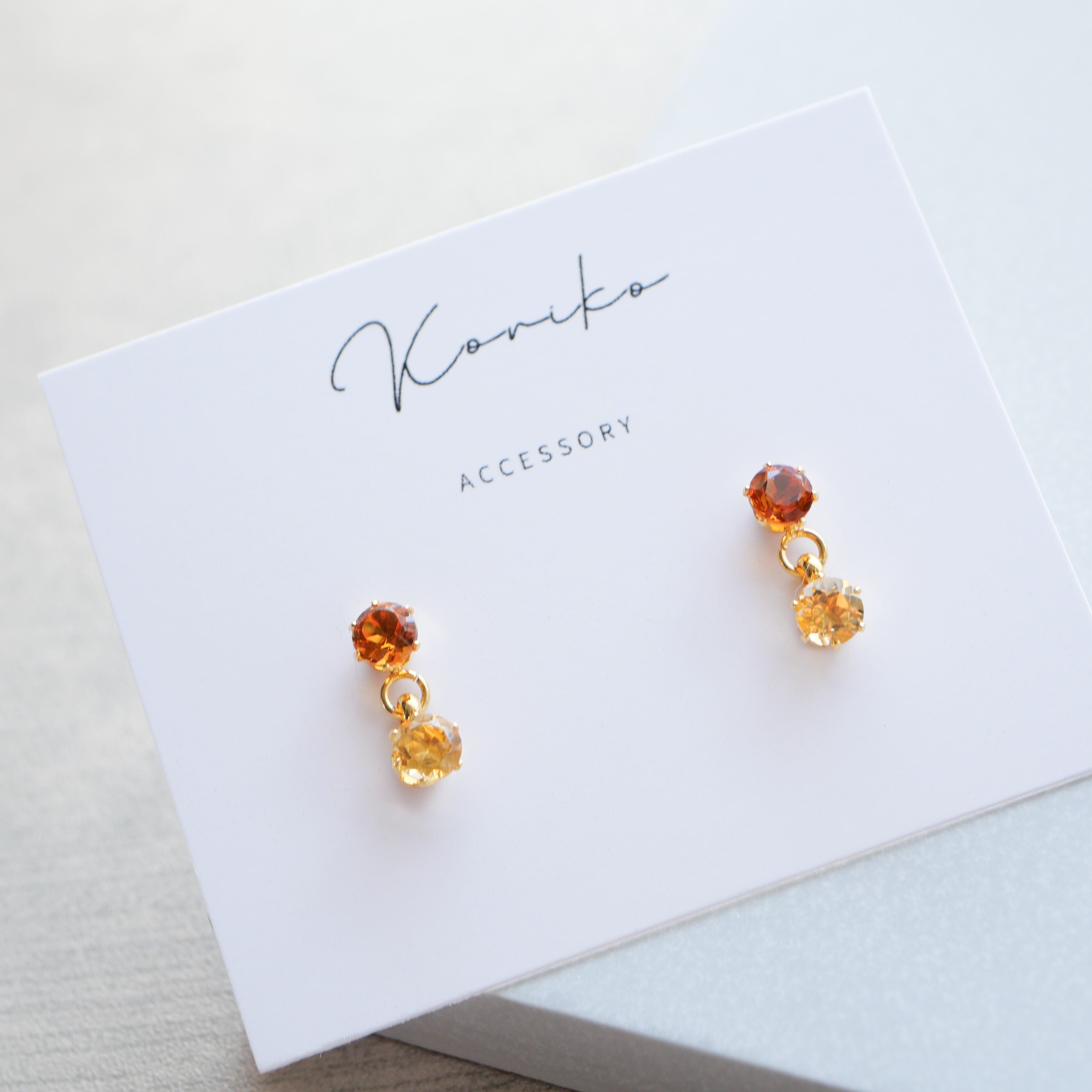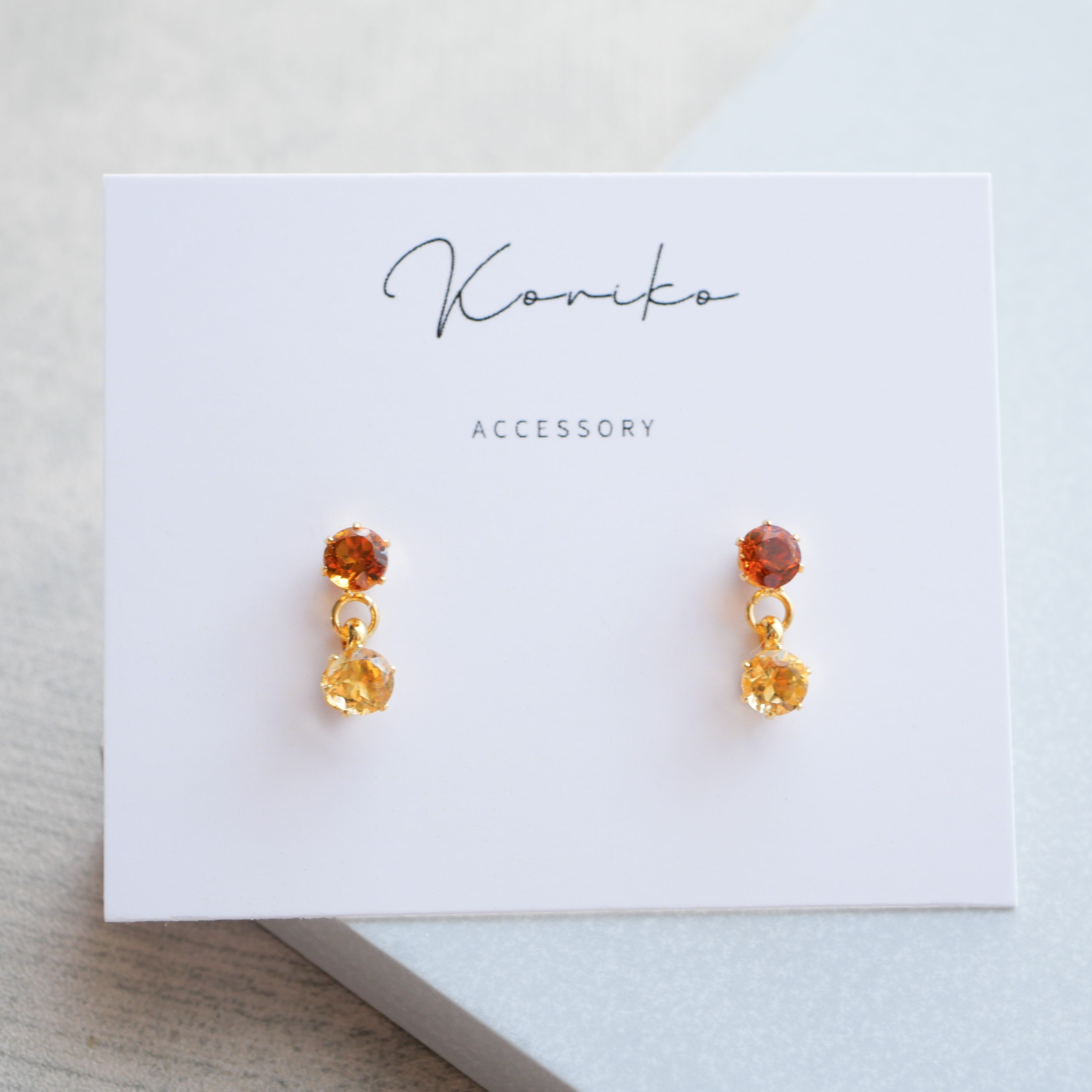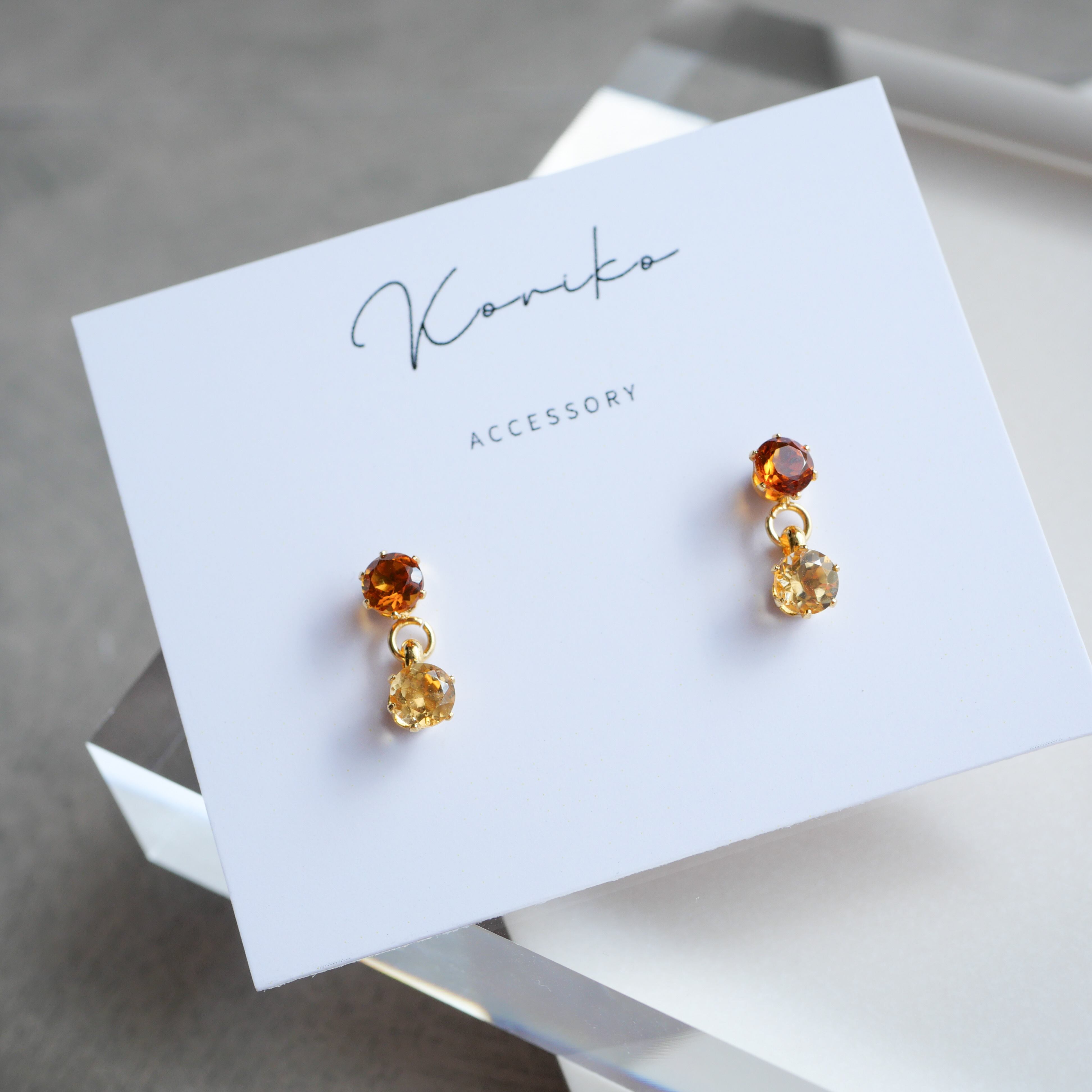 【秋冬のグラデーション】マデイラシトリン×シトリン ピアス 11月誕生石 天然石 サージカルステンレス 金属アレルギー対応 小さい 小ぶり