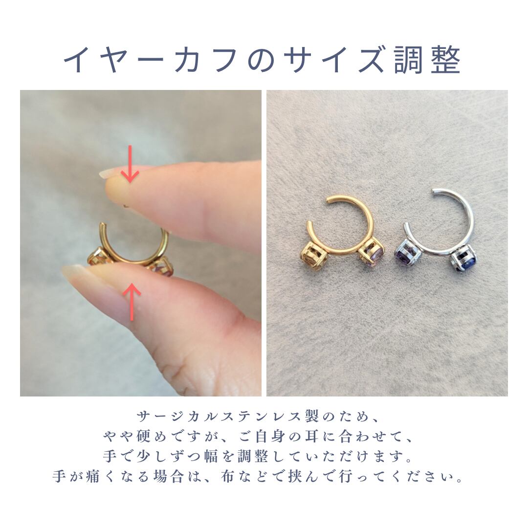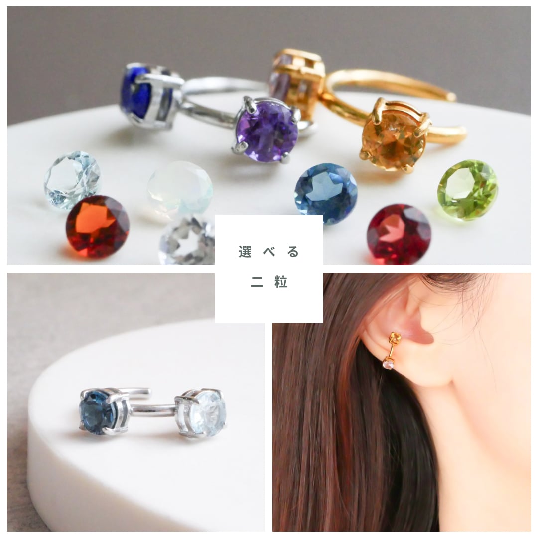 選べる二粒の誕生石で作るイヤーカフ ゴールド/シルバー サージカルステンレス 金属アレルギー対応